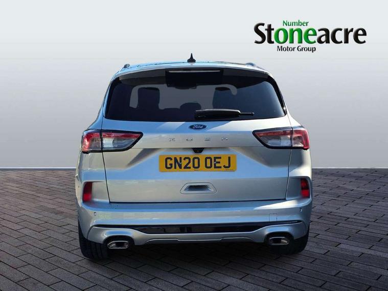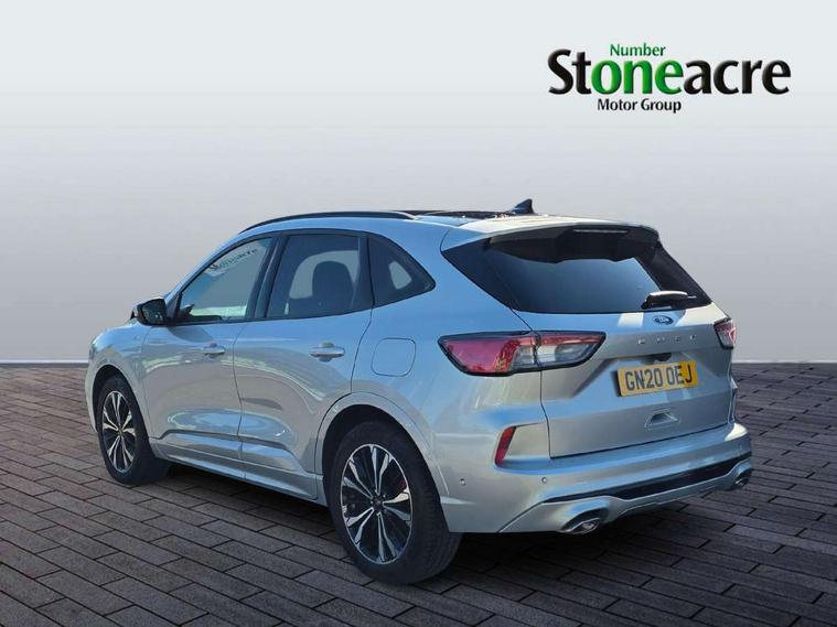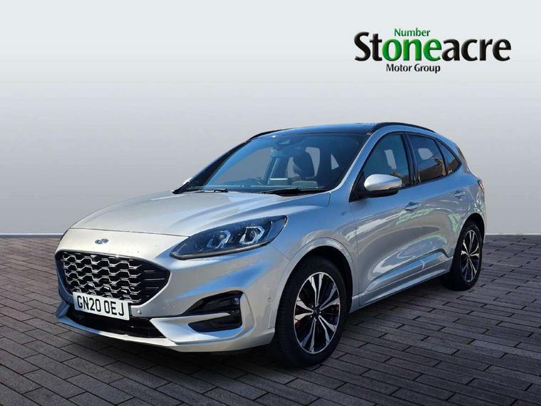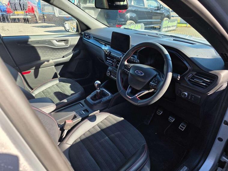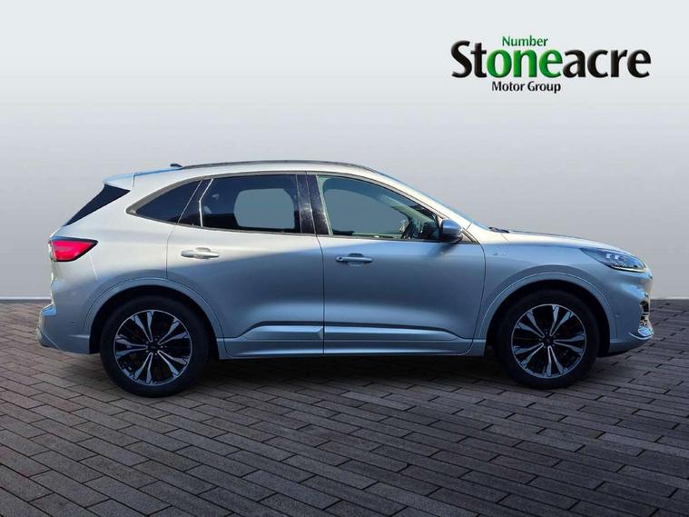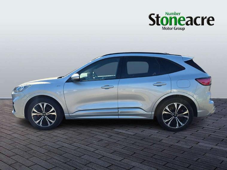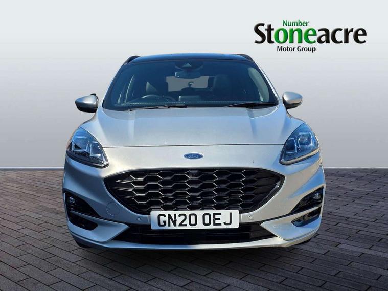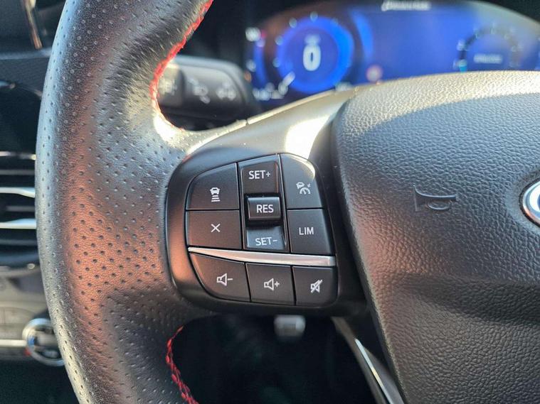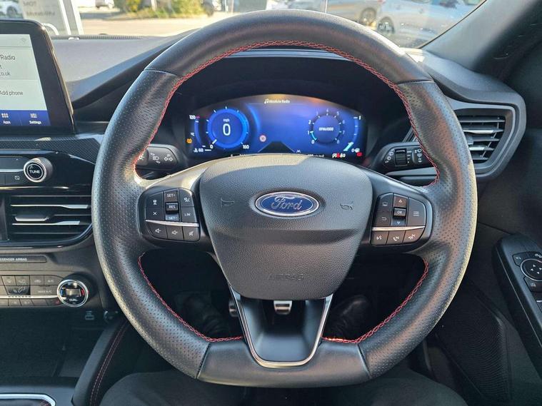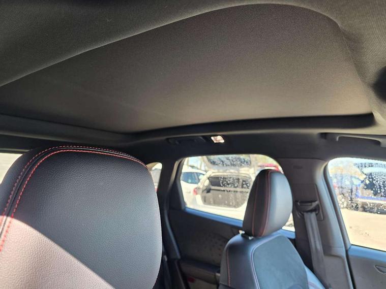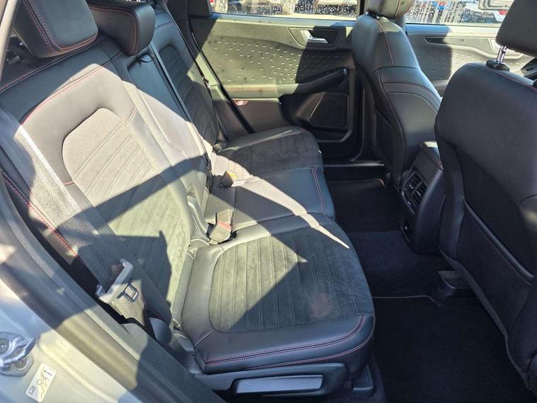 Active park assist, Adaptive cruise control (ACC) with traffic sign recognition, BLIS (Blind spot information system), Driver impairment monitor, Eco coaching, Ford easy fuel, Front and rear parking sensors, Front and rear view camera, Hands free power tailgate, Head up Display, Intelligent speed assist, Lane keeping aid with lane departure warning, Mobile phone wireless charging pad, Power assist steering, Selectable drive modes, SYNC 3 with navigation, DAB audio, Sports suspension, Auto dimming rear view mirror, Auto headlamps with high and low beam, Auto wipers, Black roof rails, Door edge guards, Electrically operated front and rear windows, Front LED fog lights with cornering function, Full LED quad projector headlamps with glare free, Large rear spoiler, LED daytime running lights, LED rear lights, Power folding heated door mirrors with puddle lights, Power front/rear windows with global close, Power opening panoramic roof, Privacy glass, Quickclear heated windscreen, ST Line badges in exterior and interior, ST Line body styling kit with unique front and rear fascia and bumper, rear painted diffuser, front painted skid plates, dark mesh upper grille, ST Line front scuff plates, Twin exhausts, 10 way power adjustable drivers seat, 2nd row sliding seats, 8 way manual passenger seat including lumbar support and height adjust, Alloy pedals, Ambient lighting, Centre console with electronic parking brake, Dark headlining and pillars, Dual electronic automatic temperature control, Flat bottomed leather steering wheel in sensico with red stitching, Front and rear head restraints, Heated passenger and driver seats, Partial leather manual track seat, Rear charging point, Sensico partial premium leather upholstery, Sports seats, ST Line front and rear floor mats, Unique ST Line leather gear knob, B&O with large instrument cluster pack - Kuga, 3x3 point rear seatbelts, Airbags - front driver/passenger, front and rear curtain, Drivers knee airbag, Electronic stability control (ESC) and ABS, Ford MyKey Gen 2 safety system, Hill launch assist, Post collision braking, Powered child proof rear door locks, Pre collision assist with autonomous emergency braking, Red brake calipers, Tyre pressure monitoring system, Engine immobiliser, Keyless entry, Keyless start with 'Ford Power' starter button, Locking wheel nuts, Remote powered central double locking doors, Thatcham category 1 alarm,