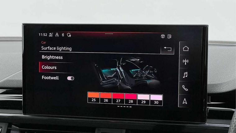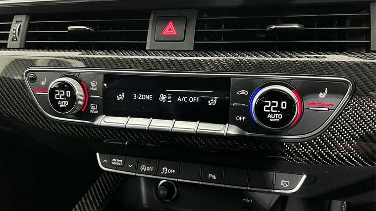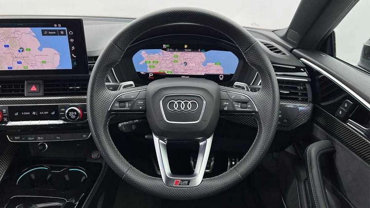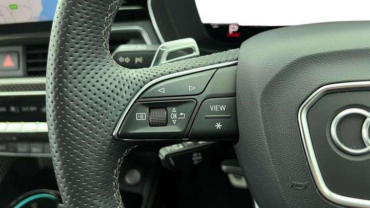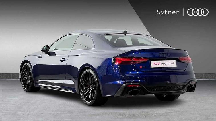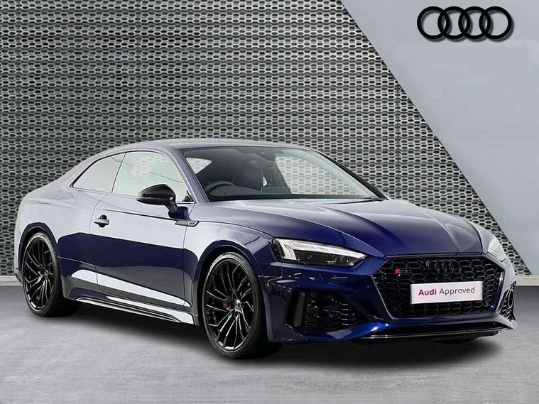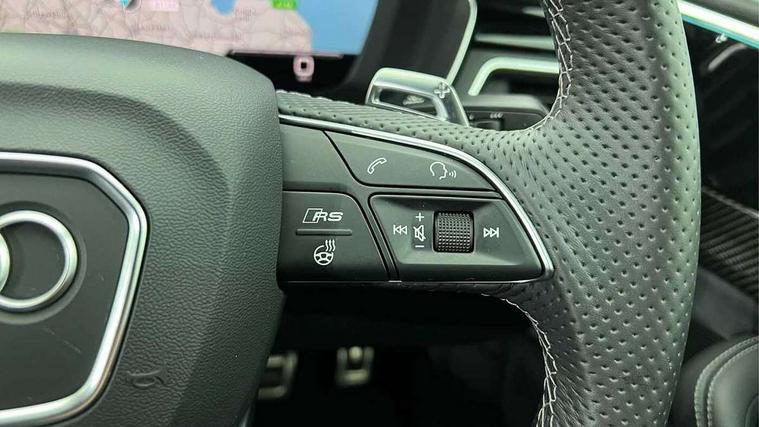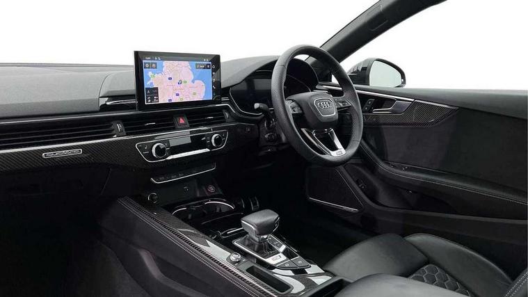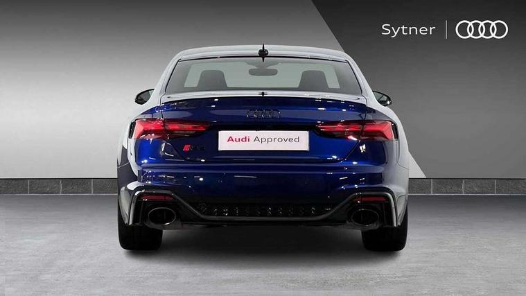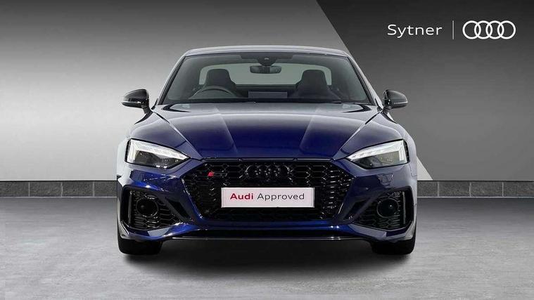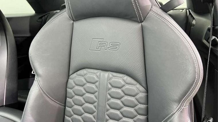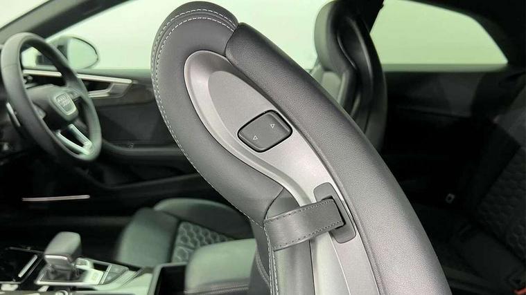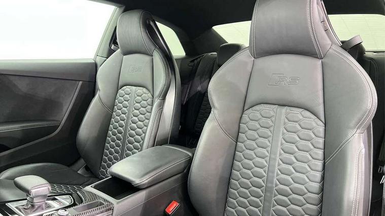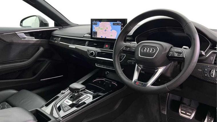 Audi connect safety and service (e-call), Audi connect with Amazon Alexa Integration, Audi parking system plus with front and rear sensors, Audi side assist, Audi smartphone interface, Audi Virtual Cockpit with RS specific design and 12.3" display, Automatic start-stop system with coasting functionality and efficiency programme, Bluetooth interface, Electromechanical power steering, Email, calendar and text messages displayed via MMI, MMI Navigation plus with MMI touch includes 10.1" high resolution colour MMI display, 3D map, Rear view camera, RS Audi drive select, RS drive modes on steering wheel, Service interval indicator, Voice control system, Quattro sports differential, 2 x USB charging port with aux input socket, Audi sound system, DAB digital radio reception, Audi Beam uses LEDs to project the RS logo, Audi matrix LED headlights with LED rear lights + dynamic front and rear indicators, Audi rings and lettering glossy black, Auto dimming rear view mirror, Body colour door handles, Electric front windows, Electric rear windows, Electrically folding, adjustable and heated door mirrors with integrated LED side indicators and kerb view function for passenger side, Exterior mirror housing in high gloss black, High beam assistant, Larger singleframe grill, LED 3rd brake light, LED daytime running lights, Privacy glass with rear acoustic glazing, Rain and light sensors, Rear boot, RS bumper with quattro lettering, RS5 badges on grille, the front wing panels and rear, RS5 dual branch chrome tailpipes with left and right oval pipes, Windscreen with acoustic glazing, 3 spoke leather heated multi-function plus steering wheel with RS badging, 40:20:40 split folding 2 seater rear seat bench with rear centre armrest, Aluminium shift paddles, Black cloth headlining, Deluxe 3 zone electronic climate control, Electrically adjustable front seats, Fine Nappa leather upholstery, Front centre armrest, Front head restraints, Front/rear floor mats, Heated front seats, Illuminated door sill trims with RS5 logo, ISOFIX child seat mounting and top tether, Leather door armrests and knee pad, Perforated leather gear lever knob with contrast stitching, Pneumatic massage function, Rear head restraints, RS Super Sports seats with contrast honeycomb stitching, Single front passenger seat, Stainless steel pedals, Carbon black styling pack - RS5, LED Interior light pack - RS5, 2 x 3-point rear seatbelts, 6 airbags - Driver, front passenger, curtain and side airbags, Electromechanical parking brake, Electronic Stabilisation Control (ESC) including ABS, ASR and EDL, Front passenger airbag deactivation, Height adjustable front seatbelts, Hill hold assist, Multi collision brake assist, Pop-up bonnet for pedestrian protection, Pre sense city, RS Model enhanced braking system, Seatbelt monitoring, Tyre pressure warning, Warning triangle and first aid kit, Anti theft alarm system, Anti theft wheel bolts, Immobiliser, Keyless Go, Remote control key with RS emblem, Carbon twill inlays, 20" 5 Segment spoke Evo style design audi sport alloy wheels in glossy black, Tool kit, Tyre repair kit,