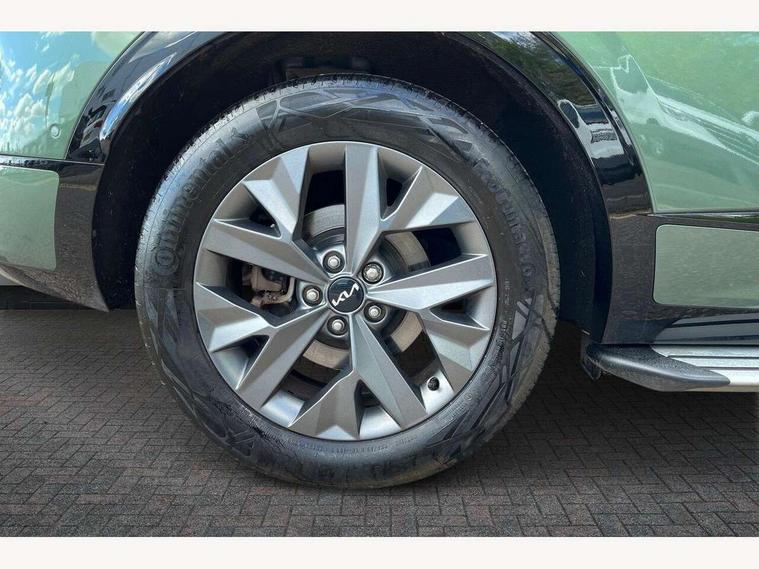 12.3" Display with navigation, 12.3" supervision colour cluster display, 360 degree around view monitor, Apple car play/Android Auto with voice control, Blind spot collision avoidance assist, Blind spot view monitor, Drive mode selector, E-call, Forward collision avoidance assist (FCA) - city/pedestrian/cyclist/junction covering, Front and rear parking sensors, Highway Driving Assist (HDA), Intelligent speed limit assist, Kia Connect (UVO), Lane Following Assist (LFA), Lane keep assist, Low washer fluid warning, Parking collision avoidance assist (PCA), Remote smart parking assist, Reversing camera system integrated into centre fascia screen, Smart cruise control with stop and go functionality, Smart power tailgate, Speed sensitive power steering, Trip computer, Windscreen washer level indicator, Wireless Smartphone charger, Intelligent Stop and Go, Terrain mode select (Mud, Snow, Sand), Bluetooth audio streaming, DAB Radio with MP3, Harman Kardon premium sound system, Rear USB port, Steering wheel mounted audio controls, USB C type charging ports on centre console, USB C type charging ports on side of front seats, USB port for connection of a media device, All round electric windows with drivers and front passenger auto up/down function, Automatic headlight control system, Automatic window defogger, Backlite glass heated with timer, Body colour and black bumper with silver accents, Body colour exterior door handles, Body colour radiator upper garnish and door garnish, Dual LED adaptive headlamps, Electric panoramic glass sunroof (Electric one touch with safety function), Electrically adjustable/heated/folding door mirrors with LED indicators, Front and rear chrome skid plates, Gloss black door mirrors, Gloss black radiator grille, Gloss black side sill and wheel arch body mouldings, Glossy black roof rack, High beam assist, Interior electrochromic mirror, LED daytime running lights, LED front fog lamps, LED High mounted stop light, LED rear combination lamp, Rain sensing wipers with aero blades, Rear fog lamp, Rear privacy glass, Rear side wing doors, Rear spoiler, Rear wiper, Satin finished beltline, Silver coloured inserts to bumpers, Tinted rear glass, Trailer stability assist, 10 way driver/8 way passenger electrically power adjustable seats, 12V power socket in front centre fascia and luggage compartment, 3 seat bench in 2nd row, 3 x passenger assist grips, 40/20/40 split folding rear seat, All-round height adjustable headrests, Ambient lighting, Black headlining, Centre console storage box, Cupholders in rear armrest, D-Shaped sports leather steering wheel and perforated inserts with GT-Line logo, Door courtesy lamps, Drink holder at centre armrest, Driver and front passenger side sunvisors with illuminated vanity mirrors, Driver seat memory function, Drivers seat power lumbar support, Front and rear door storage, Front seat and rear pockets, Front/rear centre armrests, Gear shift indicator, Glovebox illumination, Heated front and outer rear seats, Heated steering wheel, Interior door lock/unlock function, ISOFIX Child seat top tethers and anchor fixings outer rear seats, LED interior personal lamp, LED lighting in overhead console, Luggage area LED light, Luggage area load cover, Luggage net with hooks, Metal paint interior door handles, Paddle shift controls, Rear cabin light, Rear coat hooks, Single front passenger seat, Sports pedals, Suede leather upholstery, Three zone climate control, Tilt/telescopic adjustable steering wheel, Ventilated front seats, Ventilation ducts to rear compartment, Active front headrests, All round 3-point seatbelts, Anti-lock braking system (ABS), Dual front side airbags, Dual horn, Electronic parking brake, Electronic stability control with downhill brake control, Front passenger airbag cut-off switch, Front seatbelt pretensioners + load limiters, Height adjustable front seatbelts, Hill start assist control (HAC), Impact sensing auto door unlocking, Multi collision brake assist, Rear door child safety locks, Rear seat alert system, Traction control, Twin curtain airbags, Twin front airbags, Tyre pressure monitoring system, Advanced anti-theft system including immobiliser and alarm, Door deadlocks, Engine Start/Stop Button with Smart Entry System, Locking wheel nuts, Speed sensitive auto door locking, Visible vehicle identification number, Aluminium pattern finish centre fascia and door garnish, 18" GT-Line alloy wheels, Michelin tyres, Tyre mobility kit,
