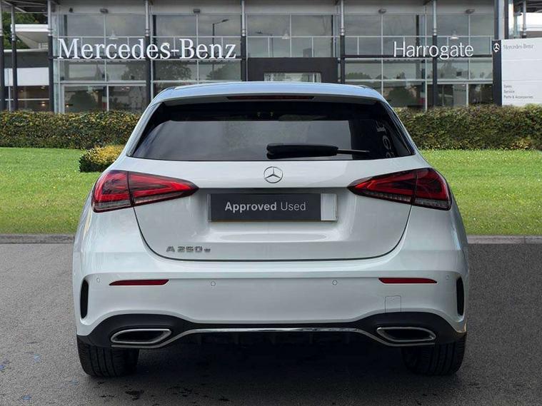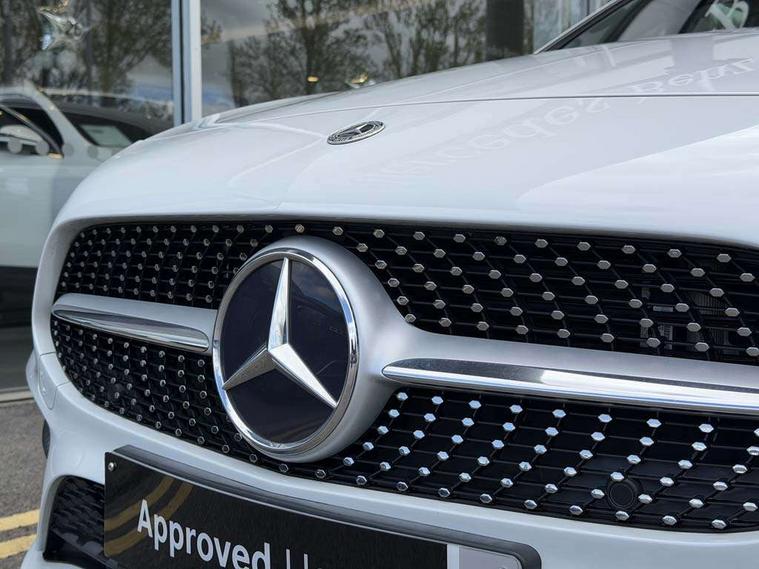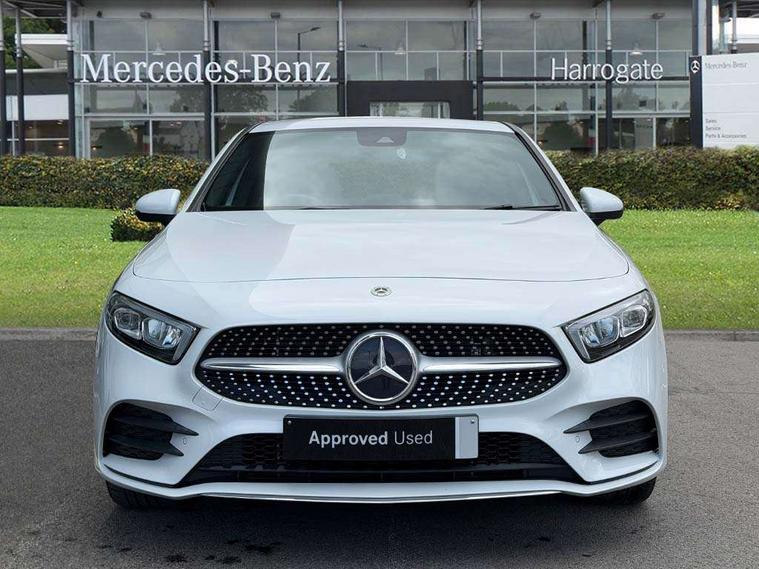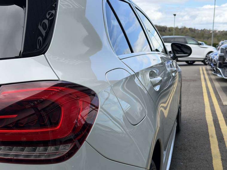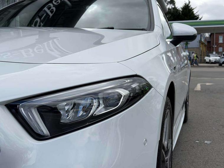 Ultrasonic sensors positioned in the front and rear bumpers, 10.25" media display, 180 degree rear view camera with parking guidelines, 7" colour screen in instrument panel, Acoustic ambient protection, Active parking assist with visual and audible warning of detected obstacles, Attention assist, Brake pad wear indicator warning light, Car wash mode, Cruise control + speed limiter, Direct steering, Dual bluetooth interfaces, DYNAMIC SELECT with a choice of driving modes (ECO, Comfort, Sport and Individual), ECO start/stop function, Fluid level warning indicator for fuel, oil, coolant and washer fluid, Hard-disk navigation, Hey Mercedes Voice activation, Lamp failure indicator, MBUX multimedia system with DAB digital radio and touchpad including satellite navigation, Mercedes me connect including emergency call system, accident recovery, breakdown management and maintenance, Mercedes me remote services, Outside temperature gauge, Owners manual in English, Pre-installation for car sharing, Preinstallation for Mercedes Benz link, Remote and charging services plus, Service indicator (ASSYST), Smartphone integration with Apple CarPlay and Android auto, Speed sensitive power steering, Trip computer, Wireless charging, 7.4 kW monophase on board charger, Comfort suspension, Mode 3 charging cable 11 kW, Rear axle multi-link, 2 USB ports (type C) in rear stowage compartment and one in front of center console, 6 speakers, DAB Digital radio, Mercedes-Benz sound system - 100W, 4 Electric Front and Rear windows, Adaptive brake lights, AMG bodystyling - Front apron with splitter in chrome, rear apron with chrome trim and chrome visible trim elements in tailpipe, Black weather strip, Body colour bumpers, Body colour door handles, Body colour side skirt, Body coloured door mirrors, Chrome beltline trim, Diamond radiator grille with chrome pins and silver louvre + chrome insert, Electric adjustable and heated door mirrors with integrated LED side indicators, EQ badging, Exhaust system - Twin visible tailpipes in polished stainless steel, Headlamp assist automatic headlamp activation, Heated glass rear windscreen + timer control, LED high performance headlamps with integrated LED daytime running lights, LED tail lamp, LED third brake light, Privacy glass, Radio aerial, Rain sensing windscreen wipers with two sensitivity settings, Rear fog lights, Rear wiper, Window line trim strip in chrome, 3 pin charging cable plug, 3 Spoke flat bottom leather multi function steering wheel with perforated leather in grip area, 40:20:40 split folding rear seats, Artico man-made leather/Microfibre Dinamica upholstery with red contrast stitching, Auto Mercedes-Benz child seat recognition sensor, Black air vents with surround in silver chrome, Black roof lining, Brushed stainless steel sports pedals with rubber studs, Charging socket, Controller on centre console with chrome surround, Floor mats with stitched edging and AMG lettering, Front centre armrest with storage compartment, Front door sills with Mercedes benz lettering, Front seat backs luggage nets, Front seat cushion length adjustment, Galvanished gear shift paddles on steering wheel, Heated front seats, Height/reach adjustable steering column, Interior mirror with reading lamps in black and frameless, ISOFIX and top tether child seat fixing points in two outer rear seats, Manual height adjustable front seats, Pre-entry climate control, Rear head restraints, Seat occupancy sensor for front passenger seat, Sports seats with integrated headrests, Stowage compartment in centre console with retractable cover, Sunvisors with illuminated vanity mirrors, Touchpad on center console, Twin front cupholders, Two zone thermotronic luxury automatic climate control, Light and sight pack - A Class, Mirror package - A Class, Seat comfort pack - A Class, 3 rear 3 point seatbelts, ABS with Brake Assist, Active bonnet, Active brake assist includes forward collision warning system with autonomous braking, Adaptive brake assist with hold function and hill start assist, Black seatbelts, Childproof locks manually operated for rear doors and electrically operated for rear power windows, Crash responsive emergency lighting, Driver and passenger head and side airbags, Drivers knee airbag, Dual stage driver/passenger airbags, Electronic parking brake, ESP curve dynamic assist, ESP with ASR, Front and rear seatbelt reminder, Front brake callipers with Mercedes Benz lettering, Perforated front brake discs, Radar based regeneration, Tyre pressure monitoring system, Warning triangle and first aid kit, Window airbags, Alarm system/interior protection/immobiliser, Keyless Go, Remote central locking and crash sensor with emergency opening function, Urban guard vehicle protection system with immobiliser and interior protection, Dinamica microfibre trim in black, 18" AMG 5 twin spoke light alloy wheels in titanium grey with highsheen finish, Summer tyres, Tirefit sealant kit,