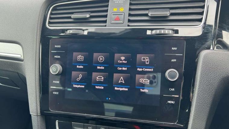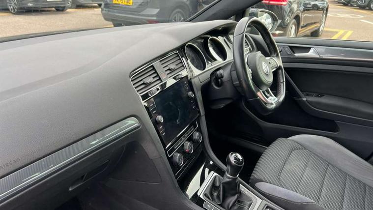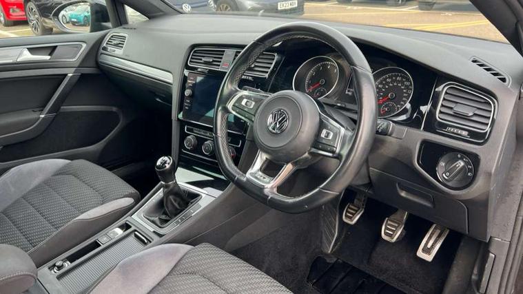 'Lights On' Reminder warning buzzer, 8" touch screen, Adaptive Cruise Control with pedestrian detection and speed limiter, App-Connect, Bluetooth hands free telephone connection, Brake pad wear indicator warning light, Driver alert system, Driver profile selection, Exterior temperature gauge, Front assistant collision mitigation, Instrument cluster in white, Multifunction computer, PAS - speed related, Rev counter, Trip and service interval display, Ultrasonic front and rear optical and audible parking sensors, Warning buzzer and light for front seatbelts unfastened, Lowered sports suspension, XDS electronic differential lock, CD/MP3/WMA, USB and SD card reader, aux-in, Composition media system, DAB Digital radio, Auto dimming rear view mirror, Automatic coming/leaving home lighting function, Automatic headlights, Black front air intake and radiator grille with chrome insert, Black sports rear diffuser, Body colour bumpers, Body colour door handles, Body colour door mirrors, Body colour rear roof spoiler, Chrome grille surround, Chrome trapezoidal exhaust, Electric front windows, Electric rear windows, Electrically adjustable and heated door mirrors, Heat insulated tinted glass 65% light absorbing from B pillar back, Heated rear windscreen, LED daytime running lights, LED rear lights, Rain sensor, Rear windscreen washer and wiper with interval delay, Stainless steel door sill protection, 12V socket in luggage compartment, 3 rear headrests, 3 spoke steering wheel, 60/40 split folding rear seat, Bag hook in luggage compartment, Black headlining, Boot lashing points, Cooled glovebox, Courtesy light delay, Cover for storage compartment in centre, Dust/pollen filter, Front + rear carpet mats, Front centre armrest with storage box and rear air vents, Front passenger seat height adjust, Front reading lights, Front seat back storage pockets, Grab handles, Height/reach adjust steering wheel, Illuminated vanity mirrors, Isofix preparation for 2 rear child seats, Leather gear knob and handbrake grip, Load through provision with rear centre armrest and cupholders x2, Luggage compartment cover, Luggage compartment lighting, Multifunction leather steering wheel with grey stitching leather trimmed gear knob including paddle shift, Overhead storage box, Stainless steel pedals, Storage box in luggage compartment, Storage compartments in doors, Sun visors, Variable boot floor, height adjustable and removable, Ambient lighting pack - Golf, Mirror pack - Golf, 3 point height adj front seatbelts + pretensioners, 3 rear 3 point seatbelts, ABS, Automatic post collision braking, Child locks on rear doors, Driver/Front Passenger airbags, Driver/Passenger whiplash optimised head restraints, Drivers knee airbag, Electronic parking brake with auto hold, ESP with EDL + ASR, Front and rear curtain airbags, Front passenger airbag deactivation, Front side airbags, Pre crash system, Tyre pressure monitor, Alarm with interior protection, Electronic engine immobiliser, Remote central locking with 2 remote folding keys, Chrome-plated light switch surround, Dark Diamond decorative inserts in dash and door panels, Piano black centre console with aluminium inlay, Steel space saver spare wheel,