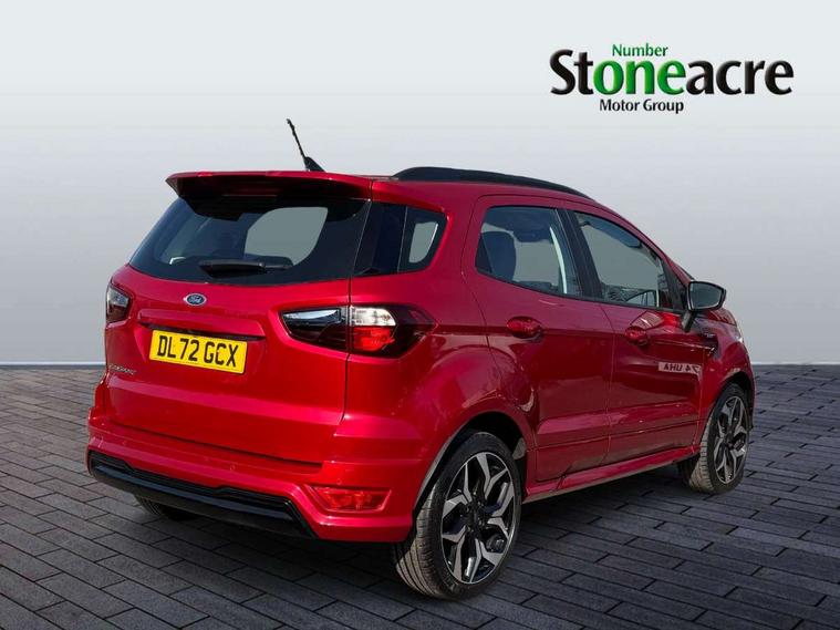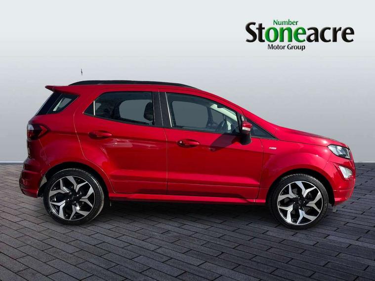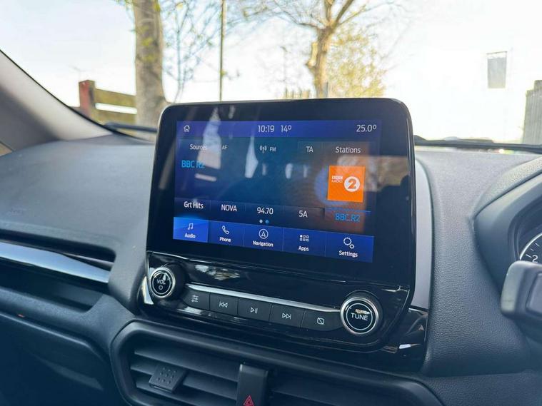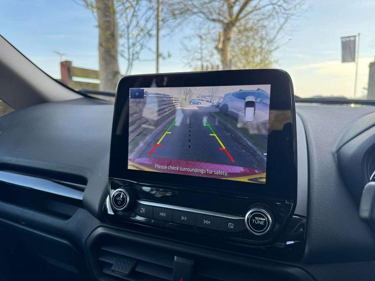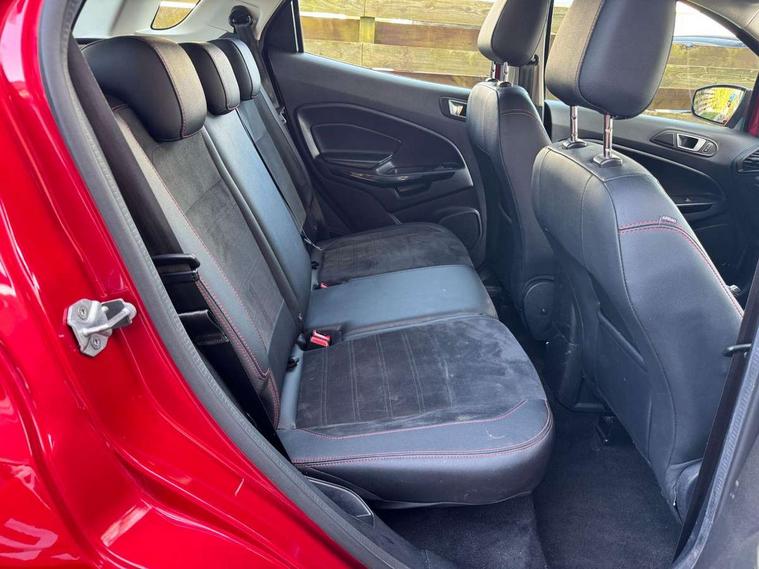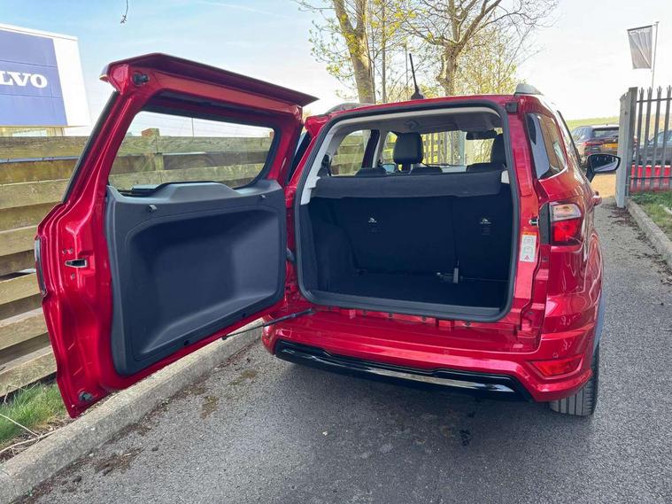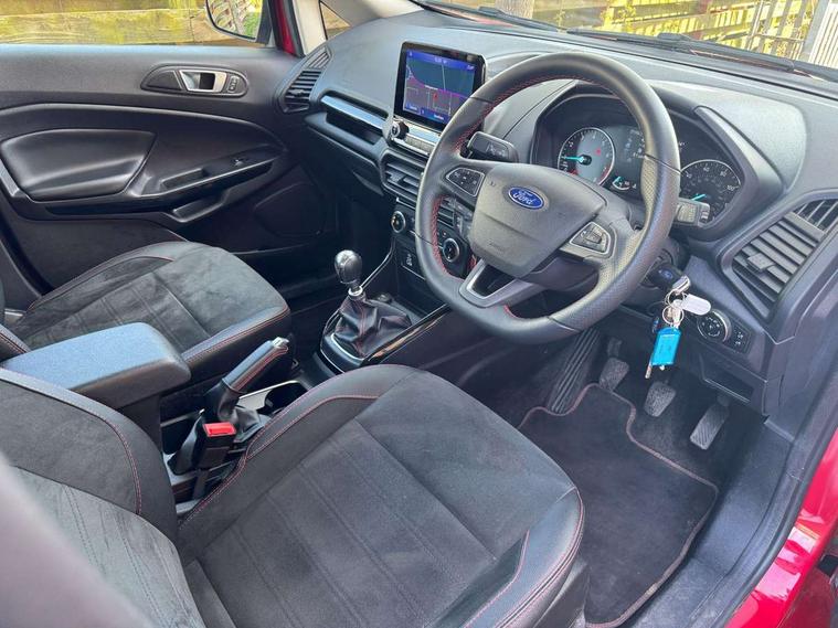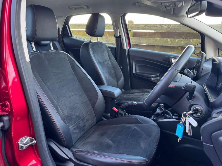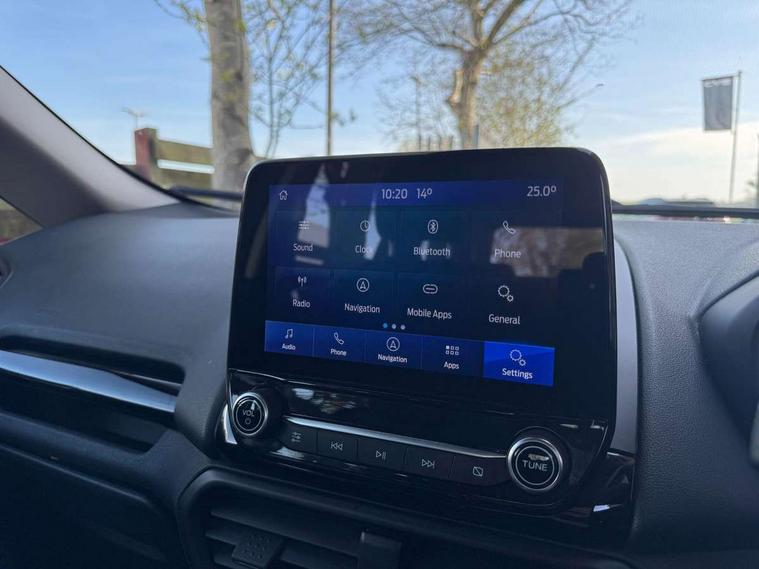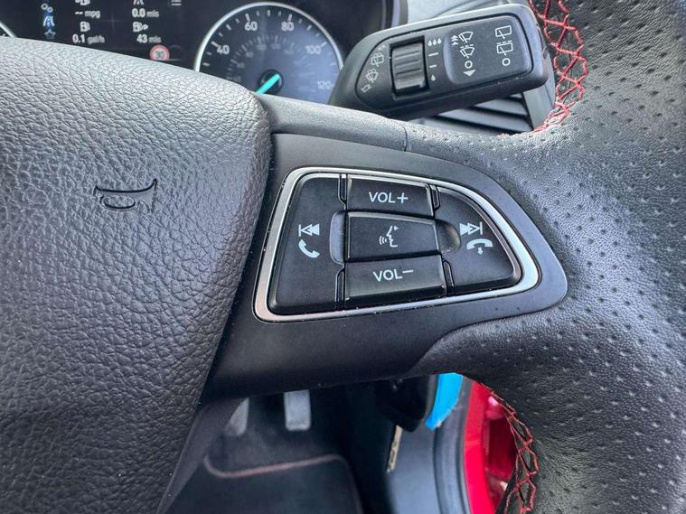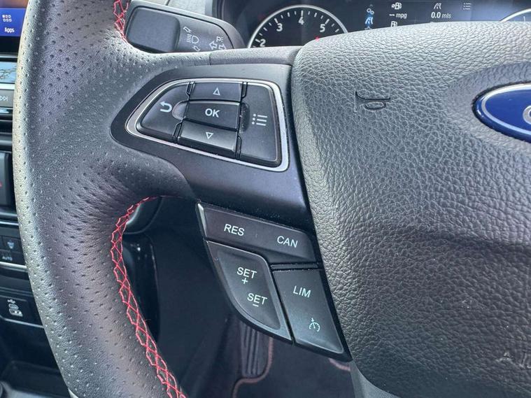 Cruise control, e-Call (emergency call), Easy fuel capless refuelling system, Ford SYNC 3 nav system with DAB radio, 8" screen, emergency assistance, Apple car play/Android auto, 2x USB, 6 speakers, Ford pass connect, Intelligent speed limiter, PAS, Rear parking sensors, Rear view camera, Traffic sign recognition, Trip computer, Sports suspension, Steering wheel mounted audio controls, Auto dimming rear view mirror, Automatic front wipers, Automatic headlights, Black roof rails, Body colour door handles, Body coloured bumpers, Chrome lower window surround, Electrically adjustable and heated door mirrors, Front fog lights, Front grille bars and surround in black, Headlight levelling control, Large rear roof spoiler, LED day running lights, LED third brake light, Power front and rear windows, Puddle lights, Quick-clear heated windscreen, Rear side wing doors, Rear wiper, ST Line body styling kit - Black headlamp bezel, front and rear sport bumpers, body colour lower door claddings, 12V socket in front and rear, 3 seat bench in 2nd row, 60/40 split rear seats, Ambient lighting, Centre console with sliding front armrest, Cooled glovebox, Courtesy lights with map reading light, Driver seat height/lumbar adjust, Driver's side glovebox, Driver/passenger sunvisors and lidded vanity mirrors, EATC - Electronic Auto Temperature control, Folding grab handles, Front head restraints, Front seat back map pockets, Illuminated glovebox, Illuminated luggage compartment, Isofix system on outer rear seats, Luggage compartment carpet, Neosuede/Partial sensico leather upholstery, Overhead console with sunglasses holder, Rake adjustable rear seats, Reach + rake adjustable steering column, Rear headrests, Sensico trimmed steering wheel, handbrake and gearshift gaiter with red stitching, Single front passenger seat, ST-Line Front floor mats with red stitching, Stainless steel sports pedals, Storage drawers under front seats, Tie down hooks, Variable boot floor, 3x3 point rear seatbelts, ABS, Autonomous emergency braking, Child locks on rear doors, Curtain airbags, Driver airbag, Drivers knee airbag, Electronic Stability Programme with hill launch assist, Front passenger airbag deactivation, Front side airbags, Passenger airbag, Pre collision assist system with AEB, Seatbelt reminder for driver and front passenger, Traction control, Tyre pressure monitoring system, Immobiliser, MyKey system, Remote central locking, Thatcham 1 volume sensing alarm, Low rolling resistance tyres, Tyre inflation kit,