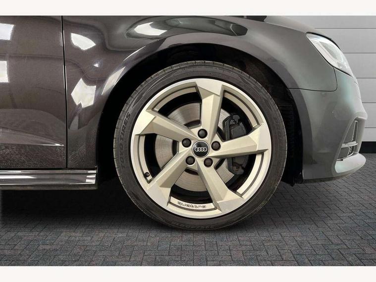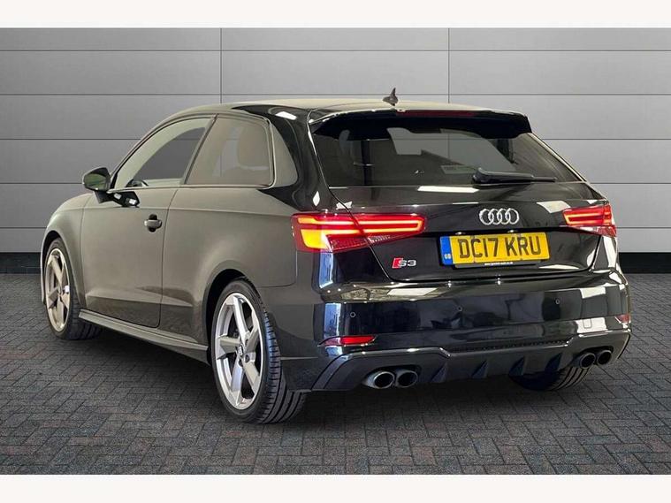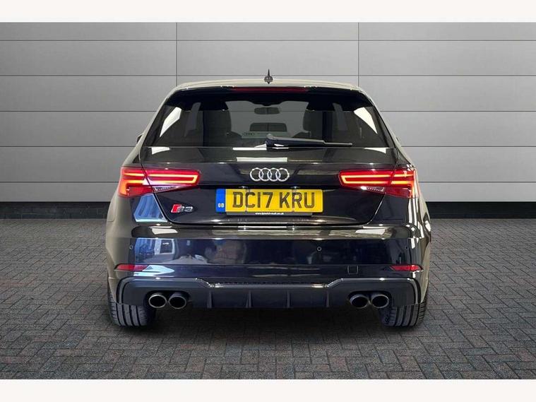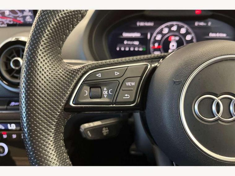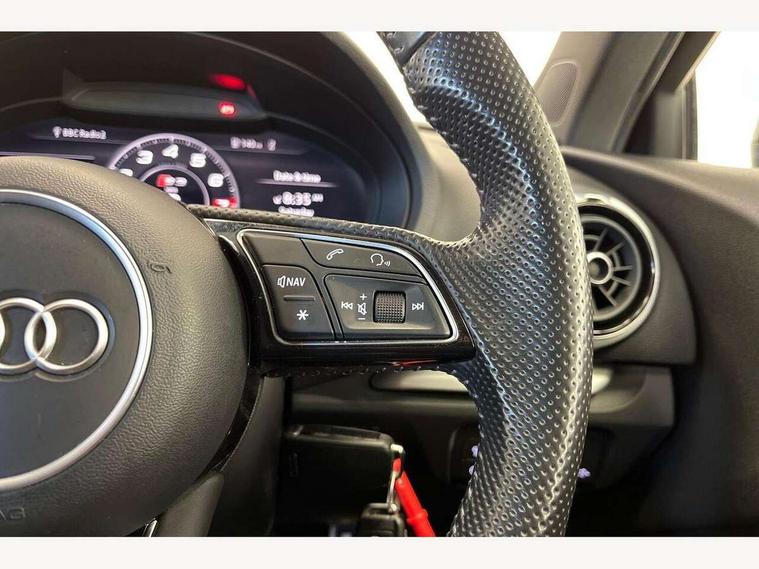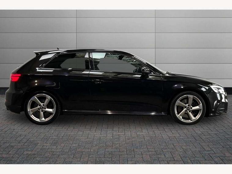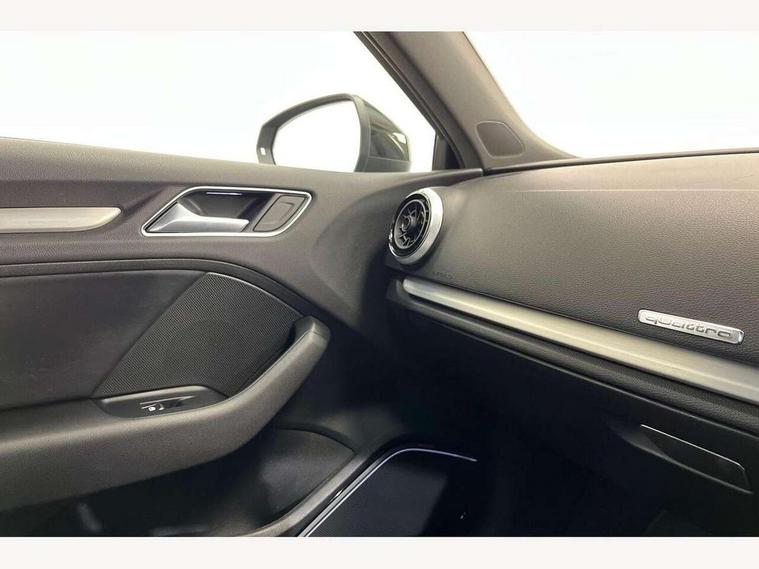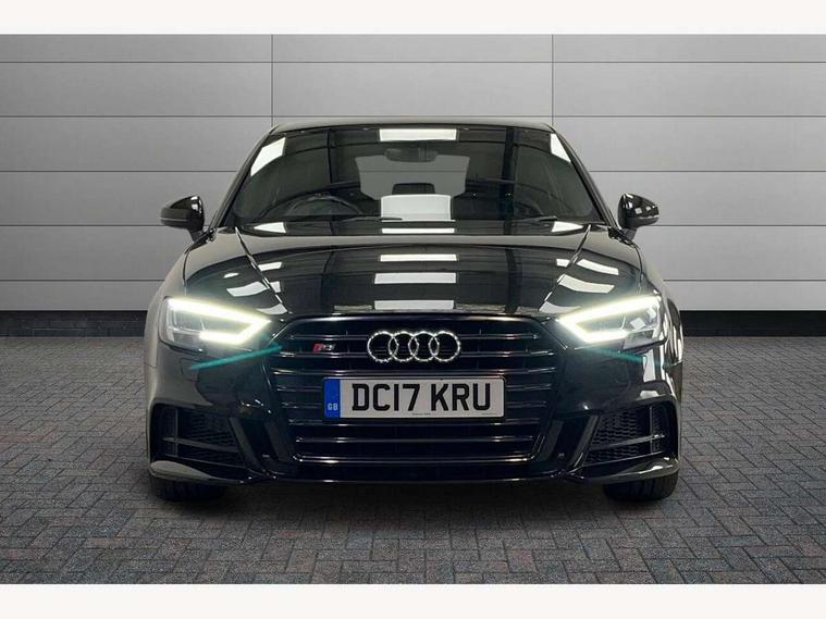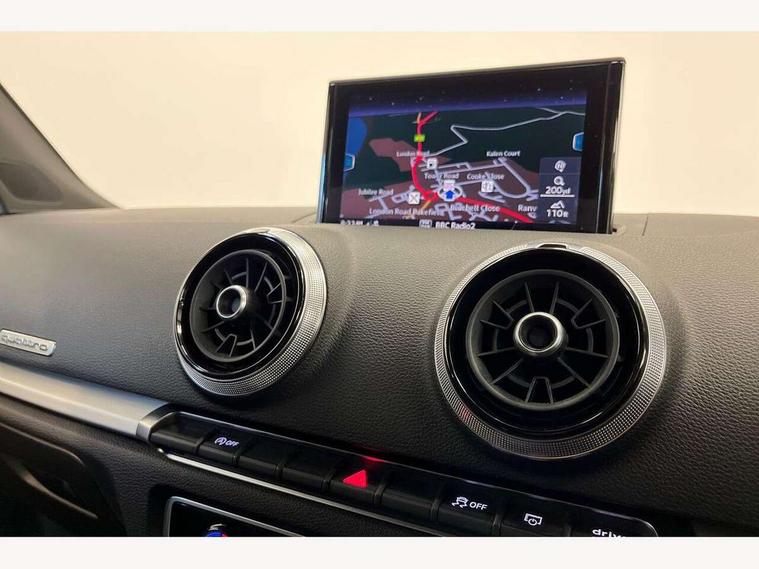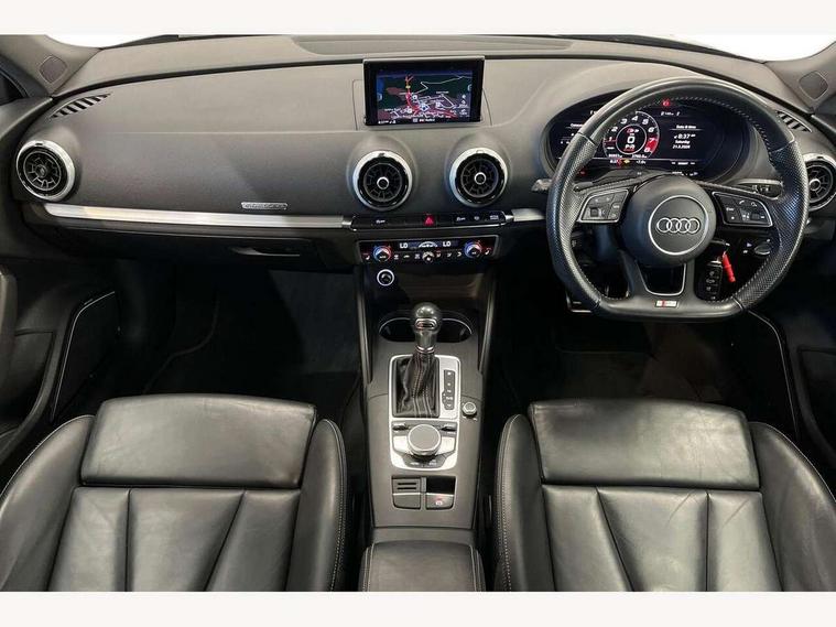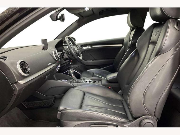 Audi connect, Audi drive select, Audi smartphone interface, Colour driver's information system display, Mobile telephone preparation - bluetooth interface, Progressive power assisted steering, SD card based satellite navigation system, Service interval indicator, Speed limit display, Voice control system, S sports suspension, 2 USB ports, Audi music interface, Auxiliary input socket, Bang + Olufsen advanced sound system, CD player, DAB Digital radio, MMI radio plus with 7" colour MMI screen and MMI controller, Auto dimming rear view mirror with light and rain sensors, Black door mirrors, Black window surrounds, Body colour bumpers with black insert, Body colour roof spoiler, Electric front windows, Electric operated/heated door mirrors, Headlight washers, Heated windscreen washer jets, LED daytime running lights, Matt black radiator grille, Platinum grey radiator grille with double chrome bars, Privacy glass, Rear wiper, S body styling, Twin oval chrome trimmed exhaust tailpipes, 3 adjustable rear headrests, 3 spoke flat bottomed multi-function leather steering wheel, 4 lashing points to secure luggage, Adjustable front armrest, Dual zone electronic climate control, Front and rear interior lights with delay, Front passenger seat isofix location point, Front/rear floor mats, Heated front seats, Height/depth adjustable steering column, Illuminated door sills, Illuminated glovebox, ISOFIX child seat preparation+airbag deactivation, Jack and tool kit, Rock grey headlining, Stainless steel pedals, Steering wheel gearshift paddles, Storage compartment in centre console, Storage compartment under front seats, Storage compartments in doors, Black styling pack - A3/S3, LED interior light pack - A3/RS3, Non smoking pack - A3, Storage and luggage pack - A3/RS3, 3 point seatbelts on all seats, ABS/EBD, Active bonnet, Active front headrests, ASR, Curtain airbags, Driver and passenger side airbags, Driver/Front Passenger airbags, Drivers knee airbag, EDL, Electromechanical parking brake, ESC - Electronic Stability Control + traction control, Front passenger airbag deactivation, Manual rear child locks, Multi-Collision braking, Seatbelt warning, Tyre pressure warning, Warning triangle and first aid kit, Anti theft alarm, Anti-theft wheel bolts, Remote control central locking, Thatcham category 1 alarm + immobiliser, Aluminium air vent surrounds, Aluminium trim elements, Space saver spare wheel,
