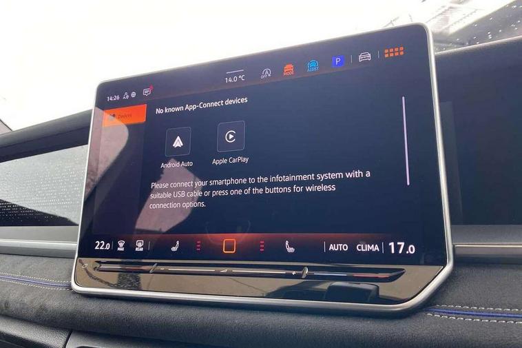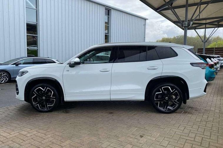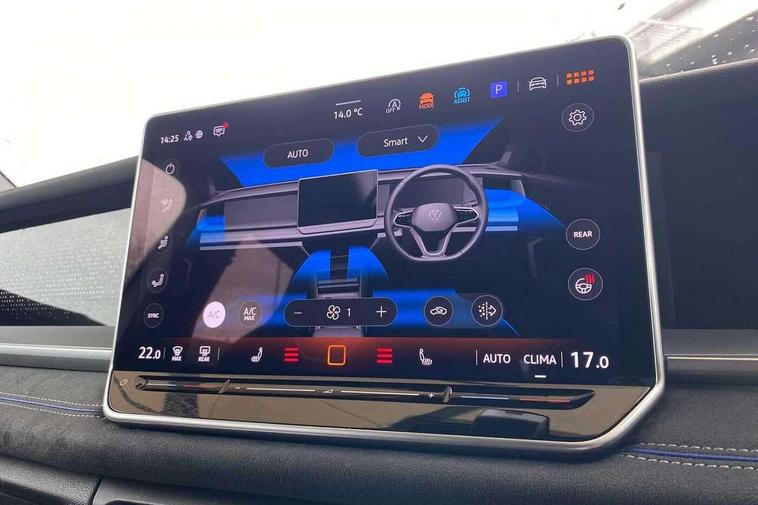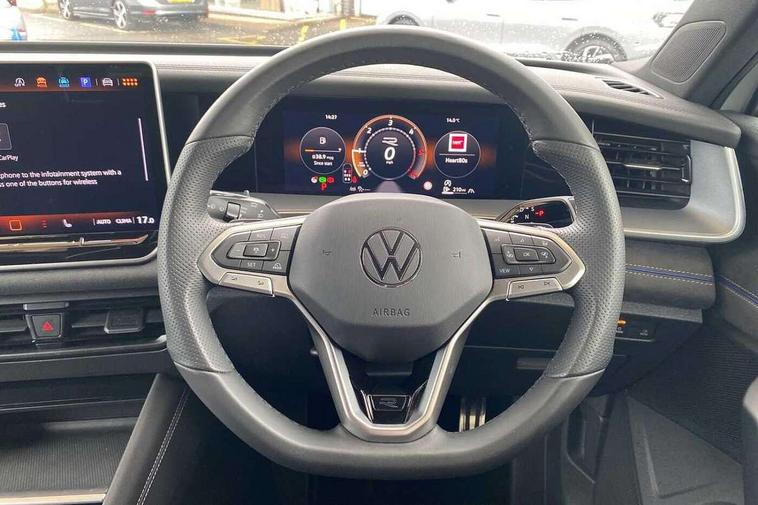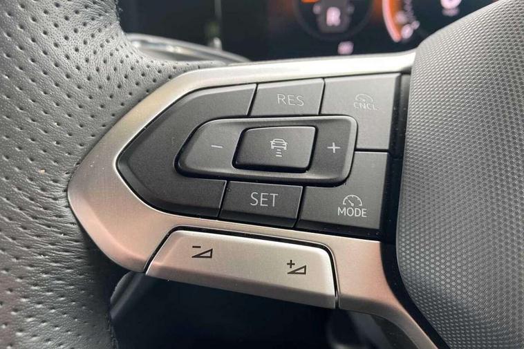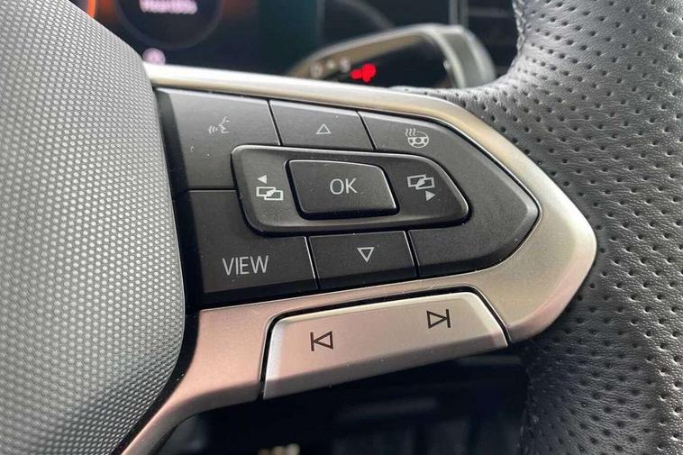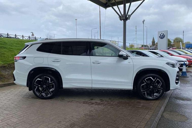 Adaptive cruise control (ACC), Digital Cockpit Pro - 10.25" high resolution dash display screen with customisable menus and information, Driver alert system, Driver attention monitoring system, Dynamic road sign display, E-Sim card for online connectivity, eCall emergency call system, Lane change system, Side assist, Rear traffic alert and Exit warning system, Multifunction front facing camera, Oncoming vehicle braking when turning including swerve support, Start/stop system with regenerative braking, Voice activation spoken voice commands for telephone and navigation system, Warning signal and warning light for front and rear seatbelts not fastened, Wireless App-Connect, Front wheel drive, Digital radio reception (DAB), Diversity antenna for FM reception, Air intake with Chrome trim, Auto dimming interior rear view mirror, Automatic headlight control system, Body colour door handles, Chrome moldings on the side windows, Coming/leaving home lighting function, Dynamic headlight range control with dynamic cornering light, Exterior mirrors convex on the left and aspherical on the right, Heat insulating glass in side and rear windows, Illuminated Volkswagen logo rear with animation, Laminated safety glass windshield, heat insulating, LED 3rd brake light, LED separate signature day time running light, Puddle lights, Rain sensor windscreen wipers, Rear fog light on one side, reversing light on both sides, Rear side wing doors, Rear wiper, Reverse activated passenger's door mirror, Surround lighting with welcome light, Volkswagen logo in front, illuminated lighting animation with wake up/goodbye scenario and illuminated door handles, 10 colour interior ambient lighting, 12V outlet in center console rear and in luggage compartment, 3 rear headrests, 3 rear seat bench in 2nd row, backrest split folding with centre armrest and 2 seats in 3rd row of seats, Black roof lining, Brushed stainless steel pedals, Carpet mats, front and rear, Centre console with illuminated storage compartment with sliding cover and two drinks holders, Chrome elements on the mirror switch and power window switches and door pulls, Door and side trim panel insert in Art velour, Flat luggage compartment floor, Front centre armrest, Front scuff plates in aluminium, ISOFIX anchors for child seats on outer rear seats and front passenger seat compatible with i-Size, Mechanical rear seat release, Power adjustable lumbar support in front, Single front passenger seat, Sports comfort seats in front, Sun visors with illuminated vanity mirrors, 3 Point seat belts in front with pretensioners, 3 point seatbelts in outer rear with ECE label, Autonomous emergency braking front assist with pedestrian and cyclist monitoring, Driver and front passenger airbag with front passenger airbag deactivation, Electronic parking brake with auto hold, First aid kit with warning triangle and safety vest, Front and rear curtain airbags, Front and rear side airbags, Front centre airbag, Front disc brakes, Hill start assist, Rear disc brakes, Two tone horn, Decorative material set R-Line, Interior door handle in matte chrome,