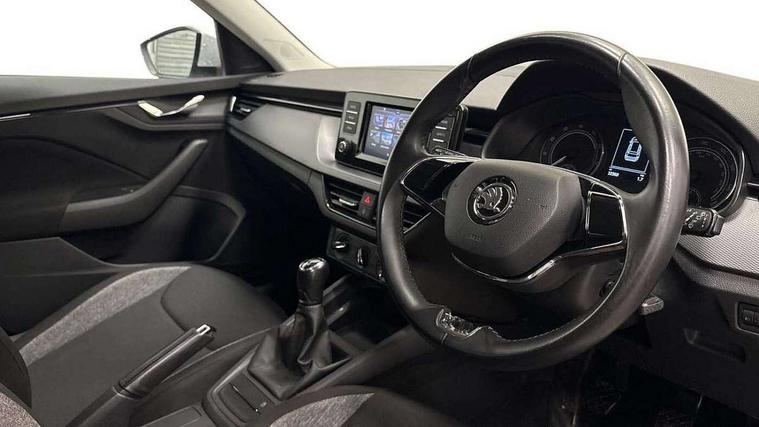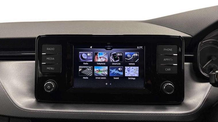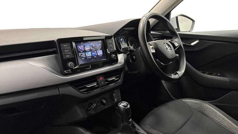 Bluetooth system, E-call, Front assist system, Lane assist, PAS, Service indicator, Speed limiter, Trip computer, 2 USB - C ports with 1x adaptor cable, 4 speakers, Auxiliary input socket, DAB Digital radio, Basic LED headlights with LED daytime running lights, Black roof rails, Body colour door mirrors and handles, Chrome grille surround, Electrically adjustable and heated door mirrors, Front and rear electric windows, Headlight range control, Heated rear window, LED rear lights - low functionality, Rear fog lights, Rear wiper, 12V Accessory socket in centre console, 2 spoke leather steering wheel and gear shift, Chrome inner door handles, Cloth upholstery, Front head restraints, Glove compartment, Height adjustable driver seat, Ice scraper, Isofix child seat fittings on outer rear seats, ISOFIX on front passenger seat, Manual air conditioning + Pollen filter, Rake/reach adjustable steering wheel, Textile floor mats, Third rear headrest, Top tether for front passenger seat, 3x3 point rear seatbelts, Airbags - driver and front passenger, ESP, Front passenger airbag deactivation switch, Front side airbags with curtain airbags, Hill hold control, Manual parking brake, One tone horn, Rear disc brakes, Seatbelt reminder for driver an co-driver, Traction control, Tyre pressure monitor, Anti-theft wheel bolts, Electronic engine immobilizer, Grained black decorative insert with glossy black hot stamping,