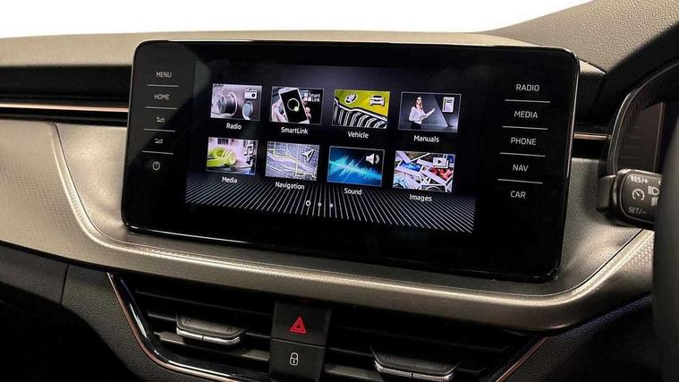Amundsen satellite navigation with 9.2" glass colour touchscreen display, web radio, voice control and traffic sign recognition, Bluetooth system, E-call, Front assist system, Gesture control, PAS, Rear view camera, Service indicator, Speed limiter, Wireless SmartLink for apple car play, android auto and mirrorlink, 8 Speakers, Auxiliary input socket, DAB Digital radio, Body colour bumpers, Body colour door mirrors and handles, Chrome grille surround, Dimming rear view mirror with black surround, Electric folding door mirrors, Electrically adjustable and heated door mirrors, Front and rear electric windows, Headlight range control, Heated rear window, LED rear lights with dynamic indicators, LED third brake light, Light sensors, Privacy glass, Rain sensor, Rear fog lights, Rear side wing doors, Rear wiper, 12V Accessory socket in centre console, 3 seat bench in 2nd row, Chrome inner door handles, Dual zone climate control, Front head restraints, Glove compartment with illumination, Ice scraper, Isofix child seat fittings on outer rear seats, ISOFIX on front passenger seat, Manual lumbar support for front seats, Rake/reach adjustable steering wheel, Reading lights, Single front passenger seat, Sun visors with illumination on front passenger, Textile floor mats, Third rear headrest, Top tether for front passenger seat, Umbrella in driver's door, 3x3 point rear seatbelts, Airbags - driver and front passenger, ESP, Front passenger airbag deactivation switch, Front side airbags with curtain airbags, Hill hold control, Manual parking brake, Manual rear child locks, One tone horn, Rear disc brakes, Seatbelt reminder for driver an co-driver, Traction control, Tyre pressure monitor, Anti-theft alarm system with interior monitoring, backup horn, towing protection and remote central locking with SAFE system, Anti-theft wheel bolts, Electronic engine immobilizer, Latice curved decorative insert on the dashboard with hot stamping in copper and white ambient lighting white,