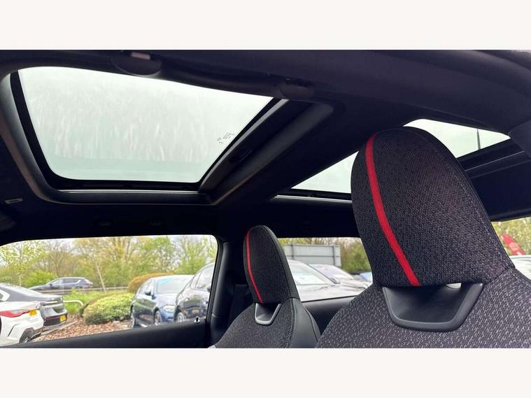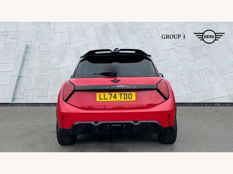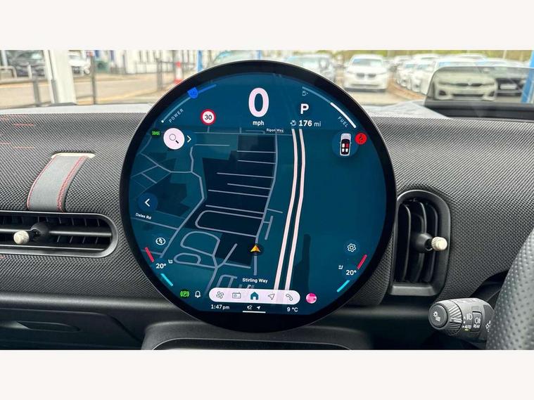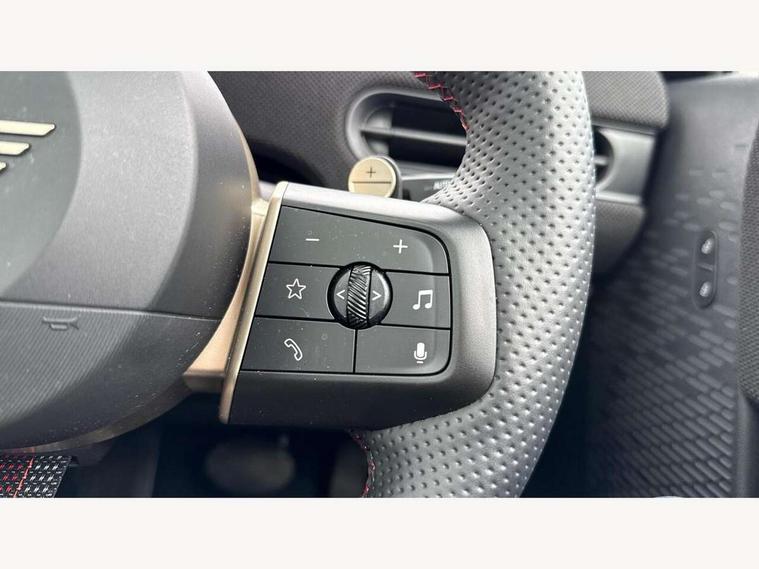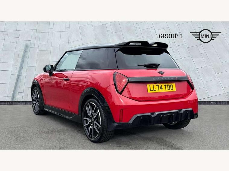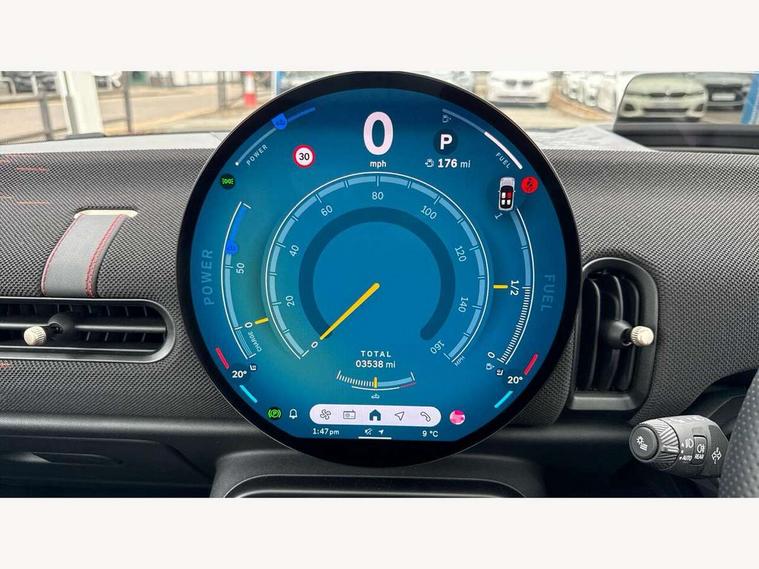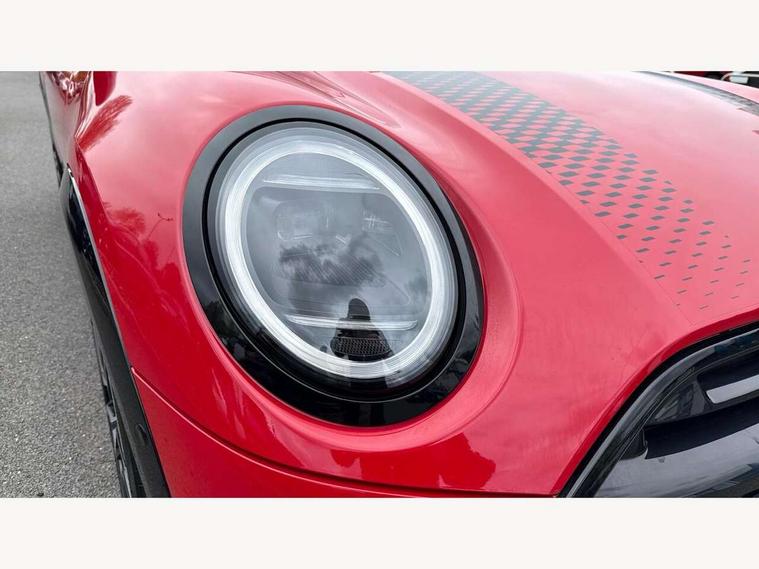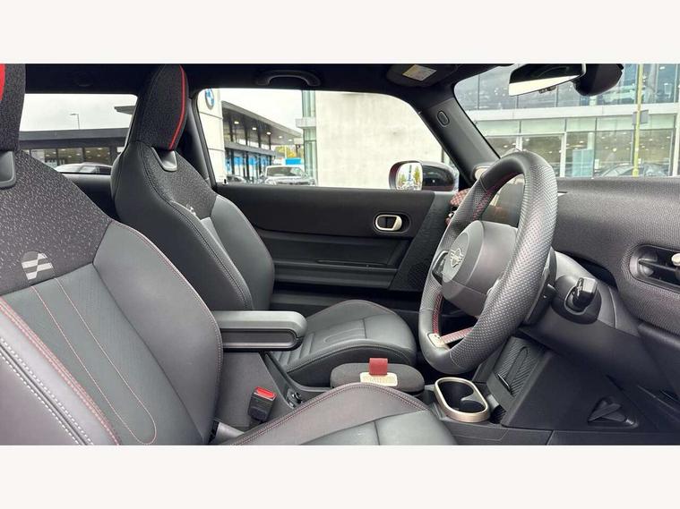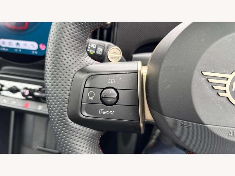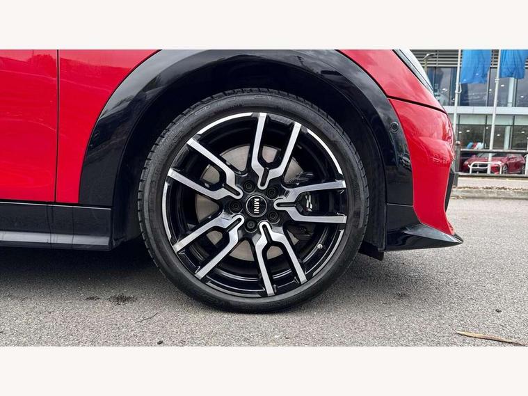 Central toggle bar, Circular OLED Screen, Compatible mobile phone bluetooth with audio streaming, Cruise control, Digital instrument cluster, Electro-mechanical speed dependant steering assistance, Emergency call service, MINI Experience Modes, Mini navigation system, On board computer, Service interval indicator, 7 speed steptronic sport transmission with double clutch, Adaptive suspension, DAB Digital radio, Personal eSim, Adaptable light signatures, Auto headlights, Electric adjustable heated door mirrors, Electric front windows, Front and rear apron, Heated rear window, Heated windscreen washer jets, High gloss black wheel arches, High gloss hexagonal patterned grille surround, JCW body kit, LED daytime running lights, LED indicator lights, LED rear lights, Rain sensor window wipers, Rear fog lights, Rear roof spoiler with airblades, Rear window wiper, 2 seat bench in second row, 2 zone automatic air conditioning, 60/40 rear seat bench, Ambient lighting, Black lower band in high gloss, Cupholders, Dark headliner, Floor mats, Front and rear head restraints, Front compact armrest, Heated steering wheel, Height adjustable passenger seat, Lidded storage box in Black/Red knit, Luggage compartment lighting, Partially perforated vescin steering wheel with red accent, black/red decorative strap, Single front passenger seat, Steering wheel paddle shift, Sunvisors with vanity mirrors, Vescin/Cord upholstery, Driving assistant pack - Cooper Hatchback, Level 1 pack - Mini Hatchback, Park assistant pack - Cooper Hatchback, 3 point seatbelts on all four seats, 6 Airbags - front, side, head and seat belt tensioners, Acoustic pedestrian protection, Anti-lock braking system (ABS), Brake caliper in Black with JCW badge, DSC - Dynamic Stability Control, Electronic parking brake, Front and rear disc brakes, Front ISOFIX (iSize), Front passenger airbag deactivation, JCW Sport Brakes, Traction control, Tyre pressure monitoring system, Alarm, Immobiliser, Remote central locking, Black/Red decorative dash strap, JCW Black/Red dashboard knit, Tyre repair kit,