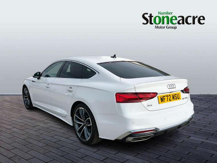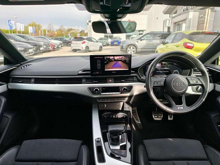 Audi connect safety and service (e-call), Audi connect with Amazon Alexa Integration, Audi drive select (Auto, Comfort, Dynamic and Individual), Audi parking system plus with front and rear sensors, Audi smartphone interface, Audi virtual cockpit - 12.3" full colour digital instrument cluster, vehicle/engine speed, Radio/media information+Driver assistance systems, Automatic start-stop system with coasting functionality and efficiency programme, Bluetooth interface, Electro-mechanical power steering, Email, calendar and text messages displayed via MMI, MMI nav+ with MMI touch - 10.1" high resolution MMI display, touch sensitive, 3D map, route/country info, dynamic route guide, personal route assist, Power operated tailgate, Rear view camera, Service interval indicator, Voice control system, Sports suspension lowered by 23mm, 8 passive loudspeakers, CD player, DAB digital radio reception, Two additional USB ports for rear passenger in rear centre console, Two SDXC card slots, Audi matrix LED headlights with LED rear lights + dynamic front and rear indicators, Auto dimming door mirrors, Auto dimming rear view mirror, Body colour bumpers, Body colour door handles, Body colour front spoiler lip, Body colour side sill trim, Body coloured door mirrors, Electric adjustable heated door mirrors, Electric folding door mirrors, Electric front windows, Front fog lights, Honeycomb structure radiator grille in grained matt black, Kerb-view function for passenger side, LED daytime running lights, LED side indicator lights integrated into door mirrors, LED third brake light, Matt aluminium silver tailpipe trim, Privacy glass, Rain and light sensors, Rear side wing doors, S line badges on front wings, S line front and rear bumpers with side skirts, S Line rear diffuser in matt titanium black with trim strip in matt aluminium silver, Side air inlets in grained matt black with matt aluminium silver inlay, Variable front intermittent wipers, Windscreen with acoustic glazing, 3 seat bench in 2nd row, 4 way electric lumbar support for driver and front passenger, 40/20/40 split folding 3 seater rear bench seat, Adjustable steering column, Black cloth headlining, Black perforated leather gearknob, Contrast stitching on seats, steering wheel and gear lever gaiter, Deluxe 3 zone electronic climate control, Front centre armrest, Front head restraints, Front/rear floor mats, Heated front seats, Illuminated door sill trim with S logo, ISOFIX child seat mounting and top tether, Luggage compartment mat, Manual seat adjustment, Rear centre armrest, Rear headrests, Single front passenger seat, Stainless steel pedals, Sunvisors with vanity mirrors, LED interior light pack - A5/RS5, 3x3 point rear seatbelts, 6 airbags - Driver, front passenger, curtain and side airbags, Electromechanical parking brake, Electronic Stabilisation Control (ESC) including ABS, ASR and EDL, Front passenger airbag deactivation, Height adjustable front seatbelts, Hill hold assist, Manual child lock in rear doors, Multi collision brake assist, Pop-up bonnet for pedestrian protection, Pre sense city, Seatbelt monitoring, Tyre pressure warning, Variable restraint system, Warning triangle and first aid kit, Anti theft alarm system, Anti theft wheel bolts, Immobiliser, Keyless Go, Remote central locking, Matt brushed aluminium inlays, Tool kit, Tyre repair kit,