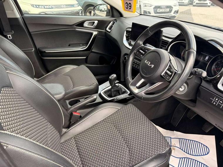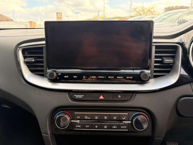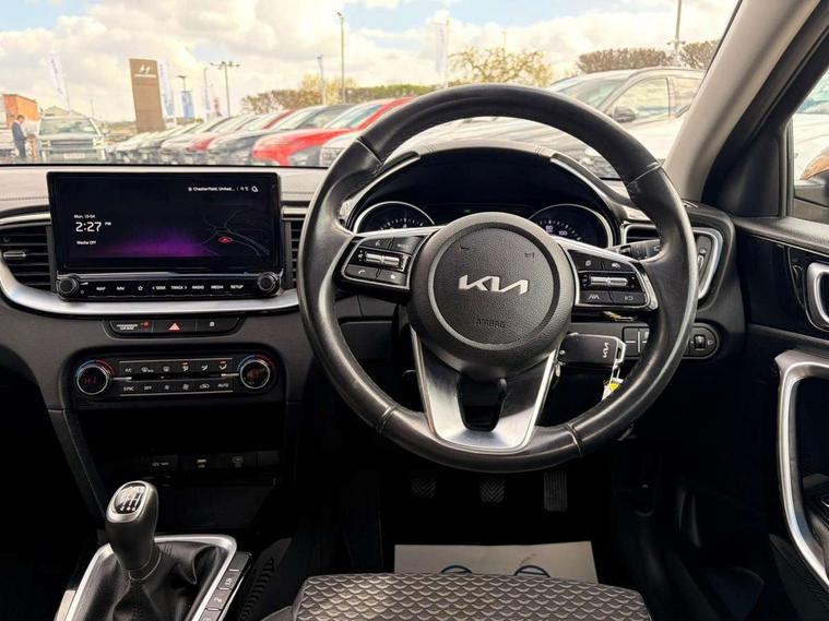 10.25" touchscreen satellite navigation, 4.2" supervision colour cluster display, Apple car play/Android Auto with voice control, Bluetooth with Voice Recognition & Music Streaming, Cruise control + speed limiter, Driver Attention Warning (DAW), Emergency call service, Emergency stop signalling system, Forward Collision-Avoidance Assist (FCA) - City/Pedestrian/Cyclist, Kia connect UVO, Lane Following Assist (LFA), Lane keep assist, Manual speed limit assist, Motor driven power steering, Rear parking sensor, Reversing camera system with dynamic guidelines (Integrated into centre fascia screen), Trip computer, Intelligent Stop and Go, 6 speaker audio system, DAB Radio with MP3, Illuminated USB ports, Steering wheel mounted controls, USB Fast Charger in Front Centre Console, USB port for connection of a media device, All-round Electric Windows with Front Auto Up & Down Function, Auto dimming rear view mirror, Automatic defog system, Automatic headlights control, Body colour bumpers, Body colour door mirrors, Body colour exterior door handles, Body coloured rear spoiler, Chrome window surround, Electric adjustable/heated/folding door mirrors with LED Indicators, Heated rear window with timer, High beam assist, High gloss black and white chrome coated radiator grille, LED daytime running lights, LED front fog lights, LED Headlights, LED High-mounted Brake Light, LED rear combination lights, LED rear fog light, Privacy glass (rear side windows and tailgate), Rain sensing front wipers, Rear side wing doors, Rear wash/wipe, Roof rails, Tinted glass, Wide view drivers door mirror, Windscreen Washer Level Warning, 12V power socket in luggage compartment, 12V power sockets, 3 seat bench in 2nd row, 3 x passenger assist grips, 60/40 split folding rear seat, All-round height adjustable headrests, Centre console storage box/armrest, Cloth upholstery with faux leather bolsters, Cupholders in centre console, Cupholders in rear armrest, Dash illumination dimmer switch, Door courtesy lamps, Driver & Front Passenger Sunvisors with Vanity Mirror Illumination & Ticket Holder, Driver + front passenger electric lumbar support, Driver's seat height adjuster, Dual Height Luggage Area Floor, Dual zone automatic air conditioning, Faux leather door centre trim, Front and rear door storage, Front cabin map light with sunglasses case, Front Passenger Seat Height Adjuster, Front seat back pockets, Gear shift indicator, Heated front seats, Heated steering wheel, Interior door lock/unlock function, ISOFIX Child seat top tethers and anchor fixings, Leather handbrake, Leather trimmed steering wheel, Light grey headlining, Luggage area light, Luggage area parcel shelf, Luggage hooks, Rear centre armrest, Rear coat hooks, Satin chrome interior door handles, Single front passenger seat, Tilt/telescopic adjustable steering wheel, All round 3-point seatbelts, Anti-lock braking system (ABS), Dual front side airbags, Dual horn, Electronic parking brake, Electronic stability control (ESC) and vehicle stability management (VSM), Front passenger airbag cut-off switch, Height adjustable front seatbelts, Hill start assist control (HAC), Impact sensing auto door unlocking, Rear door child safety locks, Seatbelt reminder warning, Twin curtain airbags, Twin front airbags, Tyre pressure monitoring system, Alarm system, Engine Immobiliser & Deadlocks, Engine Start/Stop Button with Smart Entry System, Locking wheel nuts, Speed sensitive auto door locking, Black high gloss front console garnish & door trim, Satin Chrome Fascia Trim, 17" Alloy wheels, Tyre mobility kit,