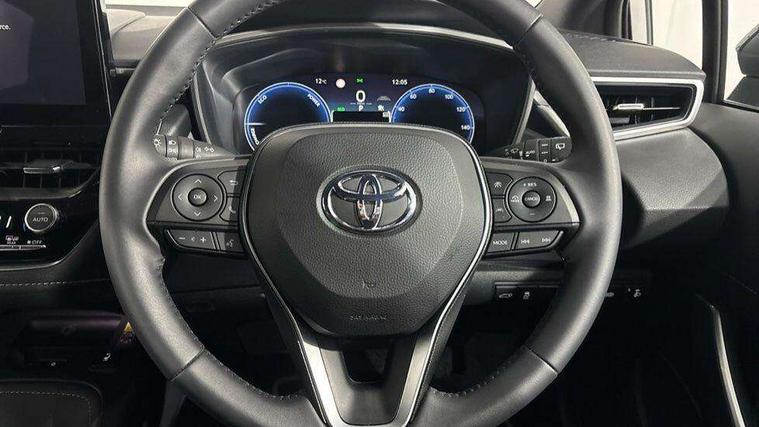 10.5" Multimedia display screen, 12.3" multi information screen, Adjustable speed limiter, Bluetooth telephone connectivity, Colour multi information display with 3D, Connected car functionality upgrade, tracker, remote status and e-care, Drive mode select (Eco, Normal), E-call, Electrically assisted power steering, EV drive indicator, Front and rear parking sensors, Full Digital 12.3" TFT Digital Combimeter, Gear position indicator with meter, Hybrid system indicator, Intelligent parking assist, Key reminder warning, Lane Departure Alert (LDA) switch on steering wheel, Lane departure alert - LDA, Memory on adjustable speed limiter, MyT connected services, Proactive driving assist (PDA), Reversing camera, Smart entry and push button start, Smartphone integration with Apple CarPlay and wired android auto, Speedometer, Toyota remote services, Toyota smart connect multimedia system, Toyota smart connect navigation, Wireless charger, Catalytic converter, Double wishbone rear suspension, Electric accelerator pedal, Front and rear stabilizers, Front differential 2.834, Gasoline particulate filter, MacPherson front suspension, Vehicle Stability Control (VSC), 6 speakers, DAB Digital radio, Smart voice assist/ Voice recognition, USB connector, 20% privacy rear side and quarter glass, A - Pillar garnish, Adaptive automatic high beam system (AHS), Aluminium roof rails, Anti-jam protection on power windows, Auto dimming rear view mirror, Auto headlights, Auto up and down function on all power windows, Automatic folding mirrors, B - Pillar in Black, Black door moulding, Black metallic meshed front grille, Black side air vents, Black toyota logo in front, Body colour rear roof spoiler, Body coloured door mirrors, Body coloured front spoiler, Body coloured outside door handles, Body coloured rear bumpers, Electrochromatic mirror, Ethanol washer fluid, Follow me home headlights, Front and rear fender high liner, Front bumper, Fuel caution label, Gloss black diffuser, Gloss black upper front grille, Height memory opening on power tailgate, LED daytime running lights, LED dual beam projector headlights, LED front fog lights, LED High mounted stop light, LED rear combi lights with LED lightguide, Light remind warning with auto cut off, Lower back and back door plated garnish, Manual headlight levelling system, New grille pattern, Noise reduction layer on front windows, Noise reduction layer on windscreen, Paint protective wrap guard, Power adjustable heated door mirrors, Power front windows, Power rear windows, Power tailgate with kick sensor, Rain sensing wipers, Rear bumper decoration with chrome plated inserts, Rear privacy windows, Rear side wing doors, Rear under guard with chrome ornament, Rear window defogger, Rear window wiper, Remote tailgate release on key, Reverse tilting door mirrors, RHD aimed headlight levelling system, Satin chrome insert on front door assist grips, Satin chrome inserts on rear passenger air vents, Satin chrome surround on lower front grille, Shark fin antenna, Single exhaust tailpipe, Tailgate release with push button, Tailgate remote release in cabin, Time adjustment on intermittent wiper, Turning signal integrated indicators in door mirrors, Unique lower skirt, UV-filter on driver and passenger windows, 12v power outlet - front, 12v power outlet - luggage side, 2 Shopping bag hooks in luggage compartment, 3 rear height adjustable headrests, 3 seat bench in 2nd row, 3 spoke steering wheel with satin insert, 4 tie down hooks in luggage compartment, 60/40 split folding rear seat, Adaptive cruise control (ACC) switch on steering wheel, Adjustable speed limiter switch on steering wheel, Aluminium door scuff plates with corolla batch, Audio, multi-info and telephone switches on steering wheel, Automatic light control system, Black armrest on centre console box, Black out with door sash and wheel house, Boot underfloor storage, Center console cover, Clean air filter, Driver and front passenger personal light, Driver and passenger sun visor with mirror and light, Dual level deckboard, Dual mike in roof, Dual sided boot floor, Dual zone automatic air conditioning with ECO mode switch, Electric lumbar support for passenger, Fabric upholstery, Forward tilting 2nd row seats, Front and rear bottle holders, Front and rear door pockets, Front console box with stitching, Front floor mats, Front head restraints, Front overhead assist grips, Front passenger seat, Front sliding synthetic leather armrest, Gear knob, Gloss black gear shift console, Heated front seats, Illuminated entry system in room lamp, ISOFIX child restraint system, Leather gear shift with satin chrome on gear shift console, LED boot light, Manual height adjustable for driver and front passenger seat, Manual tilt and telescopic steering wheel, Manually sliding driver seat, Manually sliding front passenger seat, Matt black front door assist grip, Nanoe-X air purifier, Passenger seat back pocket, Pollen filter, Power adjustable lumbar support on driver seat, Power window switches with satin chrome inserts, PVC door armrest, Rear air vents, Rear armrest with 2 cupholders, Rear fabric floor mats, Rear overhead assist grips, Rear passenger coat hooks (2), Rear passenger personal lights, Refrigerant correspondent hf01234f, Regulation compliancy wvta label +, Remote air conditioning, Remote controlled Toyota easy flat system, Retractable tonneau cover with luggage partition net, Satin chrome inserts on centre air vents, Satin chrome inside door handles, Satin chrome surround on heater control panel, Satin chrome surround on multimedia, Satin chrome surround on speedometer, Side storage in boot, Slow opening glovebox with lights, Soft touch front and rear door trim, USB charger front, Voice recognition switch on steering wheel, Whiplash Injury Lessening (WIL) feature (active headrest) for seats, White ambient lighting on open tray and front cup holder, Toyota safety sense 3 pack - Corolla, 15" Front brakes, 3x3 point rear seatbe