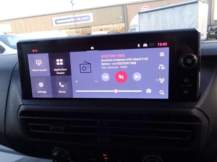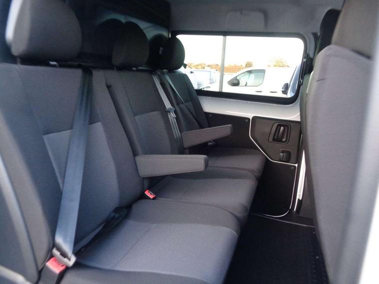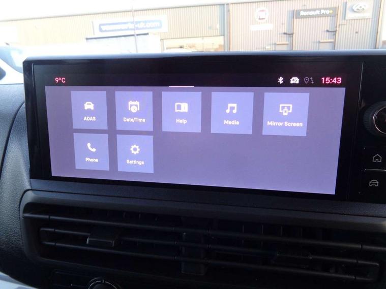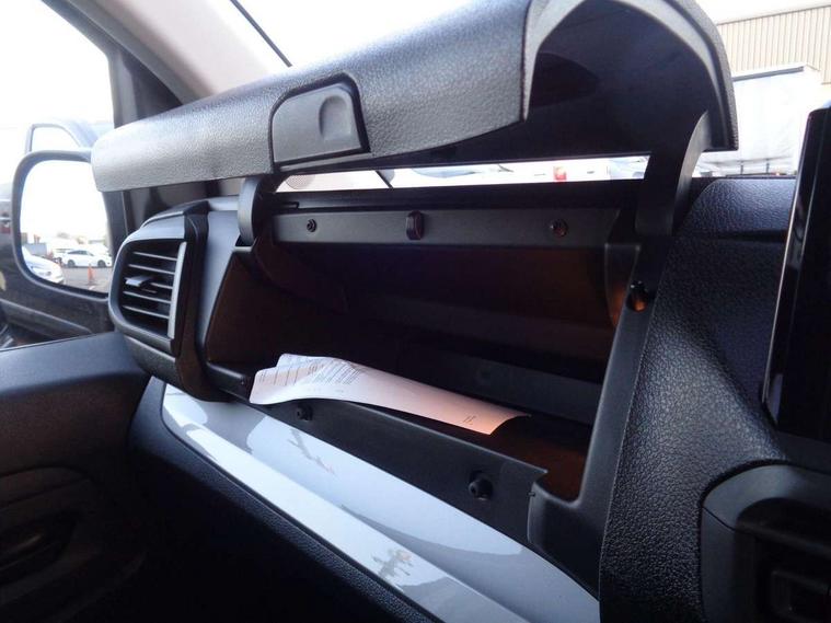 10" digital instrumental cluster, Connectivity via BTA with RCE, Driver Attention Alert, level - 3, Electronic power steering (EPS), Intelligent Speed Assist, Lane keeping assist, Multi-function trip computer, Rear parking distance sensor, TPMS (Tyre pressure monitoring system), Audio controls mounted on steering wheel, Flexible short antenna (200mm), Two speakers and two tweeters, 2nd row glazed with dark tinted acoustic fixed left and right side windows, Automatic headlamps on/off, Black front and rear bumpers, side protection, sliding door rail cover and exterior door handles, Electrically adjustable + heated door mirrors, Front electric windows with one touch facility, Halogen headlamp with integrated daytime running lights, High beam assist, Laminated acoustic windscreen, Offside and nearside sliding side access doors, Rain sensitive windscreen wipers, Twin solid rear doors, 12V socket in cabin, 2x USB socket in B-pillar, Air recirculation facility, Chilled glovebox facility, Driver's seat armrest, Ergonomic 6-way adjustable driver's seat with reach, rake, height and lumbar adjustment, Fabric upholstery, Fixed floor mounted load restraint lashing eyes x4, Interior roof trim in row 1 and no grab handle in row 2, Manual air conditioning, Overhead console with 1 ceiling lamp (dome type and 3 lamps), Removable storage compartment under left and center seats with area for long payload under right seat, Three individual contoured rear seats with adjustable headrest and 2 armrest, TPO plastic floor in 1st row and painted sheet metal in 2nd row, USB socket in cabin (dashboard), Automatic fuel cut-off and door unlocking in event of accident, Driver and passenger airbags, Height adjustable lap and diagonal inertia reel front seatbelts, Passenger airbag can be deactivated manually, Dashboard mounted central locking push button and auto locking above 7mph, Immobiliser, Remote control central locking and deadlocking, Selective door locking, 22.5 litres AdBlue tank, 70L fuel tank, ABS, Advanced emergency braking system (AEBS), EBA, Electronic brake force distribution (EBFD), Engine start/stop system, ESC, Hill start assist, Mistral black dashboard trim with liquid paladium decor strip in mid-section,
