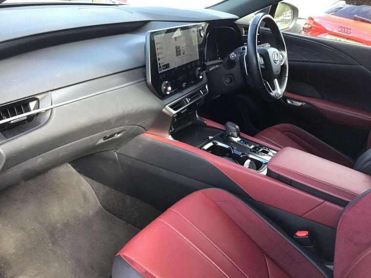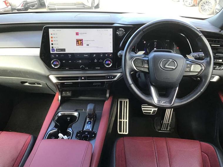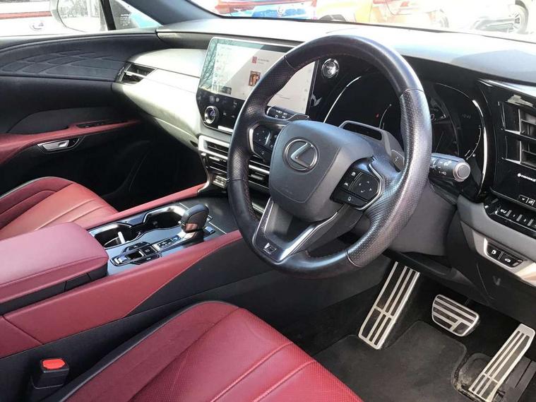 360 degree panoramic view monitor, Bluetooth mobile phone connectivity, BSM - Blind spot monitoring, Drive mode selector, E-call, Head up Display, Lexus link connected services including over the air updates, MM21 Lexus link pro - 14" HD touchscreen with embedded and cloud based navigation, voice assistant, connected services, over the air and always online, Push button starter, Rear cross traffic alert, Speed sensitive electric power assisted steering, Ultrasonic parking sensors, Wireless Apple CarPlay and wired Android Auto, Wireless Smartphone charger, Adaptive variable suspension, Direct 4 automatic transmission, Vehicle Stability Control (VSC), 12 speakers audio, 6 USB ports (3 front USB C, 1 front USB A and 2 rear USB C), DAB Digital radio, 3 projector bi-beam LED headlight with adaptive high beam system with bladescan technology, Auto dimming rear view mirror, Auto headlights, F SPORT exterior styling, F SPORT front and rear bumpers, F SPORT grille, Front and rear black window frame mouldings, Front and rear one touch power windows with voice command, Headlight washers, Heated, auto-folding door mirrors, auto dimming with rerverse tilt, turn indicators and panoramic view sensors, Intelligent clearance sonar, L-shaped rear light bar, LED brake lights and rear lights with emergency brake signal, LED cornering headlights, LED daytime running lights, LED front and rear fog lights, LED Indicators, Power back door with kick sensor, Privacy UV glass, rear doors and tailgate, Rain sensor windscreen wipers, Rear side wing doors, Rear wash/wipe, Roof rails, Variable front intermittent wipers, 12V accessory port centre console and luggage compartment, 2 cup holders in centre console, 2 way electric lumbar support for driver and front passenger, 2 x Sunvisors with vanity mirror and lamp, 3 rear headrests, 3 seat bench in 2nd row, 40:20:40 split folding rear seats, 64 colour LED ambient interior illumination with 14 pre-set themed colour tones, 8 way electrically adjustable front seats, Active sound control, Driver seat memory function, Easy access driver seat, Easy access steering wheel, F sport aluminium pedals, F SPORT heated and power adjustable steering, F Sport interior styling, F SPORT lever type shift control, Front aluminium scuff plates, Front headrests, Front tray in front of centre console, Glovebox, Heated and ventilated front seats, Leather steering wheel, Manually adjustable rear seats, Rear resin scuff plates, Single front passenger seat, Smooth F SPORT leather upholstery, Textile carpet mats, Three zone climate control air conditioning system with Nanoe technology, Two way opening centre armrest with storage, 2 x Isofix child rear seat restraints, 3 point ELR front and rear seatbelts with pretensioners, ABS, Black brake calipers, Curtain shield airbags (front and rear), Driver and front passenger 2 stage airbag, Driver/front passenger side airbags, Drivers knee airbag, E-Latch with safe exit assist, EBD + Brake Assist, Electronic parking brake, Electronically controlled braking, Extended lexus safety system+ 3 - lane change assist, front cross traffic assist, Front and rear left/right force limiters and tension reducers, Front and rear left/right seatbelt reminders, Front centre airbag, Hill assist control, Lexus safety system+ 3 - dynamic radar cruise control, pre collision system day and night, lane tracing assist, road sign, OTA, Manual child lock in rear doors, Passenger airbag cut-off device, Traction control, Tyre pressure warning, 2 x remote key fobs, Customisable auto door lock, Motion sensor key, Smart keyless entry, Thatcham category 1 alarm + immobiliser, VIN etching, Aluminium inlays, 21" F SPORT alloy wheels,