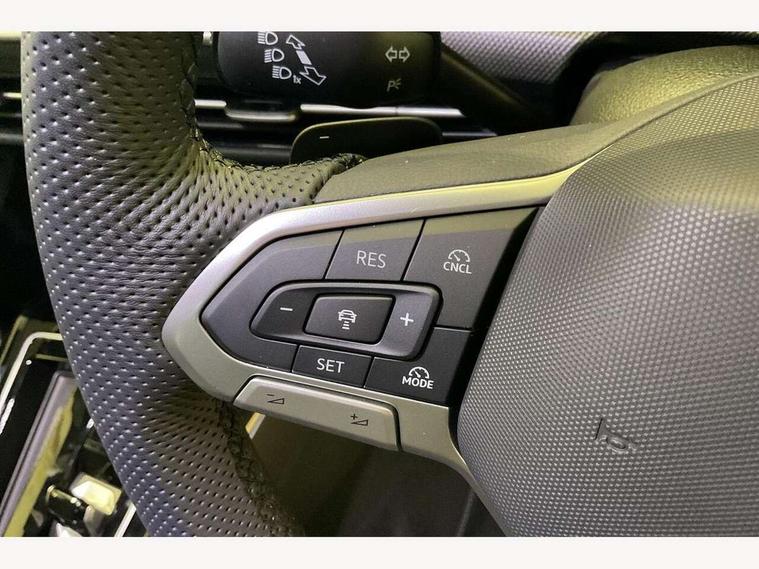Activated carbon canister, Adaptive cruise control (ACC), Advanced driver attention and drowsiness monitor, Dynamic road sign display, Dynamic steering, E-Sim card for online connectivity, eCall emergency call system, Multi-color Digital cockpit pro, selection of different info profile possible, Multifunction front facing camera for distance control, Navigation system, Oncoming vehicle braking when turning including swerve support, Speed limiter, Speedo, rev counter, electronic odometer, trip, service interval display, exterior temperature and fuel gauge, Traffic jam assist, Voice enhancer and voice control, Warning signal and warning light for front and rear seatbelts not fastened, We connect plus preparation, We connect preparation, Wireless app connect, Hybrid propulsion system, Petrol Particulate Filter, Start-stop system with battery regeneration (recuperation - energy recovery during braking), XDS electronic differential lock for improved traction and handling, 2 USB C ports in front, 2 USB charging sockets on the centre console in the rear charging capacity upto 45W, Digital radio reception (DAB), Diversity antenna for FM reception, Gaming platform via car app, Infotainment system with 12.9" display, Mobile phone interface with inductive charging feature, 3rd brake light, Automatic headlamp activation with Coming home and Leaving home feature, Body colored bumpers in R-Line style, Body colour door handles, Exterior mirrors convex on the left and aspherical on the right, Front and rear electric windows, Heat insulating windshield made of laminated glass, LED separate daytime running light, Rear exhaust tailpipe, Rear fog light on one side and reversing lights on both sides, Rear side wing doors, Rear windscreen washer and wiper with interval delay, Remote electrically foldable door mirrors, puddle lights and reverse activated passenger's door mirror, Welcome light with surround lighting, 12V socket in front centre console, 12V socket in luggage compartment, 3 rear head restraints, 3 seat bench in 2nd row, Ambient lighting with 30 colour including LED light unit in front footwell with selectable light colour, Black roof lining, Brushed stainless steel pedals, Chrome plated radiator grille inserts, air vent surrounds and light switch surrounds, Door insert, side trim panel and arm support in leatherette, Front + rear black carpet mats, Front centre armrest, Front seat lumbar support adjuster, Integrated front head restraints, ISOFIX anchors for child seats on outer rear bench seats and on front passanger seat compatible for i-Size, Luggage compartment lighting, Manual height adjustable front passenger seat, Manually height adjustable driver seat, Plastic gear knob, Premium sports seats in front, Rear cupholder and loadthough, Sardegna cloth upholstery with front and outer rear seats Art Velour inner sides of bolsters, Single front passenger seat, Split folding backrest with centre armrest and unsplit rear seat bench, Sun visors with illuminated vanity mirrors, Titanium black instrument panel, 3 point height adj front seatbelts + pretensioners, 3 rear three point seatbelts, ABS, Autonomous emergency braking front assist with pedestrian and cyclist monitoring, Child locks on rear doors, Driver and front passenger airbag with front passenger airbag deactivation, Electronic parking brake with auto hold, ESC (Electronic Stability Control), Extended pedestrian protection measures, Hill start assist, Rear disc brakes, Two tone horn, Tyre pressure loss indicator, Volkswagen roadside assistance, Anti theft wheel bolts, Preparation for alcohol interlock, Decorative inserts carbon grey for dashboard and front door trim panels,