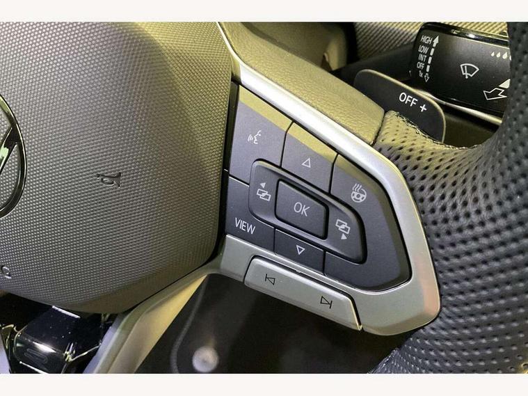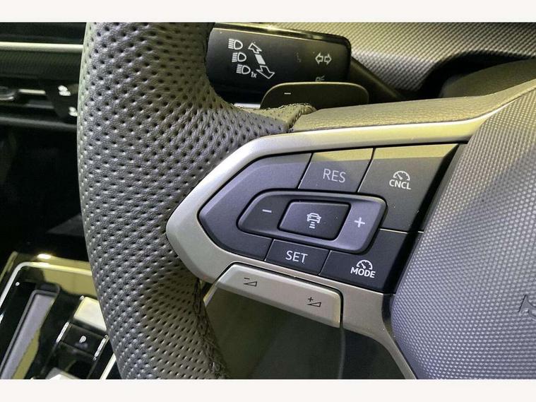 Activated carbon canister, Adaptive cruise control (ACC), Advanced driver attention and drowsiness monitor, Dynamic road sign display, Dynamic steering, E-Sim card for online connectivity, eCall emergency call system, Multi-color Digital cockpit pro, selection of different info profile possible, Multifunction front facing camera for distance control, Navigation system, Oncoming vehicle braking when turning including swerve support, Speed limiter, Speedo, rev counter, electronic odometer, trip, service interval display, exterior temperature and fuel gauge, Traffic jam assist, Voice enhancer and voice control, Warning signal and warning light for front and rear seatbelts not fastened, We connect plus preparation, We connect preparation, Wireless app connect, Hybrid propulsion system, Petrol Particulate Filter, Start-stop system with battery regeneration (recuperation - energy recovery during braking), XDS electronic differential lock for improved traction and handling, 2 USB C ports in front, 2 USB charging sockets on the centre console in the rear charging capacity upto 45W, Digital radio reception (DAB), Diversity antenna for FM reception, Gaming platform via car app, Infotainment system with 12.9" display, Mobile phone interface with inductive charging feature, 3rd brake light, Automatic headlamp activation with Coming home and Leaving home feature, Body colored bumpers in R-Line style, Body colour door handles, Exterior mirrors convex on the left and aspherical on the right, Front and rear electric windows, Heat insulating windshield made of laminated glass, LED separate daytime running light, Rear exhaust tailpipe, Rear fog light on one side and reversing lights on both sides, Rear side wing doors, Rear windscreen washer and wiper with interval delay, Remote electrically foldable door mirrors, puddle lights and reverse activated passenger's door mirror, Welcome light with surround lighting, 12V socket in front centre console, 12V socket in luggage compartment, 3 rear head restraints, 3 seat bench in 2nd row, Ambient lighting with 30 colour including LED light unit in front footwell with selectable light colour, Black roof lining, Brushed stainless steel pedals, Chrome plated radiator grille inserts, air vent surrounds and light switch surrounds, Door insert, side trim panel and arm support in leatherette, Front + rear black carpet mats, Front centre armrest, Front seat lumbar support adjuster, Integrated front head restraints, ISOFIX anchors for child seats on outer rear bench seats and on front passanger seat compatible for i-Size, Luggage compartment lighting, Manual height adjustable front passenger seat, Manually height adjustable driver seat, Plastic gear knob, Premium sports seats in front, Rear cupholder and loadthough, Sardegna cloth upholstery with front and outer rear seats Art Velour inner sides of bolsters, Single front passenger seat, Split folding backrest with centre armrest and unsplit rear seat bench, Sun visors with illuminated vanity mirrors, Titanium black instrument panel, 3 point height adj front seatbelts + pretensioners, 3 rear three point seatbelts, ABS, Autonomous emergency braking front assist with pedestrian and cyclist monitoring, Child locks on rear doors, Driver and front passenger airbag with front passenger airbag deactivation, Electronic parking brake with auto hold, ESC (Electronic Stability Control), Extended pedestrian protection measures, Hill start assist, Rear disc brakes, Two tone horn, Tyre pressure loss indicator, Volkswagen roadside assistance, Anti theft wheel bolts, Preparation for alcohol interlock, Decorative inserts carbon grey for dashboard and front door trim panels,
