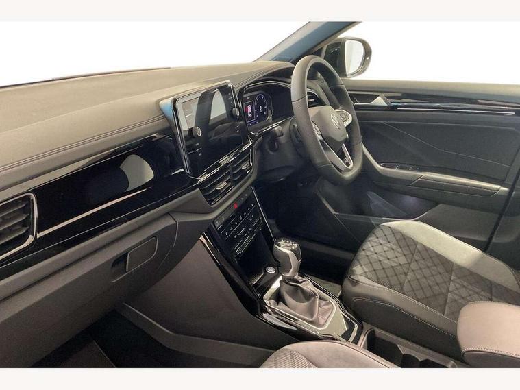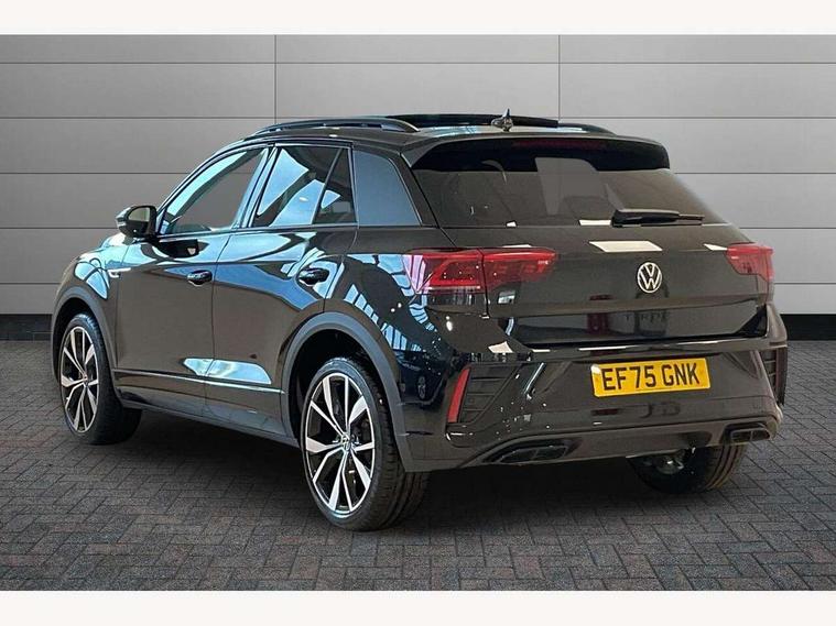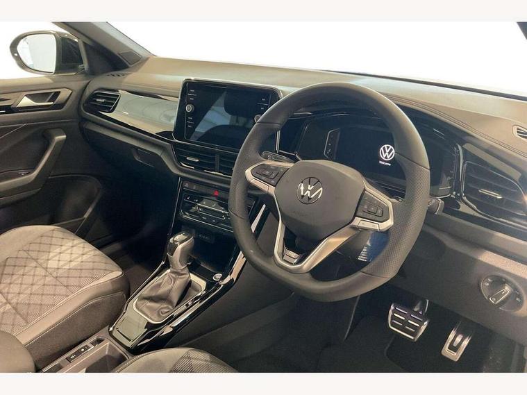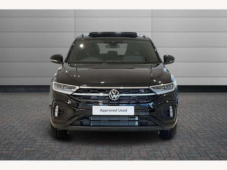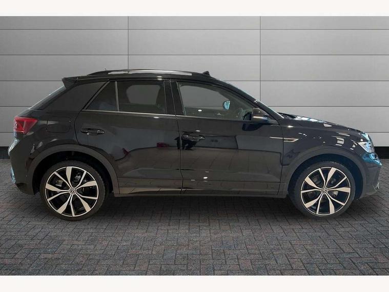 10.25" Digital cockpit pro, Advanced driver attention and drowsiness monitor, Emergency call service, Lane keeping system Lane Assist, Mobile phone interface, Modified key software - reduce switch off time for key status change to Long no motion, Online services, Park assist including front and rear parking sensors, Power assisted speed sensitive steering, Rear view camera, Service interval indicator, Tailgate/trunk lid release from outside, Think blue trainer driver tips and journey analysis, Warning sound and light for front seatbelts unfastened, Wireless app connect, Battery regeneration during braking, Rear shock absorption chassis with increased ride height, Start/stop function with battery regeneration, DAB Digital radio, Diversity antenna for FM reception, Music playback - MP3, WMA and AAC files, SD card slot, Simultaneous pairing of 2 compatible mobile devices, Title and cover art display, We Connect and We Connect Plus functionality, Advanced dynamic light assist for LED matrix headlights, Auto dimming interior rear view mirror, Automatic hazard lights activation under emergency braking, Black roof rails, Dynamic cornering light, Dynamic headlight range control with self adjusting whilst driving, Electrically adjustable and heated door mirrors, Extended roof spoiler, Exterior ambient lighting, Exterior mirrors aspherical on driver side, convex on front passenger side, External USB type C socket and charging sockets, Front windscreen wiper with intermittent wipe and 4 position delay, Heated rear window, Illuminated front grille, IQ LED matrix headlights, LED 3rd brake light, LED rear number plate lights, LED rear tail lights with dynamic turn signal, LED separate daytime running light, Light mode for poor weather, rain, fog or snow, Power windows with comfort operation and circuit breaker, Privacy glass for rear side windows and rear window, R-Line design body coloured bumpers, Rain sensor, Rear exhaust tailpipe, Rear fog light on one side and reversing lights on both sides, Rear side wing doors, Rear wash/wipe with intermittent wipe setting, Remote electrically foldable door mirrors, puddle lights and reverse activated passenger's door mirror, Tilting and sliding panoramic sunroof with rear panoramic sunroof, 12V power socket in centre console, 3 rear head restraints, 3 seat bench in 2nd row, 4 load lashing points in luggage compartment, Air care climatronic air conditoning system with active combination filter and 2-zone temperature control, Chrome plated radiator grille inserts, air vent surrounds and light switch surrounds, Door and side trim panel with leatherette insert, Drawer under drivers seat, Front + rear carpet mats, Front centre armrest, Front comfort sports seats, Front cupholders x 2, Front footwell illumination, Front reading light, Front scuff plates with R Line logo, Front seat back storage pockets, Glove compartment door with light, Instrument lighting, white adjustable panel illumination, Interior ambient lighting and surround lighting, Interior light delay, Isofix child seat preparation, Leather gearshift handle, Load-through provision with cup holder when folded down ('Unsplit rear seat bench, split folding backrest, with centre armrest), Luggage compartment lighting, Non-folding front passenger seat backrest, Single front passenger seat, Stainless steel pedals, Storage compartment in left and right luggage area, Storage compartment in rear doors, Storage compartments in driver and front passenger doors, Sunvisors with illuminated vanity mirrors, Variable boot floor, height adjustable and removable, Black design pack - T-Roc black edition plus, Easy open package with safelock - T-Roc, Sport pack with sports suspension - T-Roc, 3 point height adj front seatbelts + pretensioners, 3 point seatbelts in outer rear with ECE label, ABS, Child locks on rear doors, City emergency braking and pedestrian monitoring, Driver and front passenger airbag with front passenger airbag deactivation, Driver and front passenger safety-optimised head restraints, Drivers seatbelt reminder, Electronic parking brake, Electronic Stability Control (ESC) inc EDL (Electronic Differential Lock) and ASR (Traction Control), Front and rear passengers curtain airbag system including front side airbags, Front disc brakes, Hill start assist, Predictive pedestrian protection, Rear disc brakes, Two tone horn, Tyre pressure loss indicator, Volkswagen roadside assistance, Keyless locking and starting system keyless access with safelock, Gloss deep iron dash trim, 19" Misano black diamond turned alloy wheels with low rolling resistance and anti theft wheel bolts, Tool kit, Trims for alloy wheels, Tyre mobility kit including compressor and sealing foam,