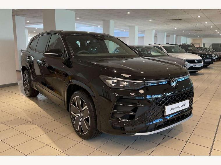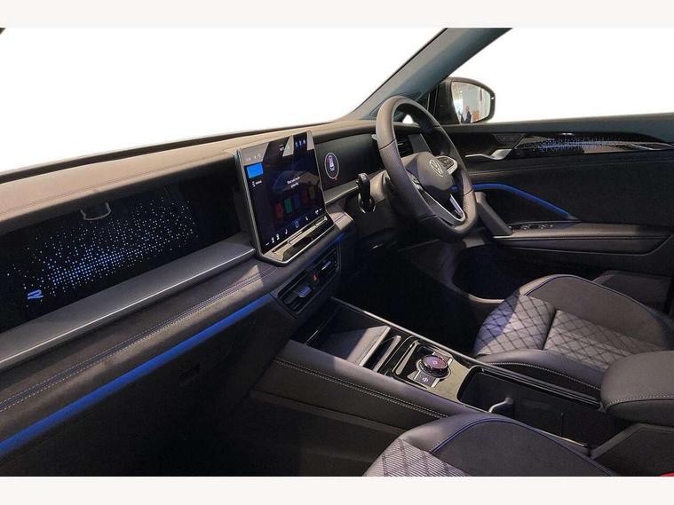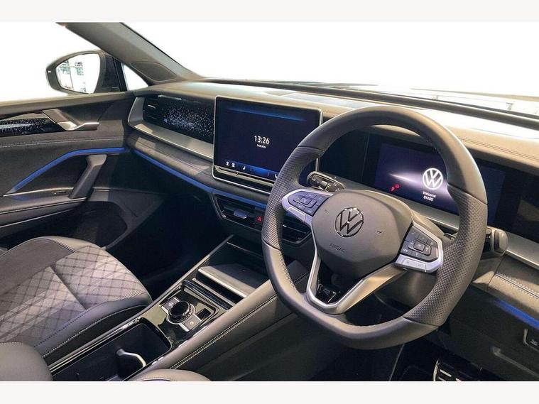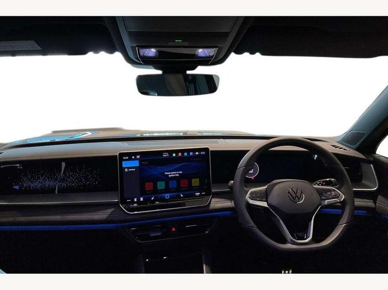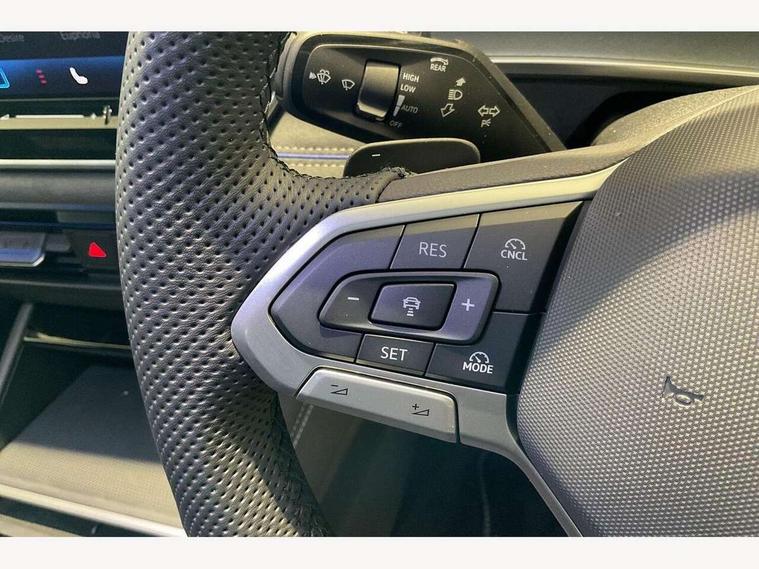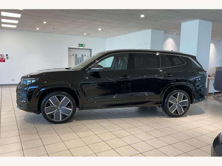 Adaptive cruise control (ACC), Digital Cockpit Pro - 10.25" high resolution dash display screen with customisable menus and information, Driver alert system, Driver attention monitoring system, Driving profile selection, Dynamic road sign display, E-Sim card for online connectivity, Easy Open and Close Electric tailgate with virtual pedal activation, eCall emergency call system, IDA voice assistance with ChatGPT, Lane change system, Side assist, Rear traffic alert and Exit warning system, Lane keeping system, Multifunction front facing camera, Navigation system, Oncoming vehicle braking when turning including swerve support, Park assist plus with park distance control, Power assisted steering with speed sensitive, Sports steering system, Start/stop system with regenerative braking, Voice activation spoken voice commands for telephone and navigation system, Warning signal and warning light for front and rear seatbelts not fastened, Wireless App-Connect, Front shock absorption G01, Front wheel drive, 12.9" infotainment display, Digital radio reception (DAB), Diversity antenna for FM reception, Air intake with Chrome trim, Auto dimming interior rear view mirror, Automatic headlight control system, Body colour door handles, Chrome moldings on the side windows, Coming/leaving home lighting function, Dynamic headlight range control with dynamic cornering light, Exterior mirrors convex on the left and aspherical on the right, Heat insulating glass in side and rear windows, High Beam Assist, automatic sensing for switching between dipped and main beam, Illuminated Volkswagen logo in front and rear, Laminated safety glass windshield, heat insulating, LED 3rd brake light, LED headlamps, LED separate signature day time running light, Poor weather light, Puddle lights, Rain sensor windscreen wipers, Rear combination lamps with special signal pattern, Rear fog light on one side, reversing light on both sides, Rear side wing doors, Rear wiper, Reverse activated passenger's door mirror, Sound insulating laminated safety glass from B-pillar backwards 90% tinted, Surround lighting with welcome light, Volkswagen logo in front, illuminated lighting animation with wake up/goodbye scenario and illuminated door handles, 12V outlet in center console rear and in luggage compartment, 12V socket in centre console, 2 USB-C ports in the front, 2 USB-C charging sockets on the centre console in rear, charging capacity up to 45 W, 230V socket in luggage compartment, 3 rear headrests, 3 rear seat bench in 2nd row, backrest split folding with centre armrest and 2 seats in 3rd row of seats, 3 zone air care climatronic with rear air conditioning control panel, 30 colours options interior ambient lighting, Art velours cloth upholstery, Black roof lining, Brushed stainless steel pedals, Carpet mats, front and rear, Centre console with illuminated storage compartment with sliding cover and two drinks holders, Chrome elements on the mirror switch and power window switches and door pulls, Door and side trim panel insert in Art velour, Drivers seat with manual adjustment of seat travel and height and backrest angle with thigh support longitudinally sliding, Flat luggage compartment floor, Front centre armrest, Front massage seats, Front scuff plates in aluminium, Inductive smartphone charging, ISOFIX anchors for child seats on outer rear seats and front passenger seat compatible with i-Size, Leather wrapped multifunction heated steering wheel with paddle shift, Manual height adjustable front passenger seat, Mechanical rear seat release, Power adjustable lumbar support in front, Safety optimised front integrated head restraints, Single front passenger seat, Sports comfort seats in front, Sun visors with illuminated vanity mirrors, Touch control steering wheel, 3 Point seat belts in front with pretensioners, 3 point seatbelts in outer rear with ECE label, Autonomous emergency braking front assist with pedestrian and cyclist monitoring, Driver and front passenger airbag with front passenger airbag deactivation, Electronic parking brake with auto hold, First aid kit with warning triangle and safety vest, Front and rear curtain airbags, Front and rear side airbags, Front centre airbag, Hill start assist, Manual rear child locks, Proactive passenger protection system, Two tone horn, Tyre pressure monitoring system, Alarm with interior protection, Central locking system keyless entry, Decorative material set R-Line, Interior door handle in matte chrome,