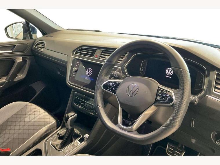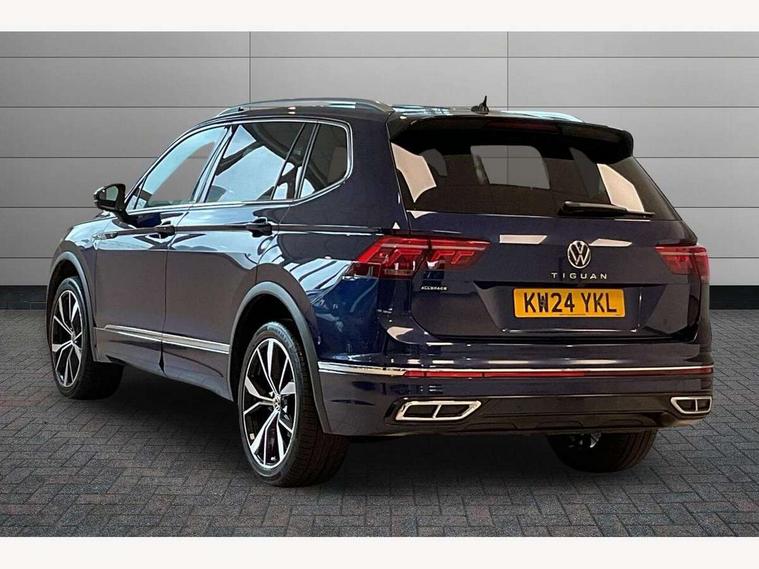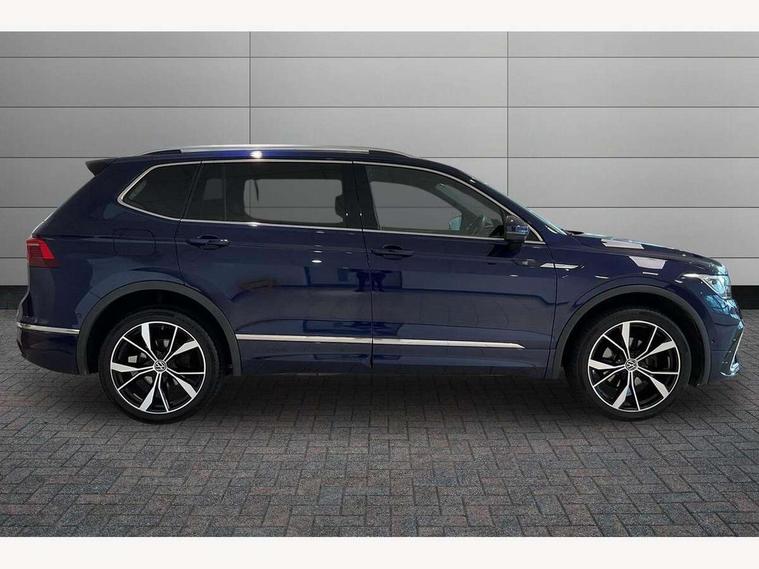 Adaptive cruise control, Advanced driver attention and drowsiness monitor, App-Connect, Digital cockpit pro, Driver profile selection, eCall emergency call service, Electric boot lid, Lane change assist, Lane keeping system Lane Assist, Mobile phone interface comfort with inductive charging feature, Multifunction front facing camera, Progressive steering, Speedo and rev counter, electronic odometer, trip, service interval display and exterior temperature gauge, Diesel particulate filter, Front wheel drive, Start-stop system with battery regeneration (recuperation - energy recovery during braking), 2 USB-C ports in the front, 1 USB-C charging socket on the center console in the rear, DAB Digital radio, Diversity antenna for FM reception, Auto dimming interior rear view mirror, Automatic headlight control system, Chrome mouldings on side window, Coming/leaving home lighting function, Exterior badge deletion, Rain sensor, Rear fog light, Rear side wing doors, Rear spoiler in R style, Rear wiper, Silver roof rails, Third brake light, 12-volt outlet in centre console rear and luggage compartment, 12V socket in centre console, 3 head restraints in rear, 3 individual folding 2nd row seats, 3rd row 2 individual seats, Air Care Climatronic 3 zone automatic climate control with enhanced air filter and controls in the rear, Black roof lining, Door and side trim panel with leatherette insert, Drawers under front seats, Driver + front passenger lumbar support, Driver and front passenger seat height adjustment, Foldable front passenger seat backrest, Front + rear carpet mats, Front centre armrest, Front footwell illumination, Illuminated scuff plates, ISOFIX anchorage points for mounting 2 child seats on rear seats and i-Size child seats, Leather gearshift handle, Leather wrapped multi function sports steering wheel with touch control and shifting paddles, LED interior light with switch off delay/dimmer and 2 front/rear LED reading lights, Stainless steel pedals, Sun visors with illuminated vanity mirrors, Top comfort sports seats in front with 'R' Logo, Ambience pack - Tiguan Allspace R Line, Driver assistance plus package - Tiguan Allspace, Park assist pack - Tiguan Allspace, 3 point seat belt for centre rear seat, 3 rear three point seatbelts, ABS+EBD+Brake assist, Driver and front passenger safety-optimised head restraints, Driver's and front passenger's airbag with front passenger's airbag deactivation switch, Electronic parking brake, Electronic Stability Control (ESC) inc EDL (Electronic Differential Lock) and ASR (Traction Control), Height adjustable front 3 point seatbelts + pretensioners, Manual rear child locks, Pedestrian monitoring, Rear disc brakes, Side airbag in front and rear with curtain airbag, Two tone horn, Warning buzzer for seatbelts if unfastened, Anti theft alarm system with interior monitoring, backup horn and towing protection, Anti-theft wheel bolts, Remote central locking with 2 remote folding keys,