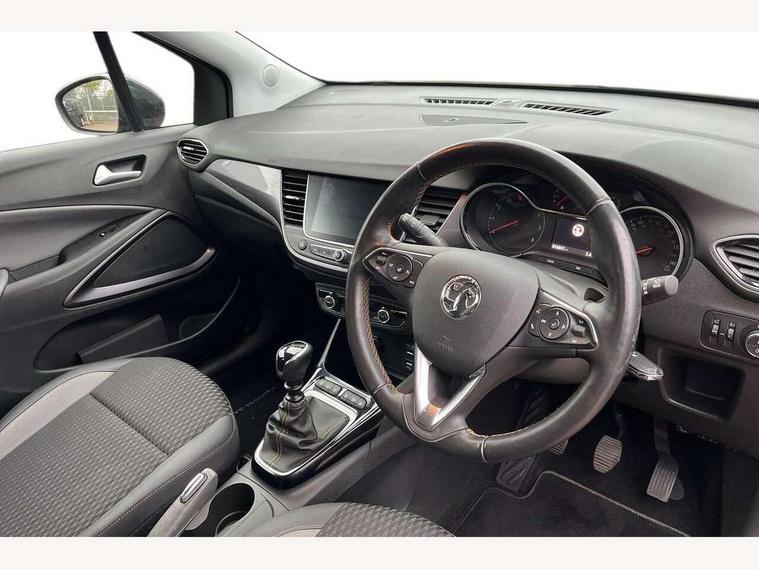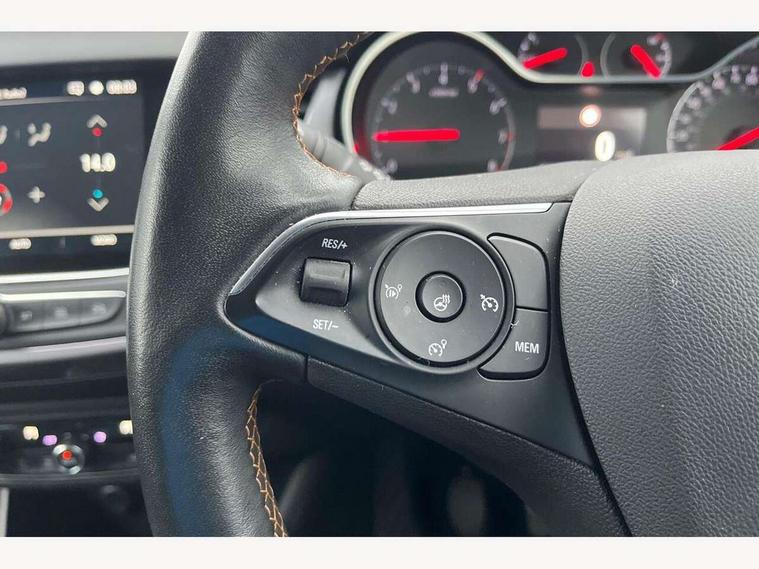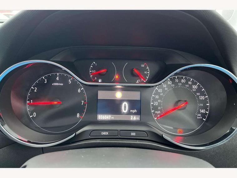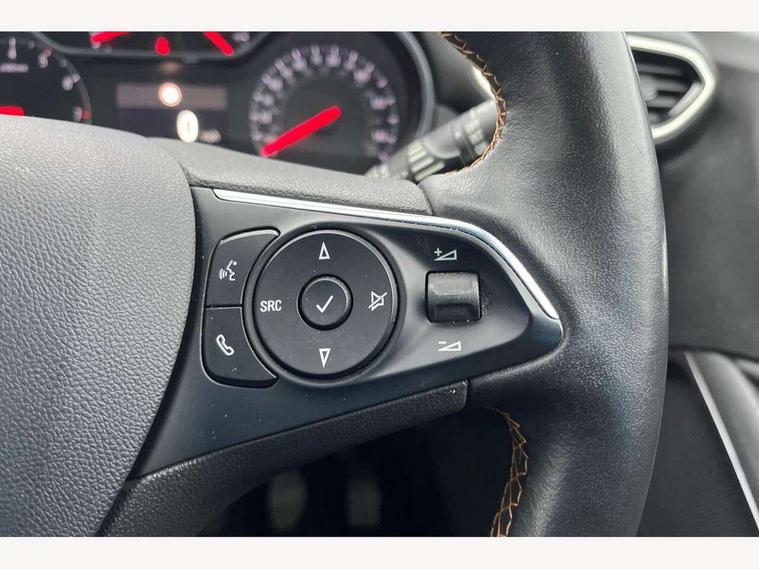 3.5" colour information display, Audible lights on warning, Cruise control + speed limiter, Digital clock, Front camera system, Lane departure warning system, Low fuel level warning light, Multi function trip computer, Nav 5.0 Intellilink sat nav system + 8" colour touchscreen+DAB radio+RDS traffic programme+2 USB+bluetooth audio streaming+Apple CarPlay/Android auto, Outside temperature display, Rev counter, Service interval indicator, Speed sensitive power steering, Traffic sign recognition, Vauxhall connect including Ecall and connected services, Voice control system, 6 speakers, Steering wheel mounted audio controls, Wi-Fi hot spot, 2 speed wipers/wash wipe/intermittent wipe, Alloy effect front and rear skid plates, Auto dimming interior mirror with anti-dazzle function, Automatic lighting control, Body colour door handles, Chrome effect bar on front grille, Chrome side window trim, Dark tinted rear windows, Door to door illumination, ecoLED daytime running lights, EcoLED headlamps, Electric front/rear windows with one touch, Electrically adjustable and heated door mirrors, Front fog lights, Hazard warning lamps, Headlamp levelling, Heated rear screen with timed cut off, Intermittent rear wash/wipe, Manually foldable door mirrors, Rain sensitive windscreen wipers, Rear fog lights, Rear spoiler, Side protection mouldings, Side window demist vents, Solar glass windscreen, Tunnel detection for auto light control, Welcome lighting, Windscreen demist vents, 12V power point front, 3 spoke leather covered steering wheel with satin chrome effect bezel, Active carbon filter, Air filter, Anti submarining front seats, Carpeted loadspace, Centre console with storage/cupholders, Chrome interior door handles, Driver's centre armrest, Driver/passenger sunvisors with illuminated vanity mirrors, Dual zone electronic climate control, Flex floor multi-level adjustable load compartment, Front door pockets with bottle holders, Front map reading lights, Front seat back storage pockets, Glovebox with lid, Height adjustable front/rear head restraints, Illuminated load area, Interior courtesy light operated by all doors, Isofix system on outer rear seats, LED ambient lighting, Luggage compartment cover, Odour filter, Passenger assist handles, Pollen filter, Reach + rake adjustable steering column, Rear door pockets with bottle holders, Rear reading lights, 3x3 point rear seatbelts, ABS, Child locks on rear doors, CSC - Cornering stability control, Deformation zones front and rear, Driver/Front Passenger airbags, EBD + Brake Assist, Energy absorbing steering column, ESP + traction control, Front and rear outer seat belt pre-tensioners, Front and rear seatbelt reminder, Front seat side impact airbags, Full size curtain airbags, Hill start assist, Passenger airbag deactivate switch, Reinforced passenger safety cell, Seatbelt load limiter, Side impact protection beams, Tyre pressure monitoring system, 2 remote folding keys, Engine immobiliser, Locking wheel nuts, Remote central deadlocking, Remote central locking + deadlocks, Remote security alarm system, Black door panels with medium grey premium leather effect inserts, Infotainment surround in piano black, Tioga grey inserts on facia and door panel, 17" Multi spoke diamond cut alloy wheels in technical grey,