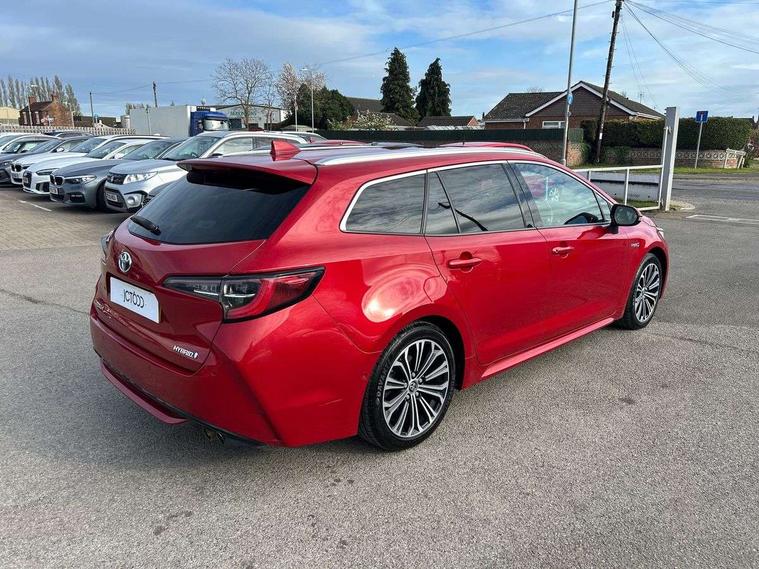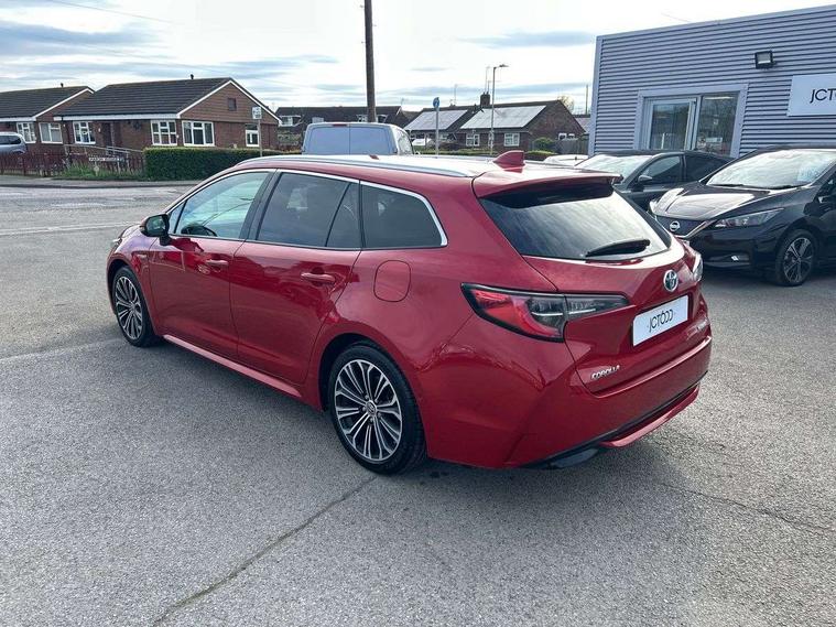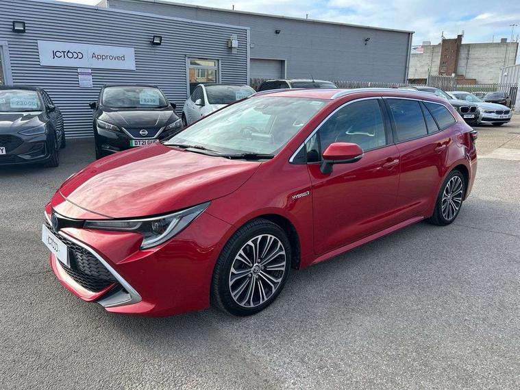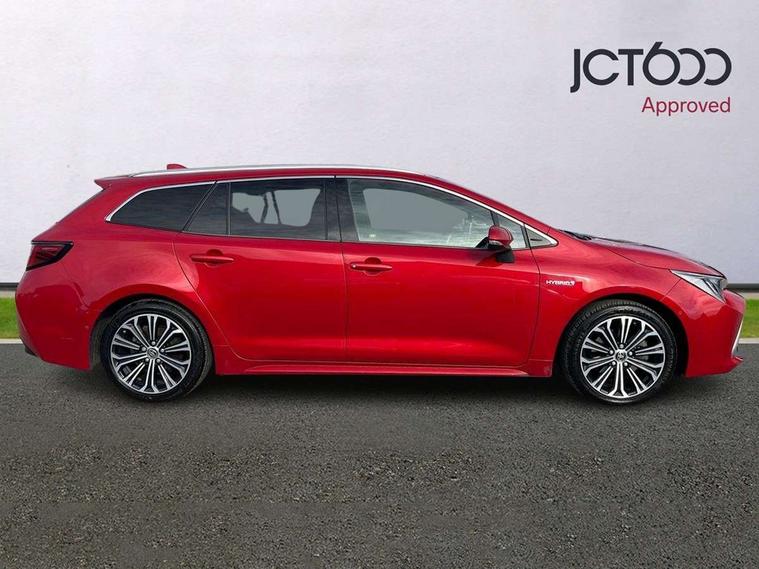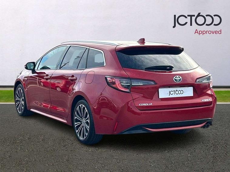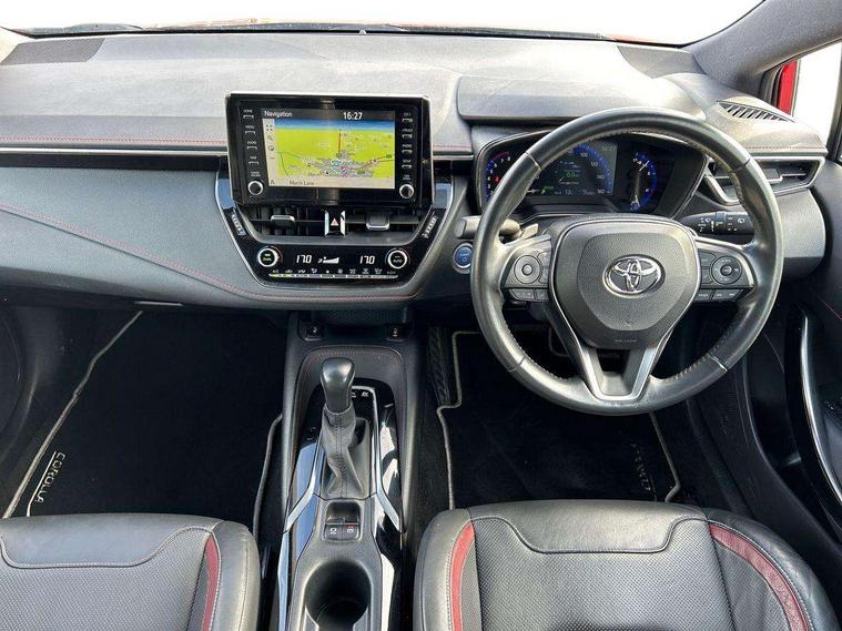 Bluetooth telephone connectivity, E-call, Electrically assisted power steering, Intelligent park assist, Kick sensor for power tailgate, Push button start, Reversing camera, Smartphone integration with Apple CarPlay and Android auto, Speed limiter, Voice activation, Vehicle Stability Control (VSC), 2 ring combimeters with 7" colour TFT screen, 6 speakers, 8" multimedia and back monitor, AM/FM radio, DAB Digital radio, Toyota touch 2 with go navigation system, USB and Aux in connectors + 12V front outlet, Anti-jam protection on power windows, Auto dimming inside rear view mirror, Auto up and down function on all power windows, Automatic folding mirrors, Automatic headlights, Bi-LED headlights with LED lightguide, Body coloured bumpers, LED daytime running lights, LED front fog lights, LED rear combi lights with LED lightguide, Power adjustable heated door mirrors, Power front windows, Power rear windows, Privacy glass, Rain sensing wipers, Rear window wiper, Reverse tilting door mirrors, Shark fin antenna, 12v power outlet - luggage side, 3 rear headrests, 3 spoke leather steering wheel + gear knob, Clean air filter, Dual zone automatic air conditioning with ECO mode switch, Front head restraints, Full leather upholstery, Heated seats, Interior illumination, ISOFIX seat fixing (2 fixings on rear outer seats), Pollen filter, Power lumbar support, Sports seats, Steering wheel switches, Tilt/telescopic steering column, WIL - Whiplash Injury Lessening seats, Parking pack - Corolla, Toyota safety sense 2 pack - Corolla, 3x3 point rear seatbelts, Adjustable front driver seat belt extender, Anti lock braking system + Electronic brake force distribution, Brake assist function, Electronic parking brake, Front passenger airbag on/off switch, Front seatbelt reminder, HAC-Hill-start Assist Control, Rear seat belt reminder, Seatbelt pretensioners and force limiters, Supplemental restraint system (SRS) 7 airbags - dual driver, dual side curtain, side impact and driver knee airbags, Traction control, Tyre pressure warning system, Alarm/immobiliser, Remote central locking + deadlocks, Smart entry, 17" alloy wheels, Tyre repair kit,