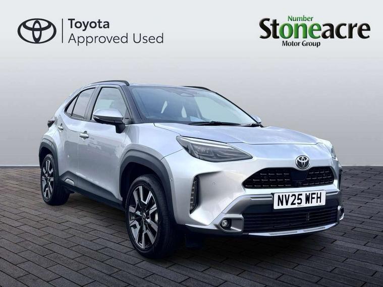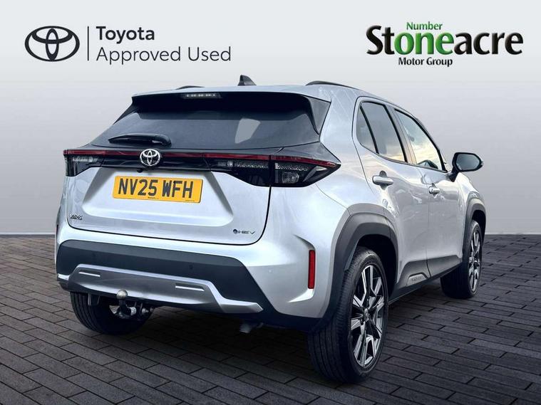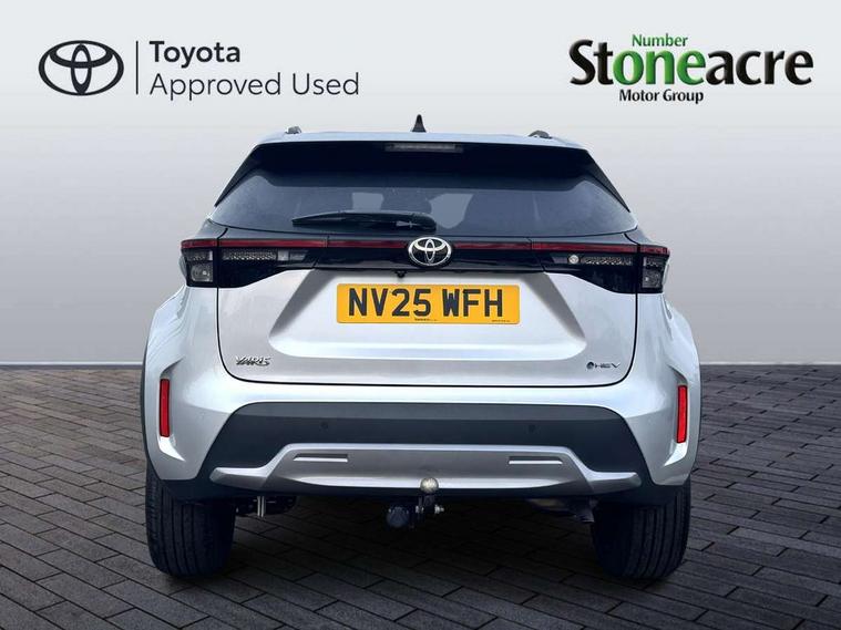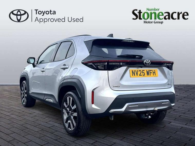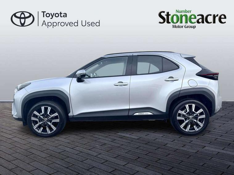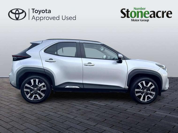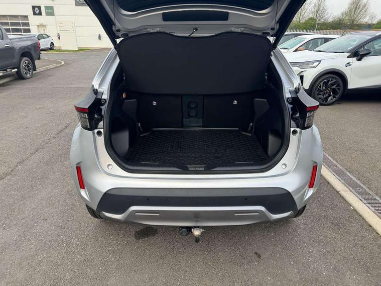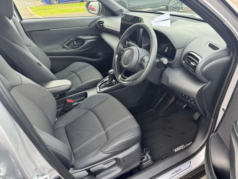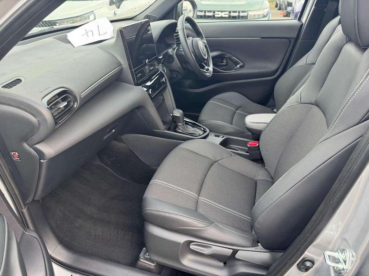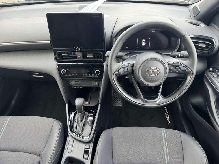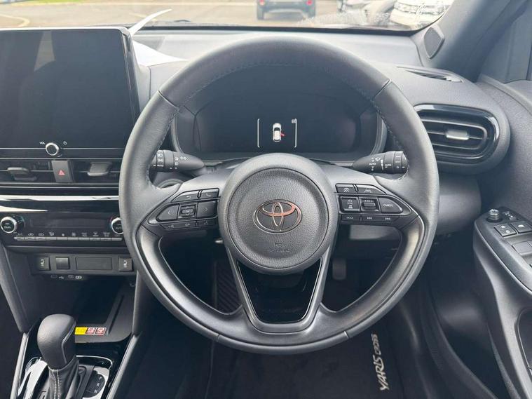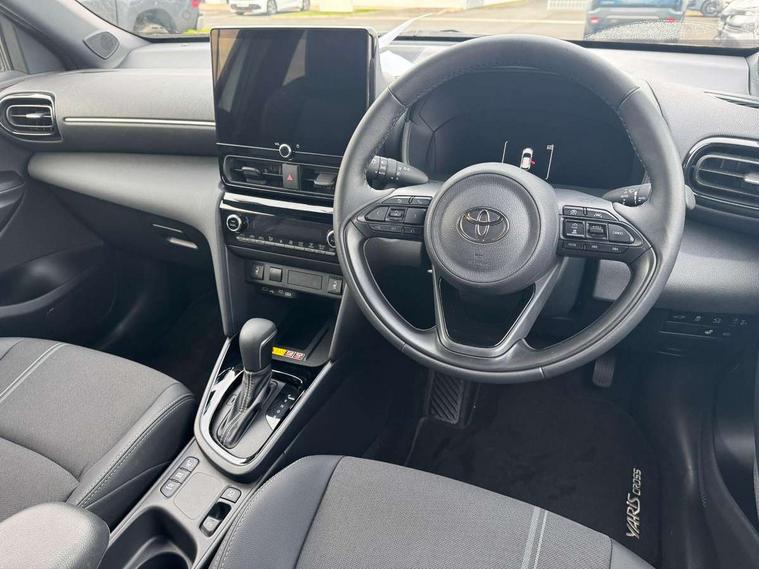 10.5" Multimedia display screen, 10.5" Toyota smart connect+ with navi multimedia system with wireless Smartphone integration incl Apple CarPlay, 360 degree panoramic view monitor, 7" Multi information display screen, Adaptive cruise control, multi info switches on steering wheel, Adjustable speed limiter, Advanced parking assist, Blind spot monitoring, Bluetooth connectivity, Color multi-information display, Digital speedometer, Digital tachometer, Drive mode selector, Driver attention alert system, Dynamic guide lines on reversing camera, eCall emergency system, Electric power steering, Emergency driving stop system, Full range intelligent adaptive cruise control, Hybrid system indicator, Intelligent front and rear parking sensors with clearance sonar and automatic braking, Intersection turn assist, Key reminder warning, Lane change assist, Lane trace assist, My T Connected services, Power tailgate, Pre-collision system enhanced with emergency steering assist, Rear cross traffic alert, Remote boot door release in cabin, Road sign assist - RSA, Safe exit assist, Tailgate, Telephone switch on steering wheel, Wireless Mobile Phone Charger, Steering assisted vehicle stability control, 6 speakers, DAB Digital radio, Front USB Type-C connector, Front USB-C device charger, Acoustic windscreen glass, Anti-jam protection on power windows, Auto dimming rear view mirror, Auto high beam [AHB] with on/off switch, Auto intermittent windscreen wipers, Automatic headlights, Automatic headlights cut-off, Automatically retractable door mirrors, Black door moulding, Black lower front grille, Black protection moulding on side doors, Black roof rails, Black wheel arch mouldings, Body colour door handles, Body colour front bumper, Body colour rear bumper, Electric adjustable heated door mirrors, Follow me home headlights, Front and rear electric windows with auto up/down function, Gloss black upper front grille, Headlight cut off reminder, Indicators integrated on door mirrors, Intermittent rear wiper, Kick activated power back door, LED 3rd brake light, LED daytime running lights guide, LED front fog lights, LED front light guide, LED Indicators, LED projector headlights, LED rear lights with sequential indicators, Manual headlight levelling, Meshed shape upper front grille, Noise reduction layer on windscreen, Pre wiring for towing hook, Privacy glass, Rain sensor, Rear roof spoiler, Rear side wing doors, Rear window defogger, Shark fin antenna, 12v power outlet - front, 12V power point in boot, 2x Rear coat hooks, 3 seat bench in 2nd row, 3 spoke leather steering wheel, 40/60 split deckboard, 40:20:40 split folding rear bench seat, Adjustable rear headrests, Adjustable speed limiter switch on steering wheel, Boot light, Central armrest, Driver and front passenger personal lights, Driver and front passenger Whiplash injury Lesseing seats, Driver and passenger seatback pockets, Dual zone automatic air conditioning, Fabric door trim, Front console box, Front cup holders, Front door pockets, Front head restraints, Front sport seats, Front/rear assist grips, Gear shift indicator, Grey roof lining, Heated driver and passenger seats, Heated steering wheel, Height adjustable driver's seat, Height adjustable front passenger seat, Hooks for luggage holding belts, ISOFIX child restraint system, Lane departure alert switch on steering control, Leather gearshift, LED centre room light, Light on driver and passenger sun visor, Manual telescopic and tilting steering wheel, Mirror on driver and passenger sun visor, Nanoe-X air purifier, Partial synthetic leather upholstery, Pollen air filter, Power adjustable lumbar support on driver seat, Rear cup holders, Rear door pockets, Rear head restraints, Remote air-conditioning system, Single compartment glovebox, Single front passenger seat, Soft tonneau cover, Storage box under boot floor, Voice recognition switch on steering wheel, White ambient lighting in centre console, White ambient lighting in footwell, White ambient lighting on front doors, Yaris cross floor mats, Tech pack - Yaris Cross, 3x3 point rear seat belts, ABS+EBD+Brake assist, Downhill Assist Control (DAC), Driver and passenger central airbags, Driver and passenger front airbags, Driver and passenger side airbags, Electronic parking brake, Emergency brake light system (EBS), Front seat belt reminder, Hill start assist control (HAC), Passenger airbag on/off switch, Pre-collision system with pedestrian and cyclist detection, Rear door child safety locks, Rear passenger side airbags, Rear seat belt reminder, Traction control, Tyre pressure warning system, Immobiliser, Intrusion alarm, Keyless smart entry with push button start, Power door locks, Power passenger window lock, Remote door lock, Gloss black side air vent surrounds, Tyre repair kit,