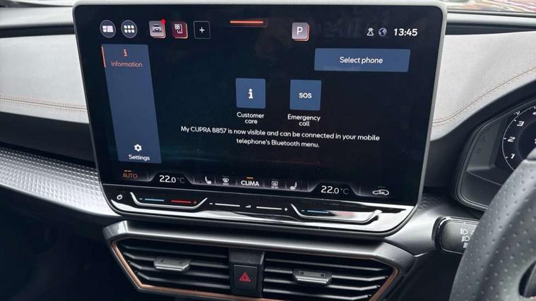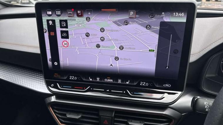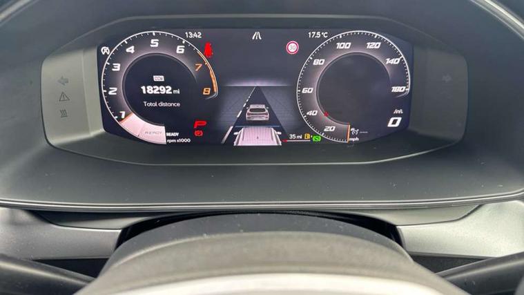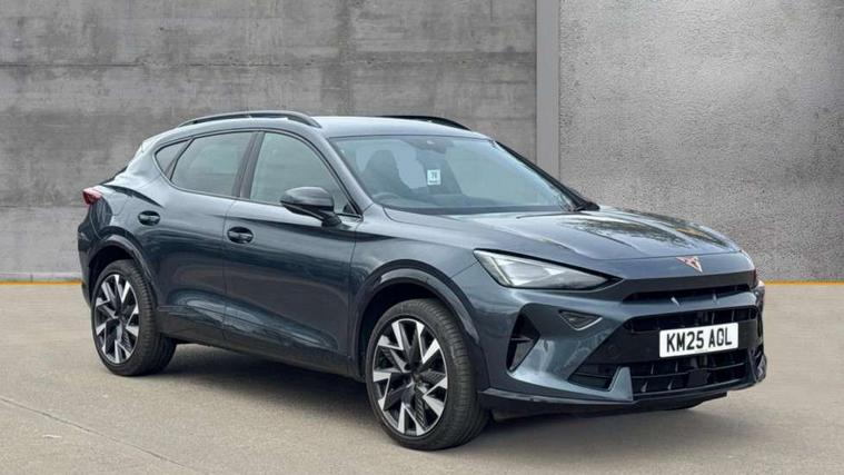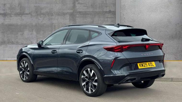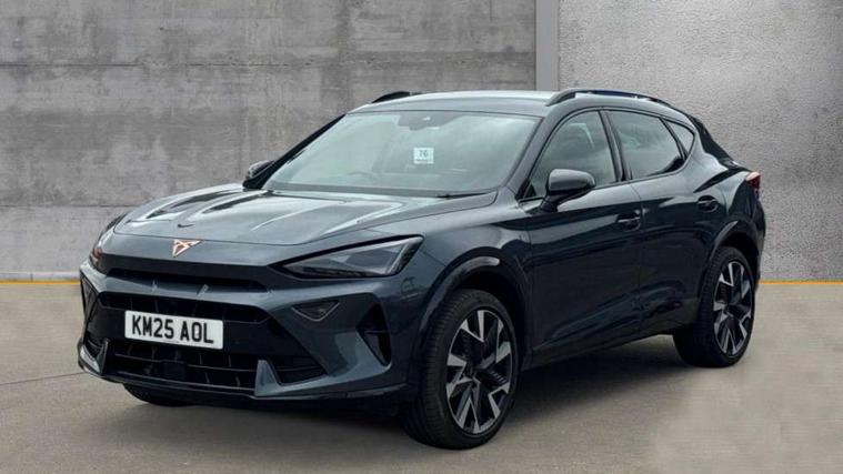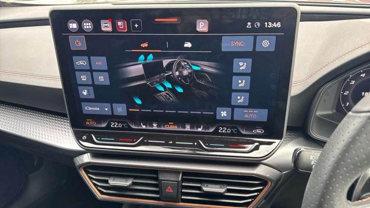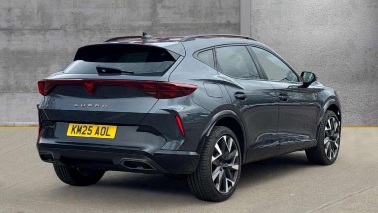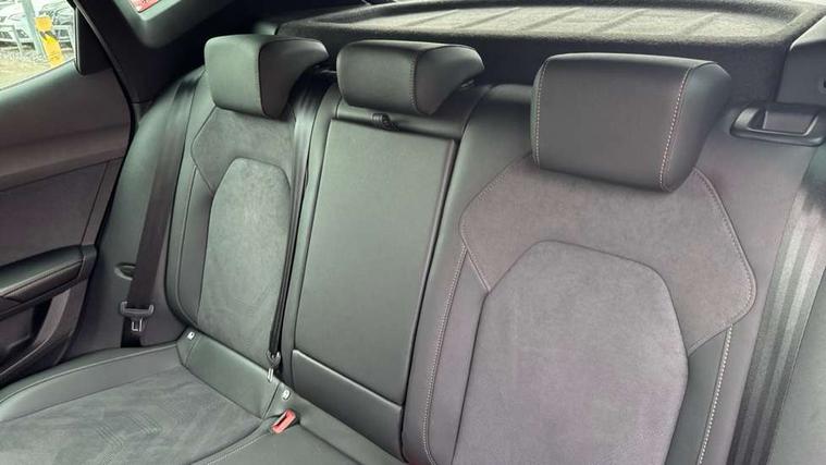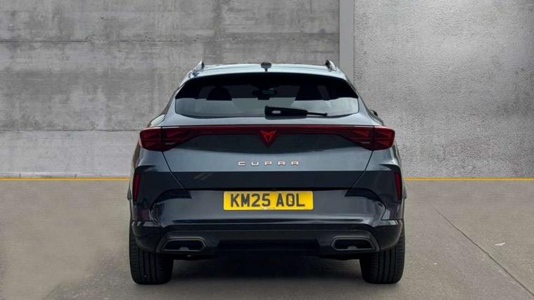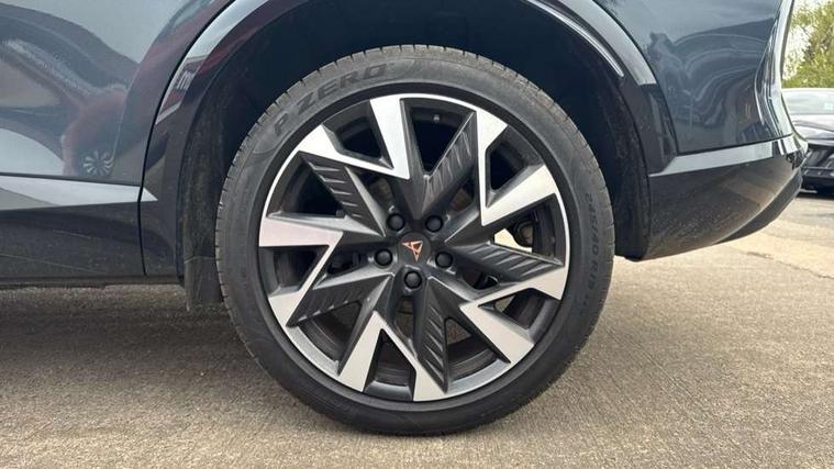10.25" digital cockpit and configurable dashboard, Adaptive cruise control with follow-to-stop and speed limiter, Advanced driver alert system, Driving profile selection, Dynamic road sign display, Emergency steering support with turn assist, Forward collision warning with automatic braking, Front and rear parking sensors, Full link phone integration, Lane assist, Progressive steering, Rear view camera, RPM, trip computer, outside temp gauge, instrument light brightness, low fuel warning light, lights on reminder, gearshift indicator, Service interval indicator, Start/stop system with regenerative braking, Virtual pedal and electric tailgate, Voice control system, Wired Android Auto, Wireless apple carplay, Wireless phone charger, CUPRA sport suspension, Electronic locking differential and dynamic traction support, 2 front and 2 rear USB type C sockets, Media system with navigation, 12.9" touchscreen display, voice control, DAB, steering wheel mounted controls, Auto dimming rear view mirror, Body colour door handles, Body coloured bumpers, Dark grey wing mirror, Daytime running light with automatic headlight control and coming home feature, Door panel ambient lighting, Dynamic headlight range control, Electric front/rear windows, Electrically adjustable heated and folding door mirrors with memory function, Gloss black roof rails and window surrounds, High beam assist, LED 3rd brake light, LED front fog lamps with cornering function, LED Headlights, LED Taillights with dynamic indicator, Rain sensing wipers, Rear diffuser with black simulated exhaust pipes, Rear fog lights, Rear side wing doors, Rear wash/wipe, Tinted rear windows, Welcome lights (within exterior mirror housing), 12V socket, 2 front and 2 rear reading lights, 3 seat bench in 2nd row, 60/40 split rear bench seat with armrest and mechanical seat release, Black headlining, Black interior roof lining, Cupra sports pedals, Dust/pollen filter, Electrically adjustable driver's seat with memory and lumbar support, Front and rear head restraints, Front centre armrest, Heated front seats, Heated supersports multifunction leather steering wheel with satellite buttons and gear shift paddles, Height/reach adjust steering wheel, Illuminated aluminium doorsteps, Illuminated interior front door sills, Illuminated sunvisor with mirror, Isofix, Leather dashboard, door insert and side trim panel, LED smart wraparound lighting, PVC/Dinamica microfiber upholstery + bucket seats, Satellite steering wheel, Single front passenger seat, Storage pockets on rear of front seats, Three zone climate control with control panel in rear, Variable luggage/load compartment floor, 3 point seatbelts on all rear seats, ABS, Brake control system - ESC and brake booster, Child proof door locks, Driver and front passenger airbags with front passenger airbag de-activation, Electronic parking brake, Front and rear disc brakes, Front side curtain airbags, Hill hold control, Public e-call, Seat belt reminder for front and rear seats, Tyre pressure monitoring system, Anti theft alarm system, KESSY Advanced - Keyless start, keyless entry with SAFELOCK, Locking wheel bolts, Copper and aluminium interior detailing, 19" Sandstorm machined sport black and silver alloy wheels,
