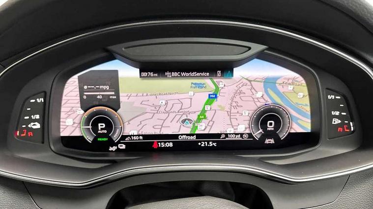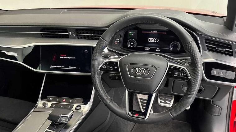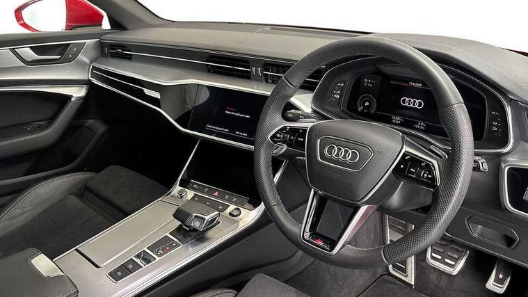 7" high resolution colour driver information display system, Audi connect safety and service (e-call), Audi connect with Amazon Alexa Integration, Audi drive select, Audi parking system plus - acoustic and visual park assist system for front and rear, Automatic start/stop system with coasting functionality, Bluetooth interface, Electric boot lid release, Lane departure warning system, Progressive steering, Rear view camera, Service interval indicator, Smartphone interface includes wireless Apple carplay/Android Auto, Voice control system, 3 pin 10 amp domestic charging cable, 52 litre fuel tank, 7.4 kW onboard charger, Hybrid propulsion system, Quattro on demand, Sports suspension, Type 2 mode 3 32 amp charging cable, Type 2 socket for AC charging, Audi front music interface, Audi sound system, Auxiliary input socket, DAB Digital radio, USB connection, Body coloured door mirrors, Electric front/rear windows, Frameless auto dimming interior rear view mirror, Front intermittent wipers, Headlight washers, Heat insulating darkened glass in side and rear windows, Heat insulating glass in windshield, LED signature front daytime running light, LED third brake light, Matrix LED headlights, Matt black side air intake grille with inlay in matt aluminium, Privacy glass, Radiator grille in anthracite black matt, single frame in chrome and horizontal struts in matt aluminium silver, Rain and light sensors, Rear side wing doors, Rear wiper, S line air inlet design with inlay in matt aluminium, S Line badge on front fender, S Line front and rear bumpers, S line rear diffuser and grille in matt black with matt aluminium tailpipes, S Line side skirts, Signature rear LED light design, 4 way electric lumbar support for driver and front passenger, 4 zone deluxe automatic climate control, 40/20/40 split folding 3 rear seat bench in 3 parts with rear centre armrest, Black cloth headlining, Black steering wheel insert, Electrically adjustable front seats with driver memory, Front centre armrest, Front head restraints, Heated front seats, Height/reach adjust steering wheel, Illuminated door sill trims with S logo, Illuminated sun visors with vanity mirrors, ISOFIX child seat mounting and Top Tether with front passenger airbag deactivation, Leather gear knob, Perforated leather steering wheel with contrast stitching, Rear headrests, S line front and rear black carpet floor mats with contrast stitching, Single front passenger seat, Stainless steel pedals and foot rest, LED Interior Ambient Lighting Pack - A6, Non smoking pack - A6, Technology pack - A6, 3 point seatbelts on all seats, Airbags - Front side, front and rear including head, Audi pre-sense front, Black seatbelts, EBD - Electronic brakeforce distribution, Electromechanical parking brake, Electronic Stability Control (ESC) including ABS, ASR and EDL, Extended pedestrian protection measures, Manual child proof rear door locks, Seatbelt monitoring, Tyre pressure warning light, Warning triangle and first aid kit, Anti theft alarm with tow away protection, Anti-theft wheel bolts and wheel loosening detection, Immobiliser, Keyless Go, Remote central locking, Matt brushed aluminium dark inlays, Tool kit, Tyre repair kit,