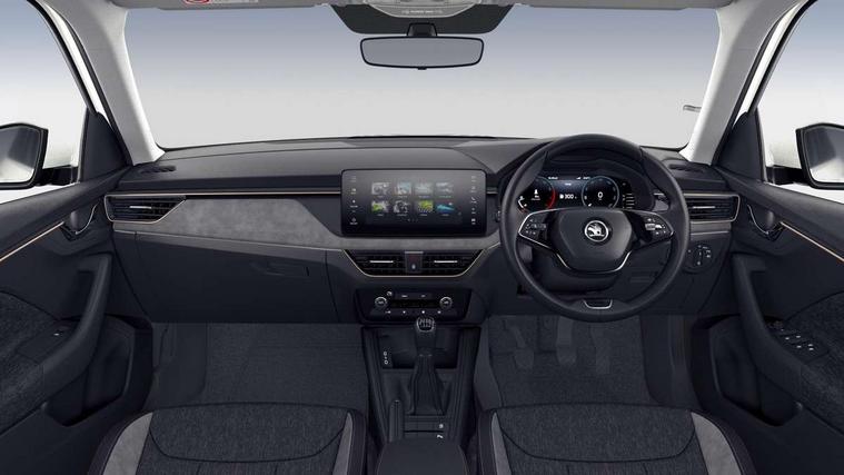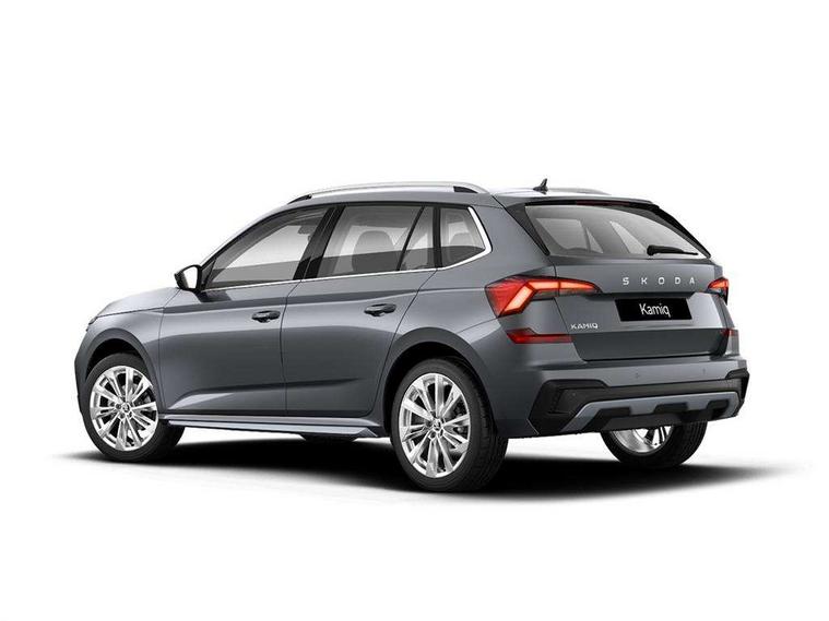 Advanced driver attention and drowsiness monitor, Bluetooth system, E-call, Front assist system, PAS, Rear parking sensors, Rear view camera, Service indicator, Speed limiter, Traffic sign recognition, Virtual cockpit with 10.25" display, Voice control system, Wireless smartlink, 4 USB C ports, 8 Speakers, 9.2" Skoda navigation display, DAB Digital radio, Auto dimming rear view mirror, Automatic headlight control with coming home and leaving home feature, Body colour bumpers, Body colour door mirrors and handles, Chrome grille surround, Chrome roof rails with chrome window surround, Front and rear electric windows, Heated rear window, LED daytime running lights, LED high beam, LED low beam, LED third brake light, Light sensors, Privacy glass, Rear side wing doors, Rear wiper, Ticket holder inside windscreen, 12V socket in luggage compartment, 3 seat bench in 2nd row, Accent black door inserts, Ambient lighting in white/red, Cargo elements, Chrome inner door handles, Copper hotstamping, Driver and passenger sun visors with vanity mirror, Dual zone climate control, Front and rear roof lights, Front centre armrest, Front head restraints, Glove compartment with illumination, Height adjustable driver seat, Height adjustable front passenger seat, Ice scraper, Inner circulation control with pollen filter, ISOFIX on front passenger seat, Isofix preparation for back seats, Leather gearknob and handbrake lever, Lodge cloth upholstery, Manual lumbar support for front seats, Net package and top tether hooks in boot space, Net under rear shelf, Overhead glasses storage compartment, Pocket on the back of both front seats include mobile phone pockets, Rake/reach adjustable steering wheel, Reading lights, Rear centre armrests, Single front passenger seat, Suedia grey decor inserts, Textile floor mats, Third rear headrest, Top tether for front passenger seat, Umbrella in driver's door, Convenience pack - Kamiq, 3x3 point rear seatbelts, Airbags - driver and front passenger, Disc brakes, ESP, Extended and predictive pedestrian/cyclist protection, Front passenger airbag deactivation switch, Front side airbags with curtain airbags, Hill hold control, Manual leather parking brake, Manual rear child locks, One tone horn, Seatbelt reminder for driver an co-driver, Traction control, Tyre pressure monitor, Anti-theft alarm system with interior monitoring, backup horn, towing protection and remote central locking with SAFE system, Anti-theft wheel bolts, Electronic engine immobilizer,