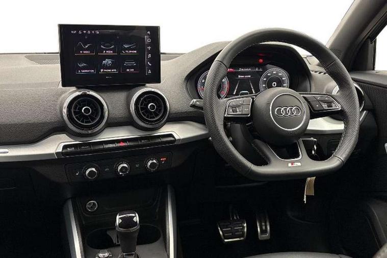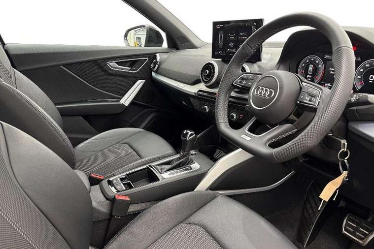 3D map display, Audi connect navigation and infotainment includes innovative services, Audi connect remote and control connects your vehicle to your smartphone, Audi drive select: S tronic - power steering assistance + engine + gearshift (modes: comfort, auto, dynamic, efficiency, individual), Audi smartphone interface - Apple carplay/Android Auto, USB connect, 2xSDXC card readers, voice control for navi, telephone, music and 3rd party apps, Audi virtual cockpit, Automatic start/stop system with recuperation, Bluetooth interface includes bluetooth audio streaming, Camera based traffic sign recognition, Cruise control, Distraction and Fatigue warning, E-call, Jukebox hard drive memory for music (10GB), Lane departure warning, MMI navigation plus with 8.8" touchscreen, Natural voice recognition, Power operated tailgate, Progressive steering, Rear parking sensors, Sport suspension, 6 passive loudspeakers, DAB Digital radio, USB type C port, Audi beam, Auto dimming rear view mirror, Black window trims, Bumper in full body colour paint finish, Electrically adjustable, folding, auto dimming and heated door mirrors with integrated LED side indicators, Front windscreen with grey tinted sunband, LED daytime running lights, LED headlights with dipped beam, high beam, position lights, indicators, LED rear lights, LED third brake light, Privacy glass - dark tinted rear and rear side windows from B-pillar backwards, Rear side wing doors, Rear wiper, Variable front intermittent wipers, Wheel arch trims in manhattan grey, 12V socket in front, 3 seat bench in 2nd row, 3 spoke flat bottomed multi-function leather sport steering wheel with gear shift paddles, 4-way electric lumbar support for front seats including manual seat height adjustment for both front seats, 60/40 split folding rear seat bench, Black carpets, Black cloth headlining, Front and rear head restraints, Front centre armrest, Front sport seats, Front/rear floor mats, Height/reach adjust steering wheel, Illuminated door sill trims with S logo, ISOFIX child seat mounting in front passenger and rear outer seats, Manual air conditioning, Single front passenger seat, Stainless steel pedals, Black styling pack - Q2, 3x3 point rear seatbelts, 6 airbags - Front, curtain and front side airbags, Electromechanical parking brake, Electronic stabilisation control including ABS, ASR and EDL, Front passenger airbag deactivation, Hill hold assist, Pre-sense front with pedestrian recognition, Seatbelt monitoring, Tyre pressure warning light with visual and acoustic warning, Warning triangle and first aid kit, Anti theft wheel bolts, Electronically operated child locks, Remote central door locking, Thatcham category 1 alarm, Aluminium interior element, Black dashboard, Gloss black centre console, Matt brushed aluminium trim inlays, Tool kit,
