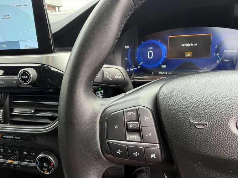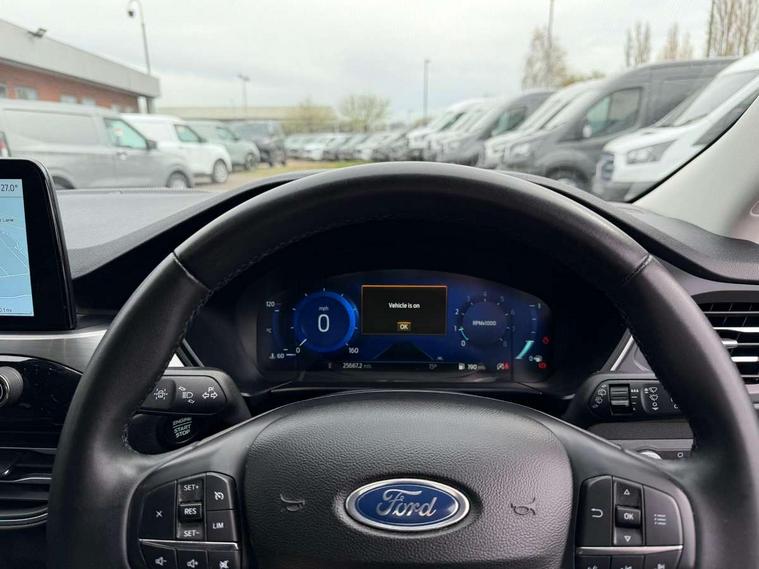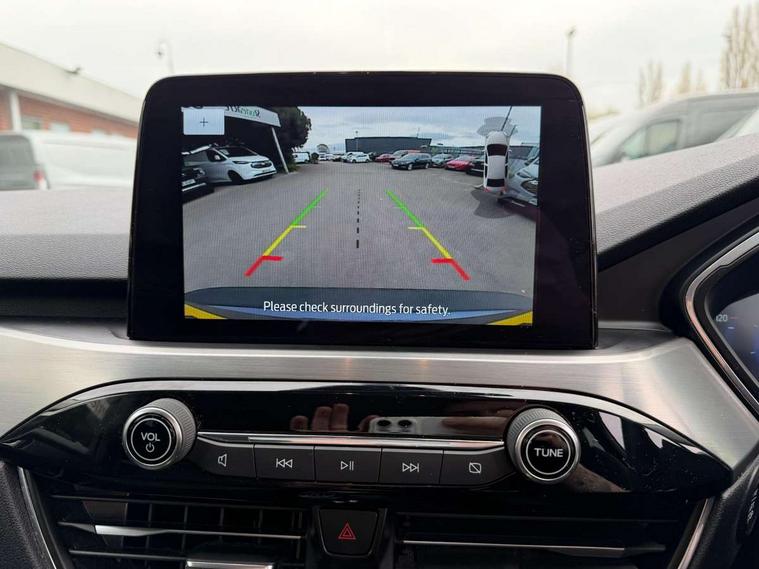 12.3" digital colour instrument cluster, Ford easy fuel, Ford SYNC 3 with 8" TFT LCD touchscreen, App Link, andriod auto/apple carPlay, emergency assistance and navigation with Ford pass connect, Front and rear parking sensors, Hands free power tailgate, Lane keeping aid with lane departure warning, Power assist steering, Rear view camera, Selectable drive modes, Service interval indicator, Standard suspension, Twist beam rear suspension, B&O premium audio system with 10 speakers and subwoofer, 2 USB ports, DAB radio/CD, Auto dimming rear view mirror, Auto headlamps with high and low beam, Auto wipers, Front LED fog lamps, LED daytime running lights, LED rear lights, Power folding heated door mirrors with puddle lights, Power front/rear windows with global close, Privacy glass, Quickclear heated windscreen, Rear side wing doors, Rear spoiler, Rear wiper, Silver roof rails, Third brake light, Twin exhausts, 10 way power adjustable drivers seat, 2nd row sliding seats with 60:40 split, 8 way manual passenger seat including lumbar support and height adjust, Ambient lighting, Centre console with electronic parking brake, Electronic automatic temperature control (EATC), Front and rear floor mats, Front and rear head restraints, Partial premium touch sensico leather upholstery with black cloth inserts, Rear charging point, Single front passenger seat, Sports seats, 3x3 point rear seatbelts, Airbags - front driver/passenger, front and rear curtain, Drivers knee airbag, Electronic stability control (ESC) and ABS, Ford MyKey Gen 2 safety system, Manual child proof rear door locks, Post collision braking, Pre collision assist with autonomous emergency braking, Rear seat Occupancy alert, Tyre pressure monitoring system, Engine immobiliser, Keyless entry and Ford power start button (Keyless start), Locking wheel nuts, Remote powered central double locking doors, Thatcham category 1 alarm, 18" 5x2 spoke magnetic and machined finish alloy wheels,