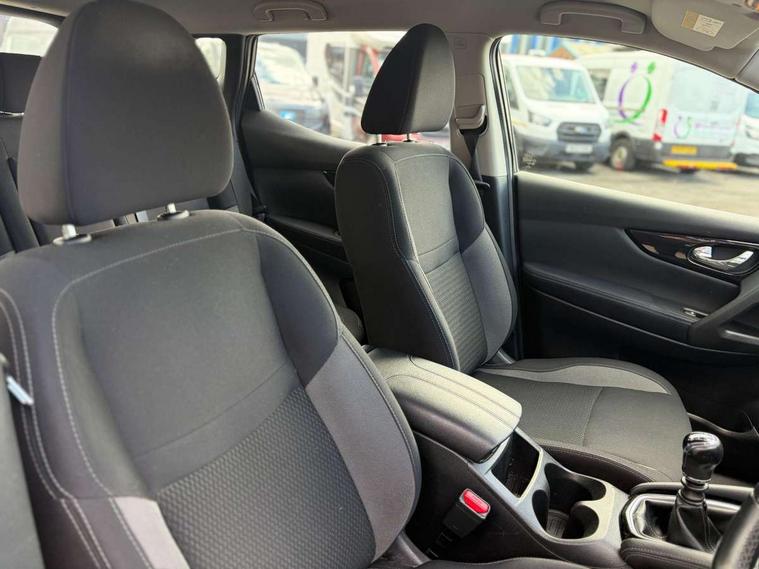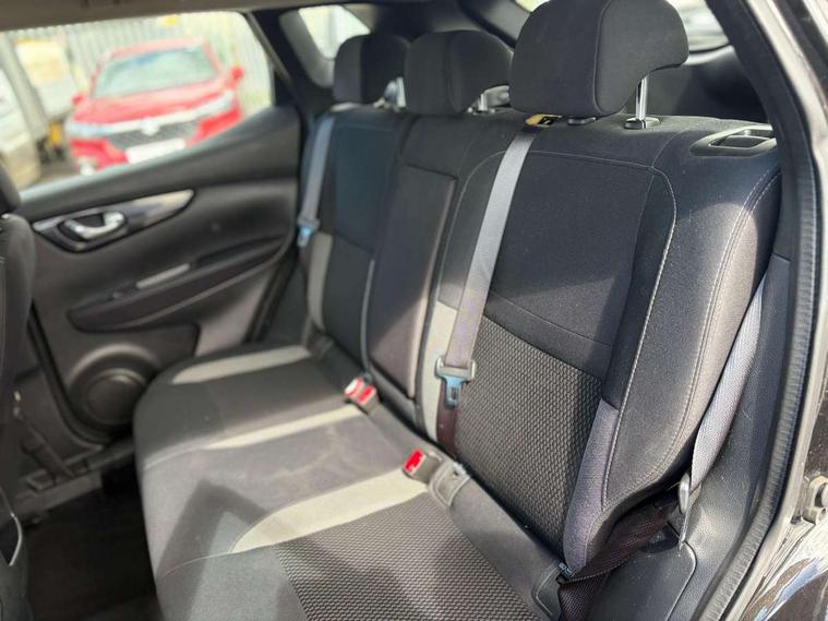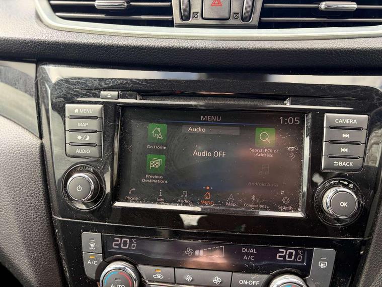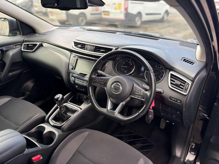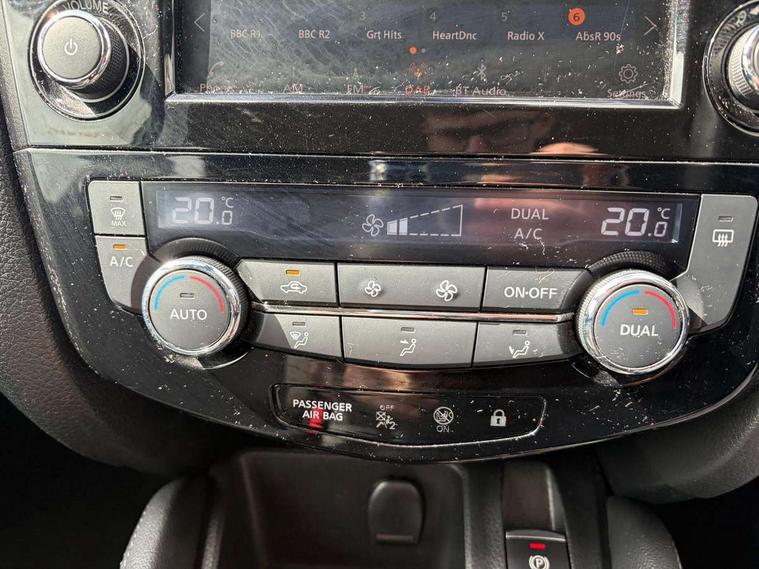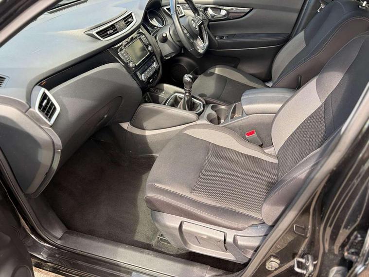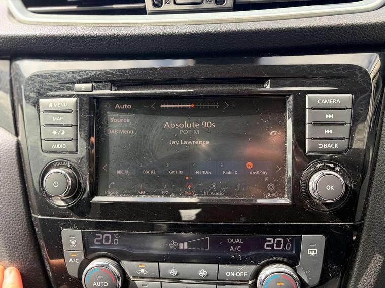 Advanced drive assist display 5'' TFT coloured screen, Android Auto, Apple CarPlay preparation, Bluetooth connectivity, Cruise control + speed limiter, Electric speed sensitive power steering, Front parking sensors, Lane departure warning system, Nissan connect evo 7" touchscreen navigation and entertainment system, Normal or sport selectable steering, Outside temperature sensor, Rear parking sensors, Rear view camera, Service interval indicator, Smartphone integration, Stop/start system, Tomtom connected services, Traffic sign recognition, Trip computer, Voice control system, Nissan chassis control (intelligent ride control, intelligent trace control, intelligent engine brake), 6 speakers, AM/FM radio, CD audio system, Aux-in socket, DAB Digital radio, Steering wheel mounted audio controls, USB port, Anti dazzle rear view mirror, Auto wipers, Body colour bumpers, Body coloured door handles, Body coloured door mirrors, Chrome window surround, Daytime running lights dip function when turn signal applied, Electric folding door mirrors, Electric front and rear windows with one touch illuminated window controls, Electric front/rear windows, Electrically adjustable door mirrors, Front fog lights, Halogen headlights, Heated door mirrors, High beam assist, Intelligent auto headlights, LED indicators in door mirrors, Rear roof spoiler, Rear wiper with reverse link, Shark fin antenna, Signature LED daytime running lights, Underbody vortex generators, 2 X front 12v power sockets, 3 height adjustable rear headrests, 60/40 split folding rear seat, Ambient lighting in centre console, Boot lighting, Centre console storage box/armrest, Chrome interior door handles, Cloth upholstery, Driver's seat manual height adjust, Dual zone climate control, Front and rear door pockets with bottle holders, Front and rear seat belt pre-tensioners with load limiters, Height adjustable front headrests, ISOFIX on outer rear seats, Leather D shaped steering wheel, Leather gear lever, Leather knee pad, Manual height adjustable front passenger seat, Manual lumbar support on driver seat, Parcel shelf stow function under luggage board, Pollen filter, Rear armrest with 2 cupholders, Tilt/telescopic adjustable steering wheel, 6 airbags - Driver, front passenger, curtain and side airbags, ABS, ESP, EBD and brake assist, Auto hold function, Child locks on rear doors, Electronic parking brake, Front and rear seat belt warning, Front passenger airbag deactivation, Height adjustable front seatbelts, Hill start assist, Intelligent emergency braking with pedestrian recognition, Three 3 point rear seatbelts, Tyre pressure monitoring system, Anti-theft immobiliser, Remote central locking, Thatcham Cat.1 alarm, Piano black dash trim, 17" Alloy wheels, Tyre puncture repair kit,