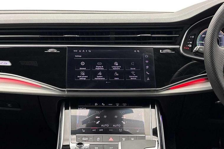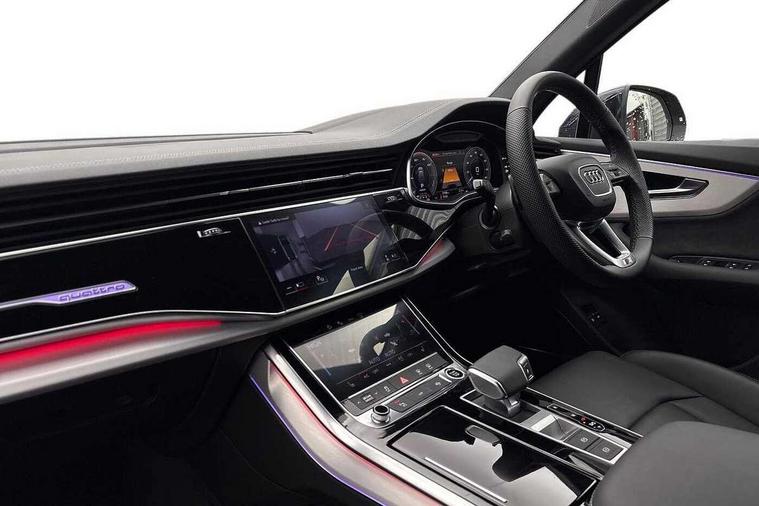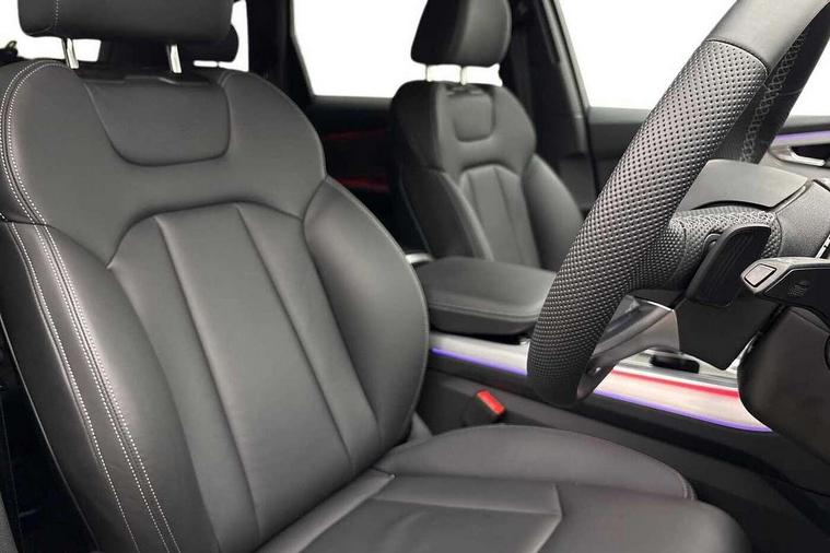 Audi connect safety and service (e-call), Audi connect with Amazon Alexa Integration, Audi drive select (Auto, Comfort, Dynamic, Efficiency, Individual, Off-road and All road), Audi phone box light with wireless charging, Audi virtual cockpit - 12.3" high-resolution classic display with fully customisable instrument cluster, Bluetooth interface, Camera based traffic sign recognition, Electromechanical power steering, MMI navigation plus with MMI touch screens includes 10.1" and 8.6" screens with haptic feedback, Natural voice recognition, Operating buttons in Matte black, Parking system plus with 360 degree display (front, rear and side sensors) - acoustic and visual park assist system, Power operated tailgate, Rear view camera, Smartphone interface includes wireless Apple carplay/Android Auto, Start/stop system, 85 litre fuel tank, Adaptive air suspension, Quattro all wheel drive with self locking centre differential, Audi music interface - front 2 USB-C ports with charger and data functions, Audi sound system with 6 channel amplifier, 180 watt amplifying capacity and 10 loudspeakers including subwoofer, DAB digital radio module, Aluminium roof rails, Aluminium window trim, Auto dimming frameless rear view mirror, Body coloured door mirrors, Electrically adj heated/folding + automatically dimming exterior mirrors with memory + automatic kerb side function for passenger side exterior mirror, Heat insulating glass in windshield, Integrated LED indications in door mirrors, LED 3rd brake light, LED daytime running lights, LED rear tail lights, Loading edge protection in stainless steel, Matrix LED headlights with dynamic front and rear indicators, Privacy glass - dark tinted rear and rear side windows from B-pillar backwards, Rear side wing doors, Rear wiper, S Line badge on wings, S Line body styling, S line bumpers in full body colour paint finish, S line roof spoiler, S line styling side ventilation grilles and side skirts, 3 seat bench in 2nd row, 3 zone climate control, Black cloth headlining, Comfort front centre armrest, Electric adjustable front seat with 4 way lumbar support, driver memory functionality, Folding rear seats, Front head restraints, Front/rear floor mats, Heated front seats, Illuminated door sill trims with S logo, ISOFIX child seat mounting for front passenger seat and 2 outer rear seats with top tether child seat mounting for all 3 rear seats, LED interior ambient lighting, Luggage compartment cover, Luggage compartment sill protection in stainless steel, Rear head restraints, Single front passenger seat, Stainless steel pedals, Sunvisors with illuminated vanity mirrors, 3 point seatbelts on all rear seats, Audi pre sense front, Child locks on rear doors, Convenience key with safelock and gesture tailgate, Driver and front passenger, front side and curtain airbags, Electromechanical parking brake, Electronic Stabilisation Control (ESC) including ABS, ASR and EDL, Extended pedestrian protection measures, Hill hold assist, Seatbelt reminder, Tyre pressure loss indicator, Warning triangle and first aid kit, Anti theft alarm with tow away protection, Anti-theft wheel bolts and wheel loosening detection, Keyless Go, Remote central locking, Darkened matt brushed aluminium inlays, Tool kit, Tyre repair kit,
