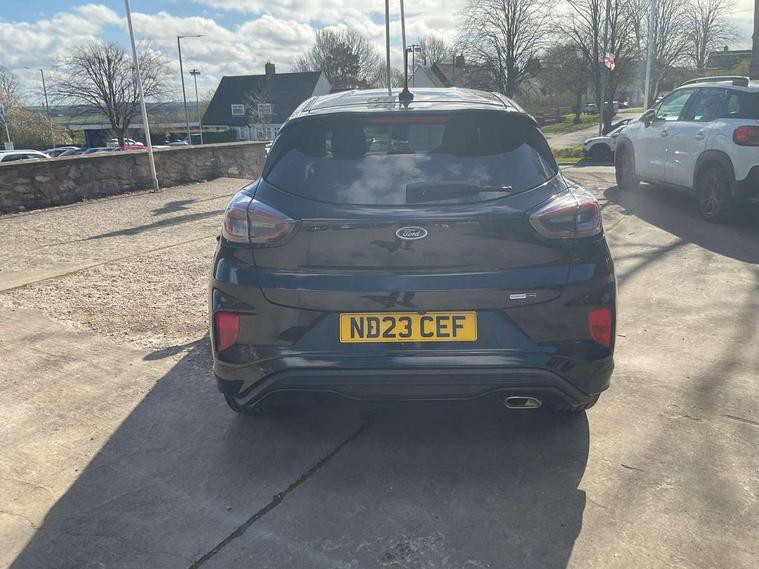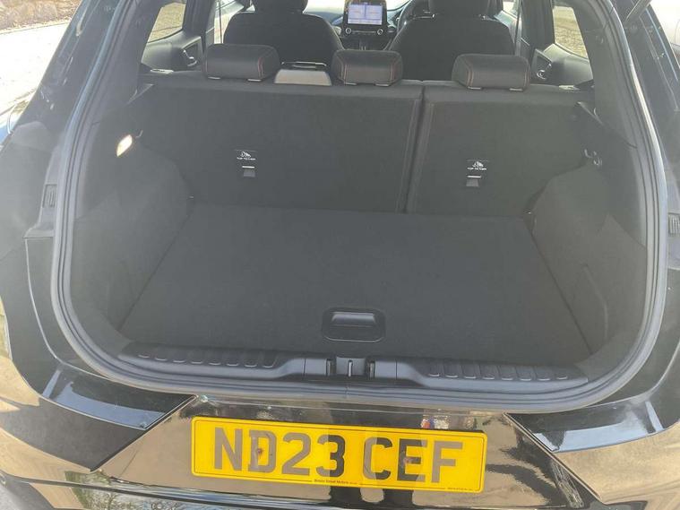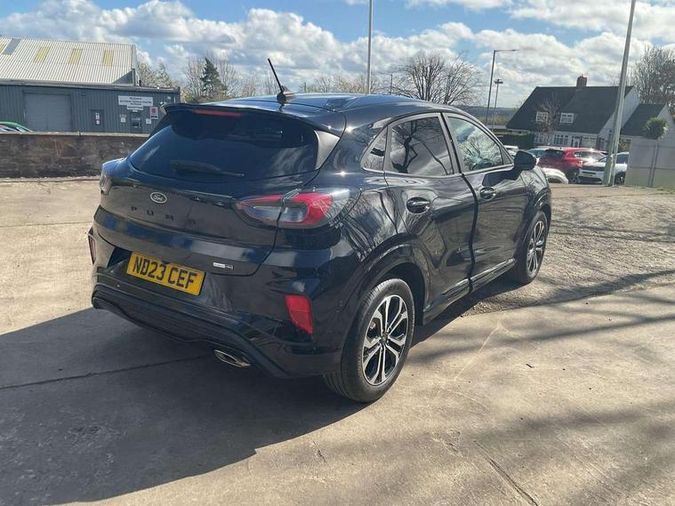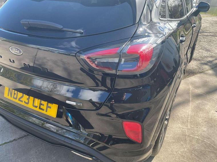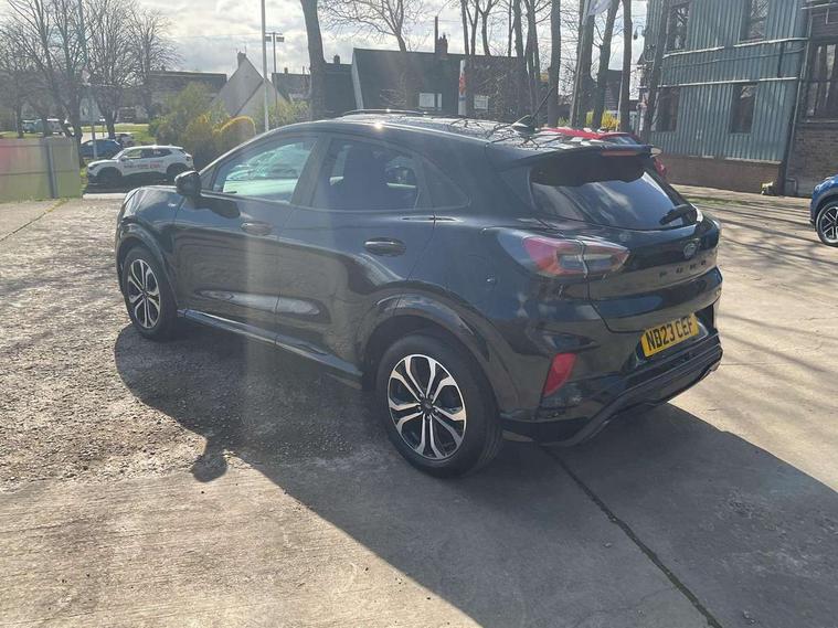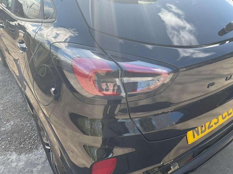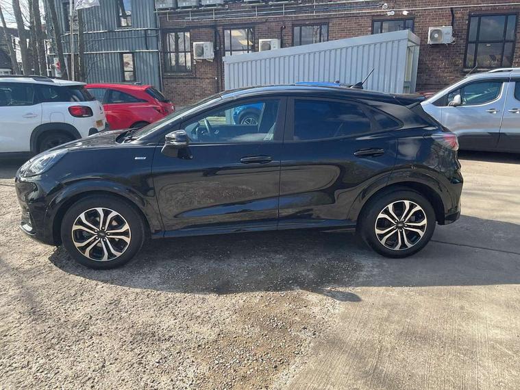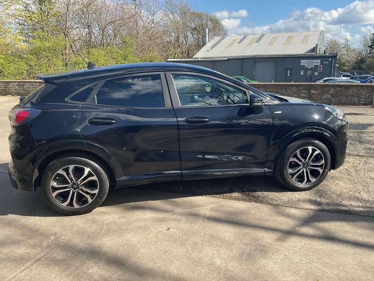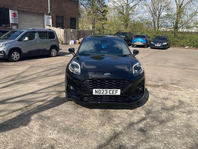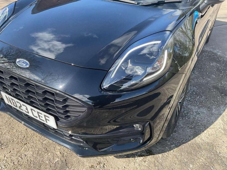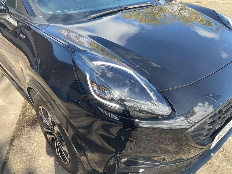 Driver impairment monitor, Emergency call service, Ford easy fuel, Full digital 12.3" instrument cluster, Lane keeping aid with lane departure warning, Power assist steering, Power start button, Rear parking sensor, Selectable drive modes(Normal, Eco, Sport, Slippery and Trail), Speed sign recognition, Sport suspension, Automatic headlights with auto high beam, Automatic rain sensing wipers, LED rear lamps, Power foldable heated door mirrors with puddle lamps, Projector headlamps with LED day time running lights and front fog lamps, Quickclear heated windscreen, Rear side wing doors, Rear wiper, ST-Line body styling kit with unique grille and large body colour rear spoiler, Third brake light, 3 seat bench in 2nd row, Centre console with armrest and stowage, Ford megabox extended bootspace, Front and rear head restraints, Front floor mats, Manual 2 way passenger seat adjustment, Manual 4 way driver seat adjust with lumbar adjustment, Single front passenger seat, ST- Line cloth trim with red stitching, ST-Line flat bottomed sensico leather steering wheel with leather handbrake and aluminium gear knob, Ford SYNC 3 navigation pack - Puma, 3 rear seatbelts, Child safety lock, Electronic stability control (ESC) and hill start assist, Pedestrian/cyclist detection & post-collision braking, Pre collision assist system, Tyre pressure monitoring system (TPMS), Thatcham alarm,