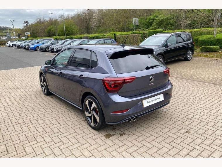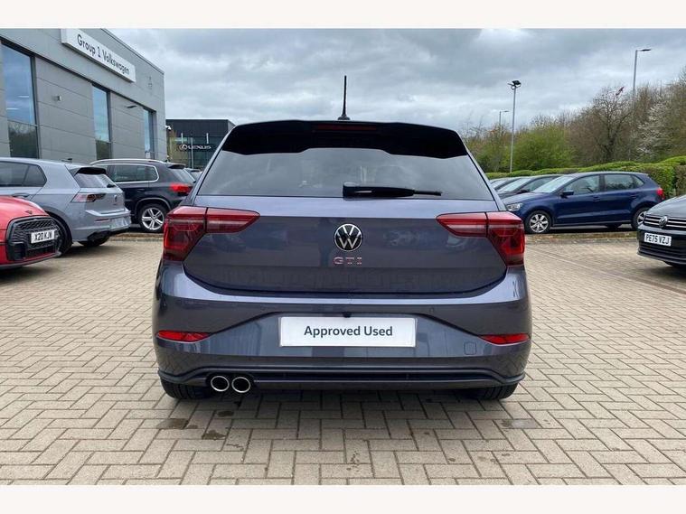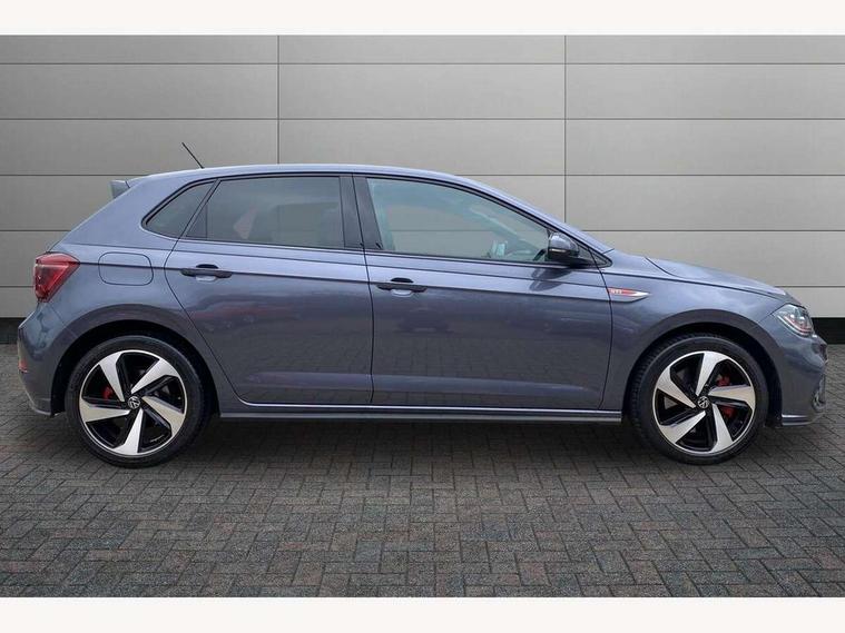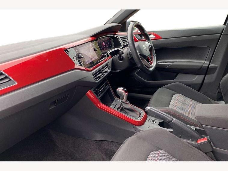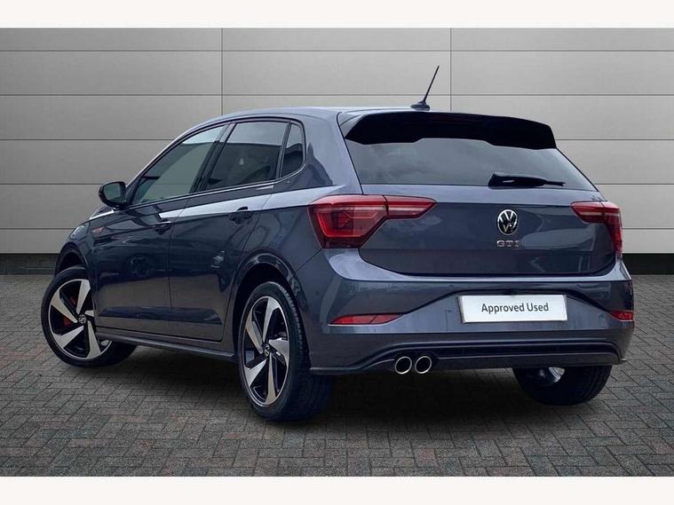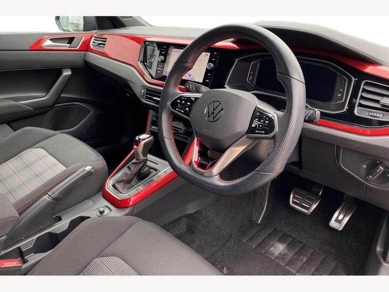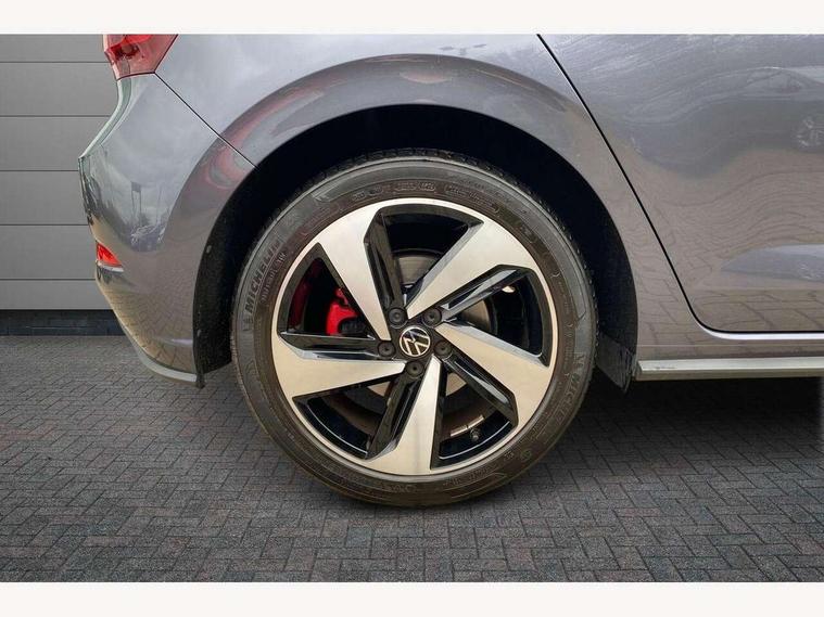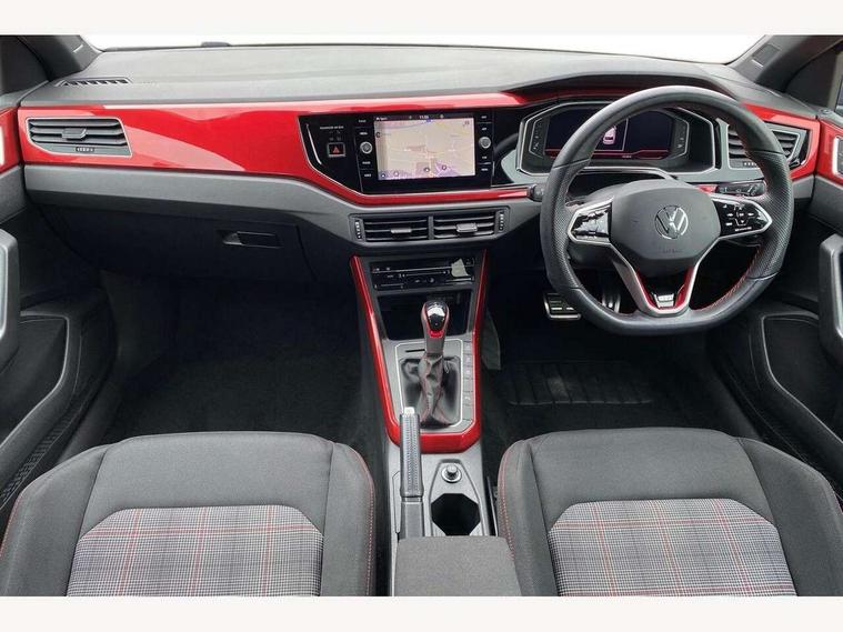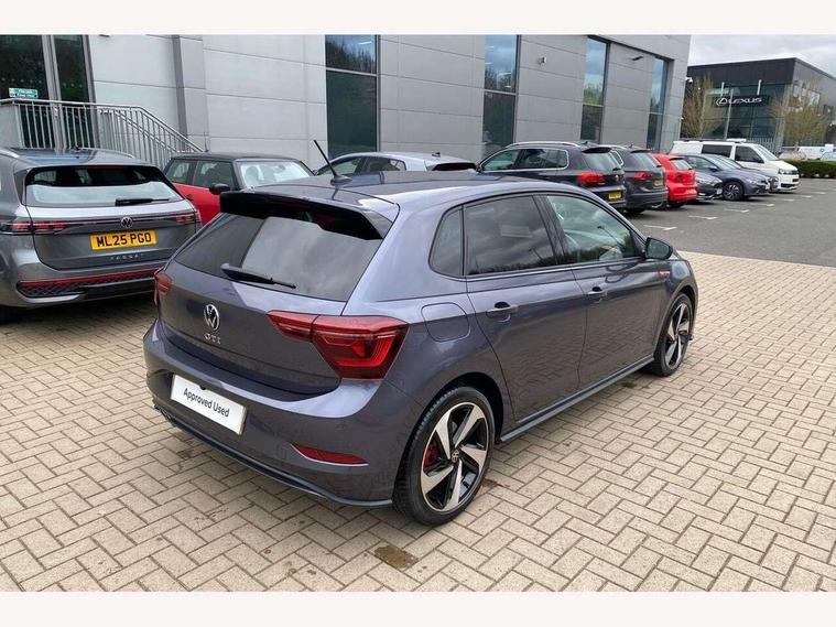 Adaptive cruise control with follow-to-stop and speed limiter, Bluetooth mobile phone interface, Digital Cockpit Pro with 10.25" Display, Driver alert system, Dynamic road sign display, Eco mode, Emergency call service, Power assisted speed sensitive steering, Preparation for We connect and We connect plus, Speedo and rev counter, electronic odometer, trip, service interval display and fuel gauge, Travel Assist - Lane keeping system and traffic jam assist, Travel assist including emergency assist, Trip computer, Warning signal and warning light for front and rear seatbelts not fastened, Washer fluid level indicator, Wireless app connect, Adaptive chassis control, Front wheel drive, Heavy duty rear axle, Rear shock absorpion sports version, Sports select suspension lowered by 15mm, Start-stop system with battery regeneration (recuperation - energy recovery during braking), DAB Digital radio, Diversity antenna for FM reception, Front and rear 6 speakers, Body colour bumpers, Body colour door handles, Electric front windows, Front scuff plates in aluminium with GTI logo, Heat insulating darkened glass in side and rear windows, Heat insulating glass windscreen, Power folding adjustable/heated exterior mirrors and front passenger exterior mirror lowering function, Rear electric windows, Rear fog light, Rear side wing doors, Rear windscreen washer and wiper with interval delay, Sport bumpers with air intakes with honeycomb structure, Third brake light, Twin chrome exhaust tailpipes, 12V power socket in centre console, 2 USB-C ports in the front, 2 USB-C charging sockets on the center console in the rear, 3 rear head restraints, 60/40 split folding rear seat and rear seat bench not split, Air care climatronic air conditoning system with active combination filter and 2-zone temperature control, Black roof lining, Chrome plated radiator grille inserts, air vent surrounds and light switch surrounds, Door and side trim panel, Driver and front passenger seat height adjustment, Driver/passenger sunvisors with illuminated vanity mirrors, Front + rear carpet mats in recycled material, Front centre armrest, Front footwell illumination, Front seat backrest storage pockets, GTI sports gearshift knob in aluminium leather, Handbrake lever handle in leather, Headliner in recycled material, Isofix child seat preparation easy-fit (for two outer rear seats, and front passenger seat) compatible with I-size, LED interior light with switch off delay and dimmer, 2 reading lights front and rear, Luggage compartment cover, Luggage compartment floor, Luggage compartment lighting, Single front passenger seat, Stainless steel pedals, Standard pedal cluster, Three spoke leather wrapped multifunction sports steering wheel with shifting paddles, IQ LED matrix headlights pack - Polo, Light and sight pack - Polo GTI, Sports suspension pack - Polo, 3 point height adj front seatbelts + pretensioners, 3x3 point rear seatbelts, ABS, Driver and front passenger airbag with front passenger airbag deactivation, Drivers and front passengers safety optimised head restraints, ESC (Electronic stability control) + EDL (Electronic Differntial lock) and ASR (Traction control), Extended and predictive pedestrian/ cyclist protection, Front and rear disc brakes with red brake calipers, Front curtain and side airbags with center airbag, Hill hold control, Manual child lock in rear doors, Two tone horn, Tyre pressure loss indicator, Alarm with interior protection, Anti-theft alarm system with interior monitoring, backup horn, and towing protection, Anti-theft wheel bolts, Electronic engine immobiliser, Chrome applications on rotary light, mirror adjustment, window regulator switches, outlet with frame in black, Low rolling resistance tyres,
