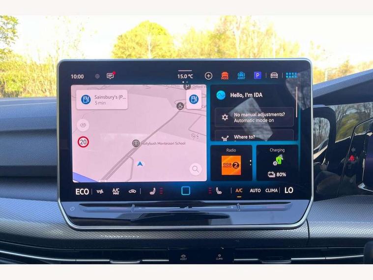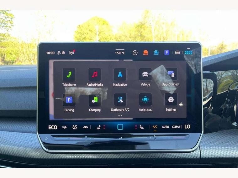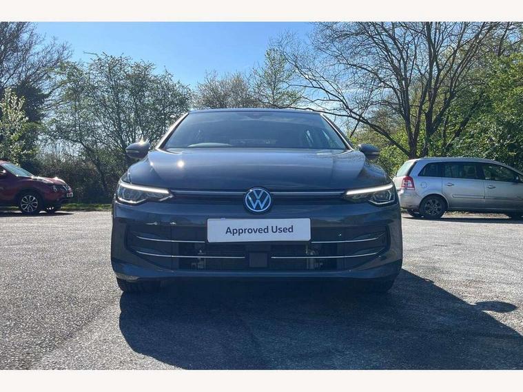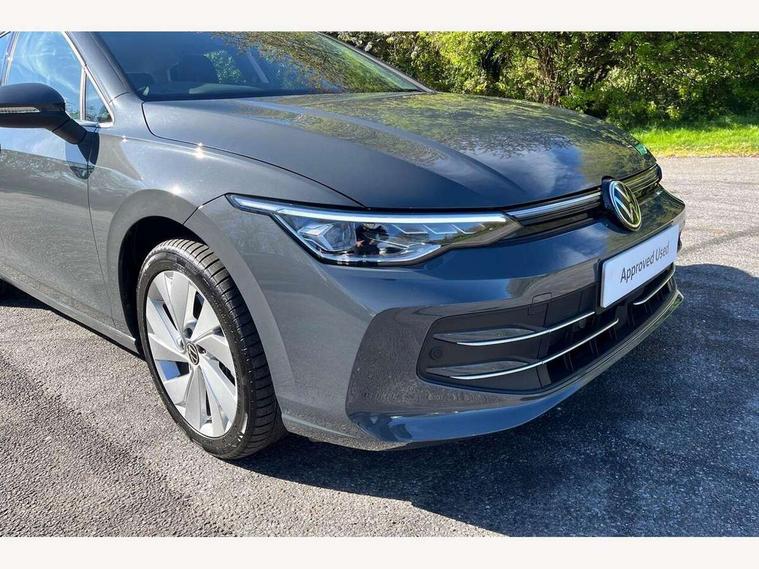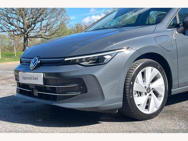Activated carbon canister, Adaptive cruise control (ACC), Advanced driver attention and drowsiness monitor, Dynamic road sign display, E-Sim card for online connectivity, eCall emergency call system, Multi-color Digital cockpit pro, selection of different info profile possible, Multifunction front facing camera for distance control, Navigation system, Oncoming vehicle braking when turning including swerve support, Side assist blind spot lane change system, rear traffic alert and exit warning system, Speed limiter, Speedo, rev counter, electronic odometer, trip, service interval display, exterior temperature and fuel gauge, Traffic jam assist, Voice enhancer and voice control, Warning signal and warning light for front and rear seatbelts not fastened, We connect plus preparation, We connect preparation, Wireless app connect, Charging cable Mode 2 Type 2 (10A), Charging cable mode 3, type 2 32 A, Hybrid propulsion system, Start-stop system with battery regeneration (recuperation - energy recovery during braking), XDS electronic differential lock for improved traction and handling, 2 USB C ports in front, 2 USB charging sockets on the centre console in the rear charging capacity upto 45W, 6 Speakers - 4 in front and 2 in rear with central speaker, Digital radio reception (DAB), Diversity antenna for FM reception, Gaming platform via car app, Infotainment system with 12.9" display, Mobile phone interface with inductive charging feature, 3rd brake light, Automatic headlamp activation with Coming home and Leaving home feature, Body colour bumpers, Body colour door handles, Body colour door mirrors, Chrome trimmed front air intake surrounds, Chrome trims on the side window bottom, Exterior mirrors convex on the left and aspherical on the right, Front and rear electric windows, Heat insulating windshield made of laminated glass, LED separate daytime running light, Rear exhaust tailpipe, Rear fog light on one side and reversing lights on both sides, Rear side wing doors, Rear windscreen washer and wiper with interval delay, Remote electrically foldable door mirrors, puddle lights and reverse activated passenger's door mirror, Welcome light with surround lighting, 12V socket in front centre console, 12V socket in luggage compartment, 3 rear head restraints, 3 seat bench in 2nd row, Air care climatronic 3 Zone automatic climate control with rear air conditioning control panel, Ambient lighting with 30 colour including LED light unit in front footwell with selectable light colour, Chrome plated radiator grille inserts, air vent surrounds and light switch surrounds, Front + rear black carpet mats, Front centre armrest, ISOFIX anchors for child seats on outer rear bench seats and on front passanger seat compatible for i-Size, Luggage compartment lighting, Plastic gear knob, Rear cupholder and loadthough, Single front passenger seat, Soul black instrument panel, Split folding backrest with centre armrest and unsplit rear seat bench, Standard pedal cluster, Storm grey roof lining, Sun visors with illuminated vanity mirrors, Driver assistance pack - Golf Estate/Hatchback Auto, 3 point height adj front seatbelts + pretensioners, 3 rear three point seatbelts, ABS, Autonomous emergency braking front assist with pedestrian and cyclist monitoring, Child locks on rear doors, Driver and front passenger airbag with front passenger airbag deactivation, Electronic parking brake with auto hold, ESC (Electronic Stability Control), Extended pedestrian protection measures, Hill start assist, Rear disc brakes, Two tone horn, Tyre pressure loss indicator, Volkswagen roadside assistance, Anti theft wheel bolts, Preparation for alcohol interlock, New brushed dark metal decorative inserts for dashboard and front door panels, Tool kit for tyre mobility set, Tyre mobility kit Includes 12V compressor and tyre sealant,