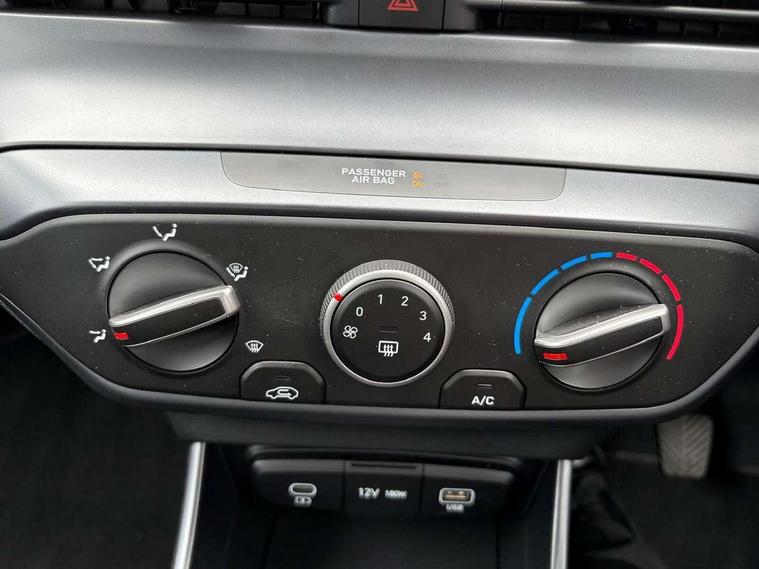 10.25" digital supervision cluster, 2nd Gen eCall, 8" Touchscreen with DAB, Apple car play/Android Auto, Cruise control + speed limiter, Forward collision assist with car, pedestrian and cycle detection, Intelligent speed limit warning, Lane follow assist, Lane keep assist, PAS, Rear parking sensor, Rear view camera with dynamic guidelines, USB C port front, 3rd brake light, Dusk sensor, Electric adjustable heated door mirrors, Front grille mesh pattern design, High beam assist, LED daytime running lights, LED Headlights, LED taillights, Rain sensor, Rear side wing doors, Rear wiper, Repositioned flat metal hyundai emblem, 3 seat bench in 2nd row, Adjustable head restraints, Air conditioning, Cloth upholstery, Floor mats, Leather steering wheel, Single front passenger seat, 3x3 point rear seatbelts, ABS with front and rear diagonally split, Autonomous emergency braking, Child locks on rear doors, Front ventilated disc brakes, Rear solid disc brakes, Tyre pressure monitoring system, 16" alloy wheels, Tyre repair kit,