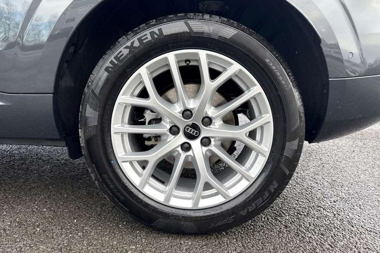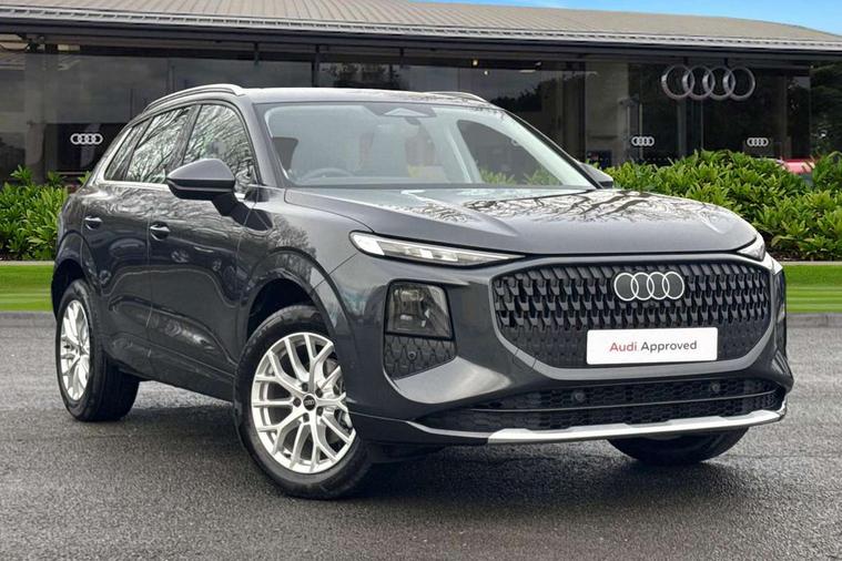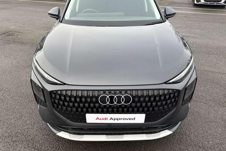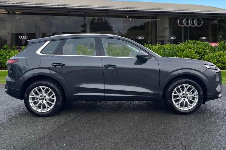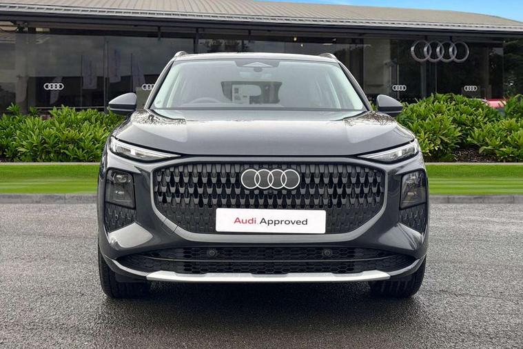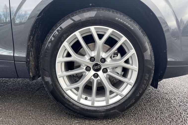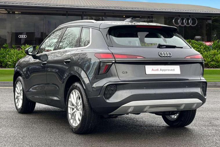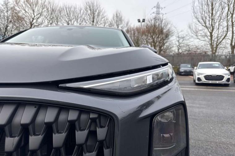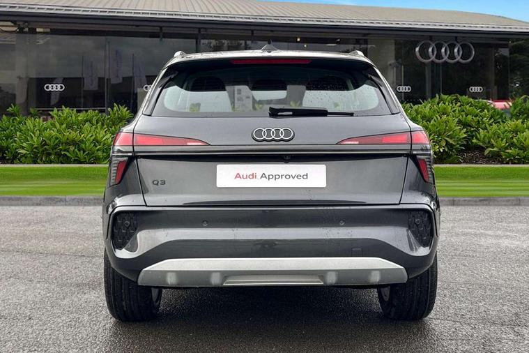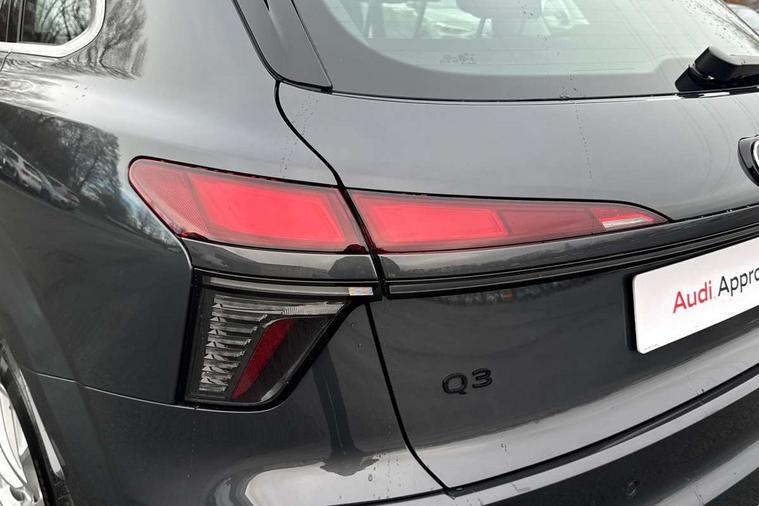 Adaptive cruise control, Audi connect emergency call and service, Audi connect remote and controls, Audi drive select (Balanced/Individual, effeciency, comfort and dynamic), Audi virtual cockpit plus - 11.9" display, Bluetooth interface, Camera based traffic sign recognition, Driver attention and fatigue monitor with driver monitoring, Electromechanical power steering, Front cross traffic assist, Lane departure warning with emergency assist, Panoramic curved display with 12.8" MMI navigation plus and MMI touch, Park assist plus with parking system and 360 display, Phonebox light with wireless charging, Reversing camera, Smartphone interface includes wireless Apple carplay/Android Auto, Start/stop system, Swerve assist and turn assist, Traffic sign based speed limiter, Voice control system with natural language interaction, Comfort suspension, Petrol Particulate Filter, 2 USB-C ports with charge and data functions, Audi sound system with 10 loudspeakers, subwoofer, 8 channel amplifier with 260 watts, DAB digital radio module, Acoustic glass for front door windows, Acoustic windscreen, Aluminium roof rails, Aluminium window trim, Audi Q3 lettering on the B-pillars, Auto dimming door mirrors, Auto dimming rear view mirror, Body colour door mirrors, Contrasting finish in volcano grey, Electrically folding, adjustable and heated door mirrors with integrated LED side indicators and kerb view function for passenger side, LED daytime running lights, LED Headlights, LED rear lights, LED third brake light, Loading sill protector in stainless steel, Main beam assist, Projection light in the exterior mirrors - Projects a graphic element onto the ground, Q3 badging on the rear, Rain and light sensors, Rear side wing doors, Rear window, rear door windows and rear side windows in clear glass, Rear wiper, Sports bumpers, 2 spoke multi-function leather steering wheel with paddle shift, 3 seat bench in 2nd row, 3-zone deluxe automatic air conditioning, 4 way lumbar support for the front seats - electric with horizontal and vertical adjustment in four directions, Door sill trims with aluminium inlay, Front and rear floor mats, Front and rear headrests, Front centre armrest, Heated front seats, Height and reach adjustable steering wheel, Impressum cloth upholstery + front sports seats, Interior elements in cloth, Interior storage compartment, Luggage compartment lid, electrically opening and closing, Manual front seats with height adjustment, Rear seat bench plus with split folded 40:20:40, Single front passenger seat, Steering wheel operating unit in matt black, Storage compartment in front centre console, Ambient lighting package plus - Q3, 3x3 point rear seatbelts, Convenience key with safelock, Driver and front passenger airbag with passenger airbag deactivation, Electromechanical parking brake, Electronic stabilisation control including ABS, ASR and EDL, First aid kit with warning triangle and high visibility vests, Front emergency brake assist, Hill hold assist, i - Size child seat mounting on the front passenger side and i - Size and top tether on the outer rear seats, Power operated child locks, Seatbelt monitoring, Three point automatic belts with belt tensioner and height adjustment, Tyre pressure loss indicator, Anti theft wheel bolts, Remote central locking, Thatcham approved category 1 anti theft alarm, Interior trims in aluminium look, Matt cross brushed aluminium inlay, Tool kit and Jack,