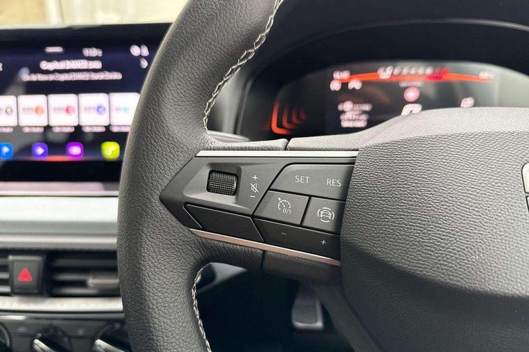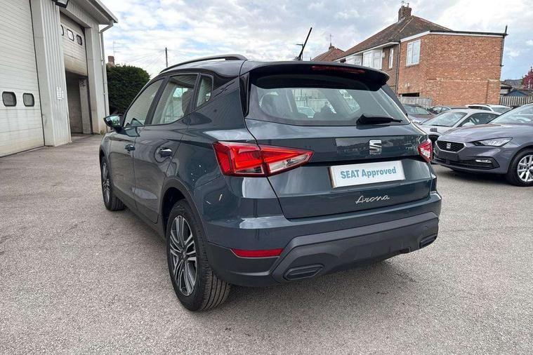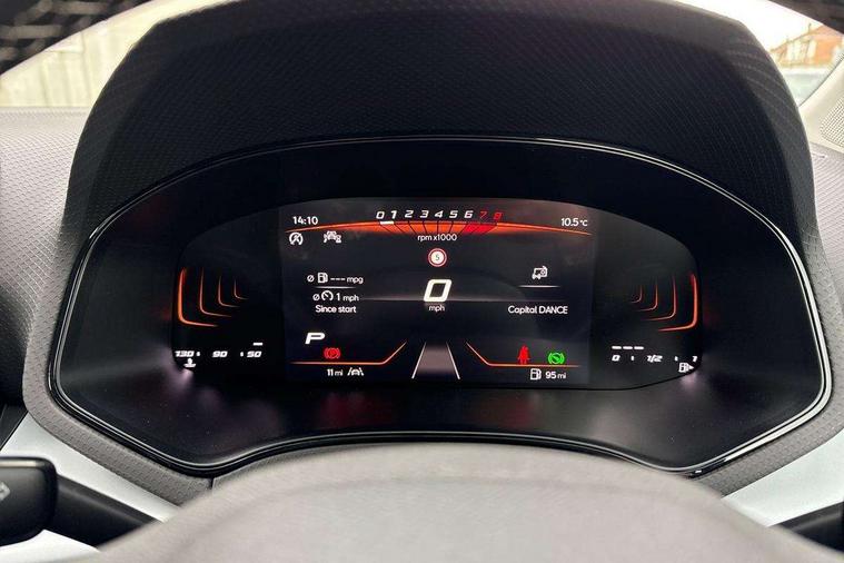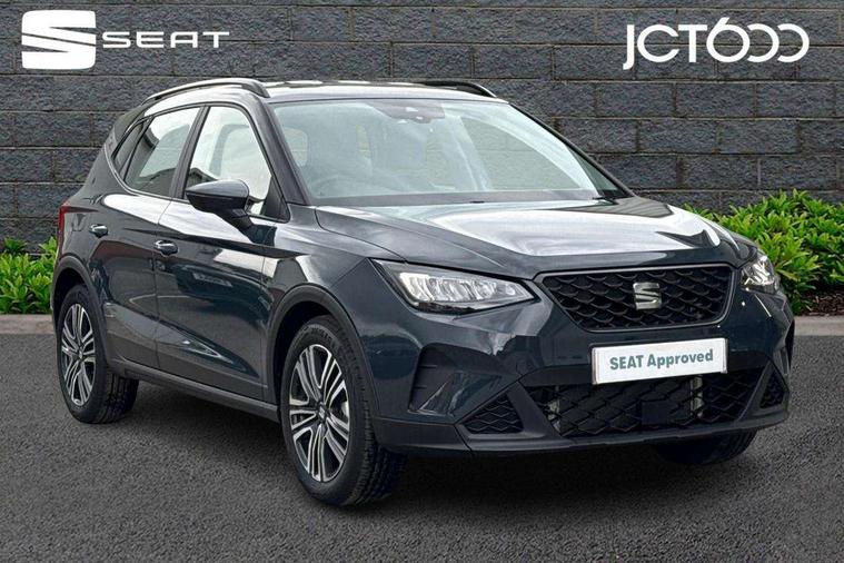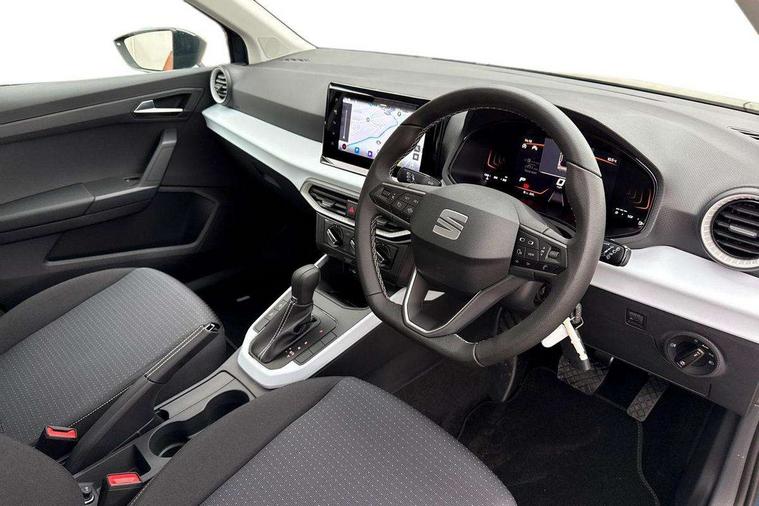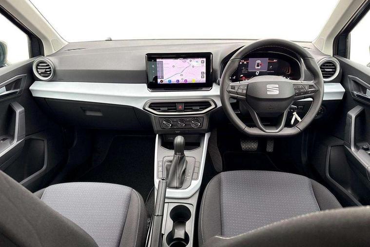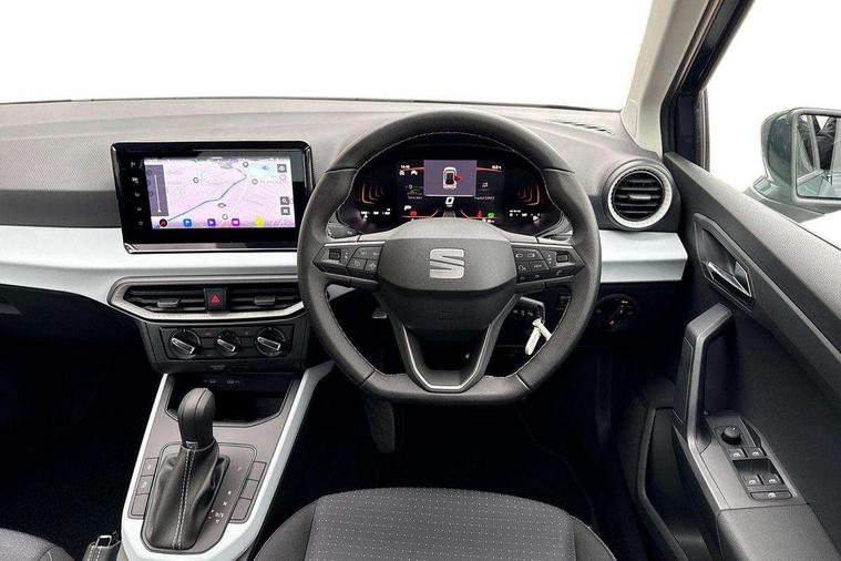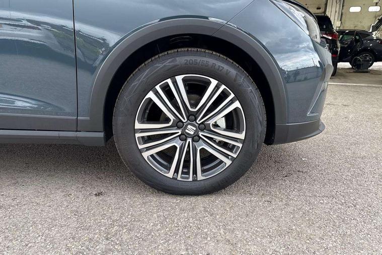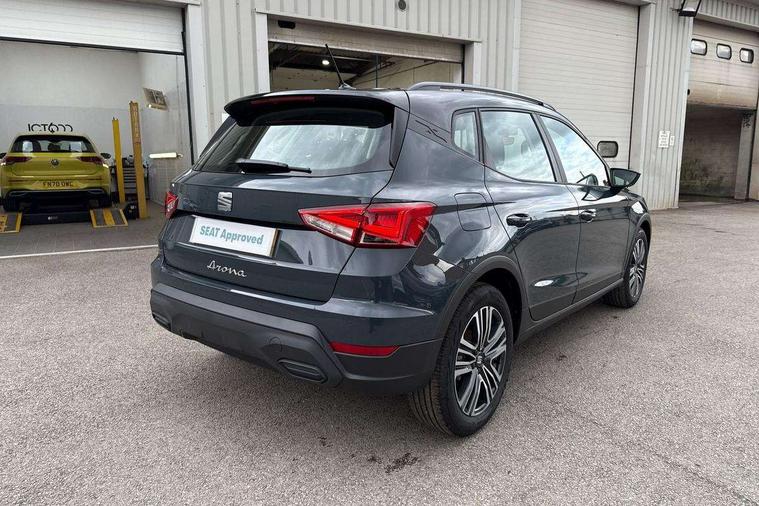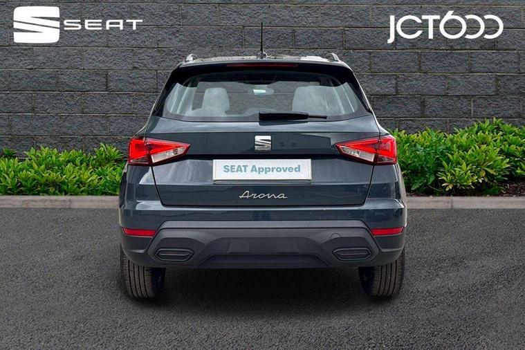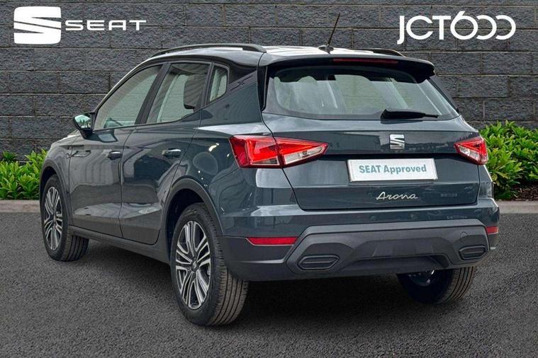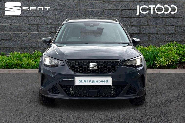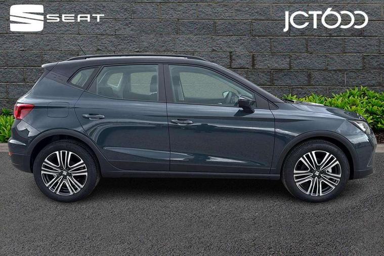 'Lights On' Reminder warning buzzer, 8" Digital cockpit, Cruise control and speed limiter, Digital clock, E-call, Electric speed sensitive power steering, Full link smartphone integration with mirror link, wireless apple carplay, Google android auto + USB Type C cable for apple and android devices, Lane keeping system, Low fuel warning light, Outside temperature display, RPM counter, Trip computer, Wireless phone charger, 9.2" colour touchscreen with navigation system, voice control and USB port (type c), Bluetooth interface for hands free and audio streaming, DAB digital radio and AM/FM radio, Steering wheel mounted audio controls, Anti theft roof antenna, Automatic activation of hazard warning lights, Black roof rails and window surrounds, Body coloured bumpers, Body coloured door handle inserts, Body coloured door mirrors, Dimming rear view mirror, ECO LED automatic headlights and LED daytime running lights, Electric adjustable door mirrors, Electric front/rear windows, Hidden exhaust pipe, LED rear tail lights and licence plate lights, Licence plate lights, Protective side mouldings, Rain sensing wipers, Rear fog lights, Rear side wing doors, Rear spoiler, Rear window wash/wipe, Third brake light, Visible VIN plate, 2 cupholders, 3 seat bench in 2nd row, 60/40 split folding rear seat, Air conditioning, Cloth upholstery, Double boot floor, Driver sunvisor with covered mirror + card holder, Dust/pollen filter, Gear shift indicator, Grey interior air vents, Grey interior roof, Height adjustable front seats, Height/reach adjustable steering column, Illuminated boot, Instrument lighting with brightness control, ISOFIX points in outer rear seats with top tether anchorage points, Leather steering wheel/gear knob/handbrake, Passenger sunvisor with vanity mirror, Potentiometer, Single front passenger seat, Two front and three rear height adjustable headrests, Interior chrome pack - Arona, Safe and driving pack (S) - Arona, 3 point seatbelts on all rear seats, ABS, Active front headrests, Child locks on rear doors, Driver and front passenger airbags with front passenger airbag de activation, front side and curtain airbags, Emergency Brake Assist (EBA) and front assist, Forward collision warning and autonomous emergency braking, Front and rear seatbelt reminder, Hill hold control, Multi-Collision braking, Tiredness recognition system, Traction control, Tyre pressure monitoring system, Deadlock, Electronic engine immobiliser, Locking wheel bolts, Remote central locking, Titan black dashboard, 17" Dynamic machined alloy wheels,
