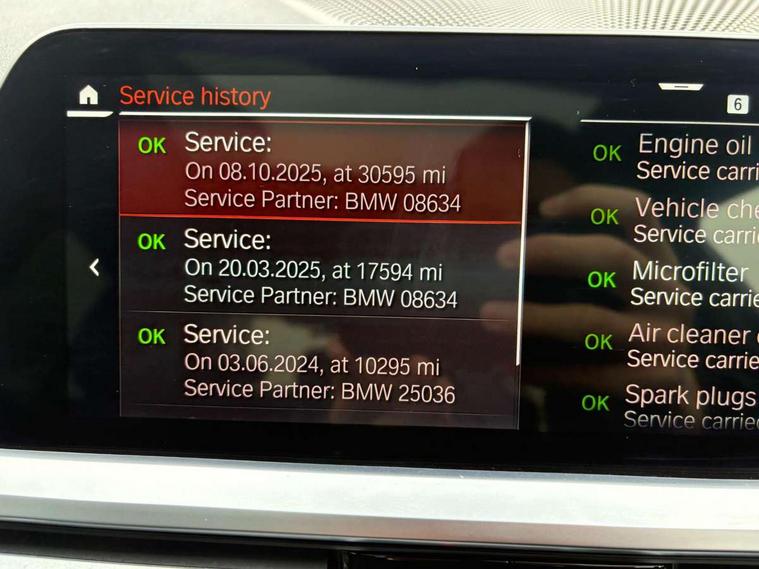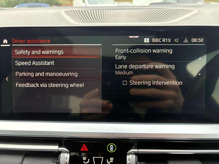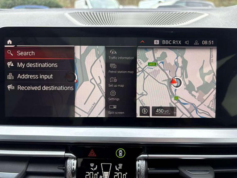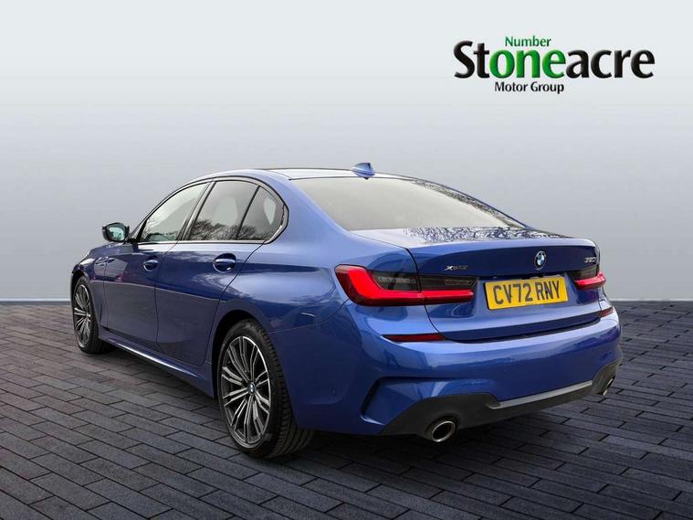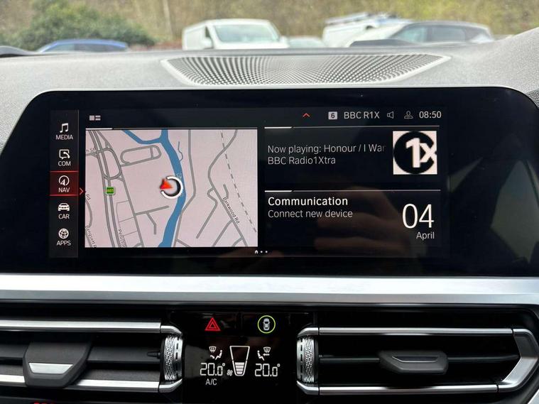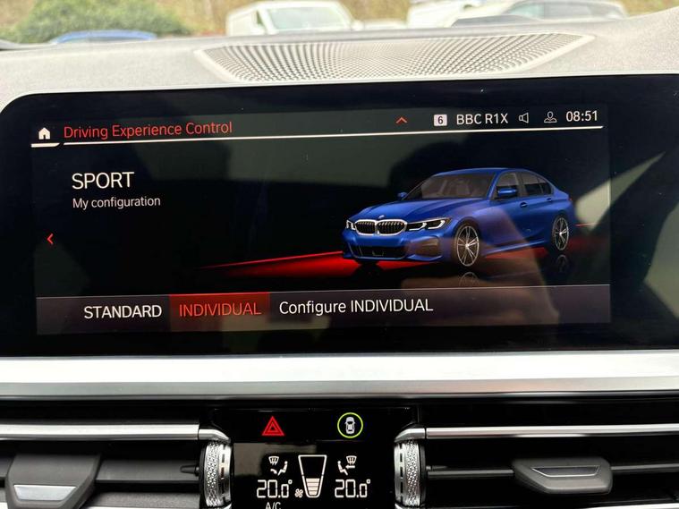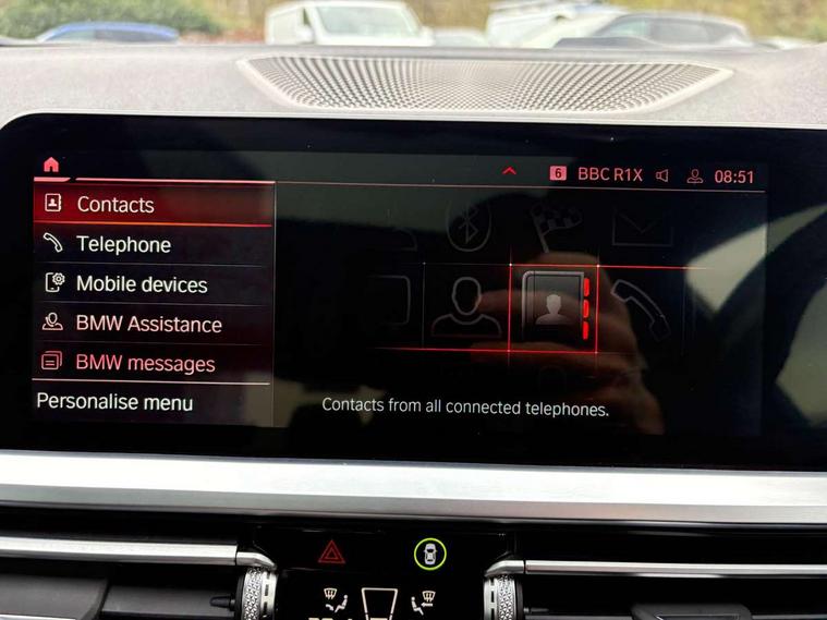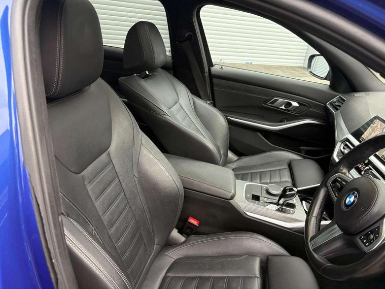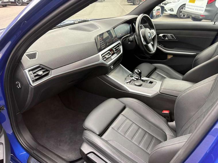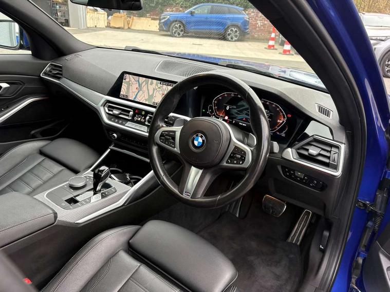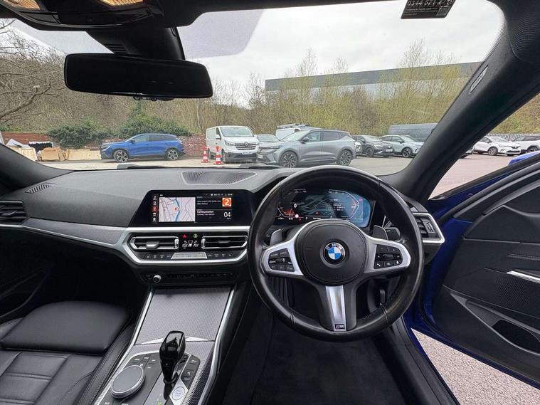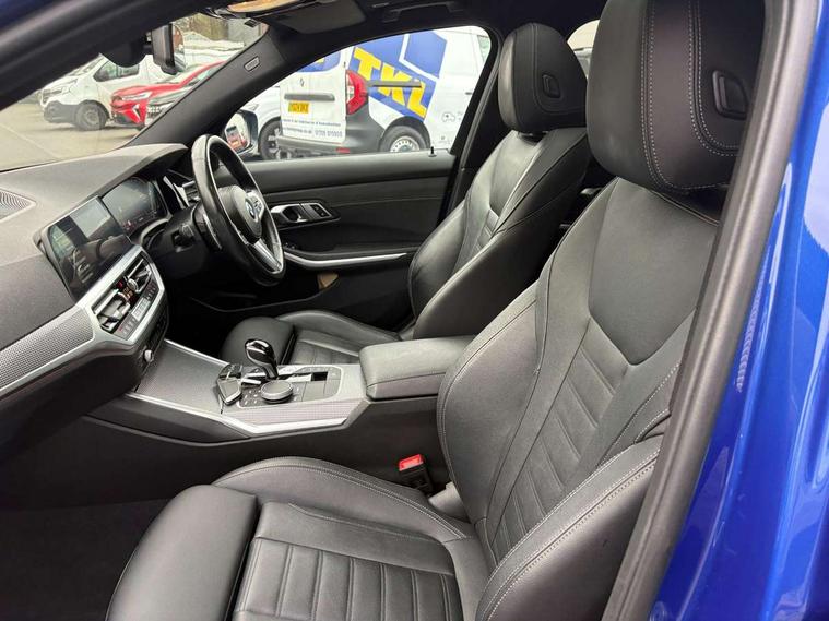 Active guard plus, Attentiveness assist, Auto start-stop, BMW Live Cockpit Professional Nav with 12.3" instrument display + 10.25" display, Intelligent Voice Assist, BMW OS 7, HDD, 2USB, 4G LTE connect, BMW service history, BMW Teleservices, Brake pad wear indicator in front and rear, Check Control warning system for monitoring of lights and door/luggage compartment open warning, Condition based service, Cruise control with brake function + speed limiter, Electric power steering with Servotronic steering optimised at all speed ranges, iDrive controller on centre console, Instrument cluster with speedometer with mph readout, tachometer, fuel gauge and oil temperature gauge, Integrated owners handbook, Oil sensor for level and grade, warning by check control system, On board computer - average speed+fuel consumption, service interval, clock/date, odometer/trip meter, outside temperature display and ice warning, Optimum shift indicator, Personal Profile - automatic lock when driving away selectable, Variable sport steering, Balanced 50/50 weight distribution, Battery cut-out switch, Drive performance control - ECO PRO, comfort and sport modes, Larger capacity fuel tank, M sport suspension, Petrol Particulate Filter, Stroke dependent dampers, DAB tuner, Electronic service booklet, Acoustic glazing, Active airstream chrome frame kidney grille with 8 high gloss black vertical slats, Automatic headlight beam throw control with load dependent regulating reaction, dynamic compensation of braking dive and acceleration squat, Black roof mouldings, Body colour door handles, Body colour front and rear bumpers, Body colour fuel filler flap, Body colour mirror caps with bottom segment in matt black, Dynamic brake lights, Electric windows - front and rear, with open/close fingertip control, anti-trap facility and comfort closing, Exhaust tailpipe - split left and right, Exterior mirrors - electrically folding with anti-dazzle, Fading support, Front and rear bumper system with replaceable deformation elements, Front black door sill finishers with BMW designation, Green tinted heat protection glazing, High gloss shadow line exterior trim, Interior rear view electrochromatic mirror with automatic anti dazzle function, LED daytime running lights, LED front fog lights, LED third brake light, Lightweight engineering, M designation on front side panels, left and right, Matt black exterior B pillar, Model designation on right side of tailgate, Rain sensor with automatic headlight activation, Rear boot, Rear side wing doors, Shark fin antenna, Two part LED tailights in L-shape with components in smoked glass, brake light, LED turn indicator and rear fog light, Visible VIN plate, Welcome lights in interior and door handle area, Windscreen wipers with integrated washing jets, xDrive designation on left tailgate, 12V power socket in front storage compartment, 2 front cupholder in centre console with clamping elements and matt black inlay, 3 rear seats with non folding headrests with 3 point seat belts, 3 seat bench in 2nd row, 3 zone automatic air conditioning, 4 pieces lashing eyelets in luggage compartment, 40:20:40 split folding rear seat with loading system, Ambient lighting with welcome carpet light, Anthracite headlining, Armrest integrated in front and rear door trim + front centre console armrest, Backrest width adjustment, Centred top Luggage compartment lights, Four grab handles integrated in roof lining, Front and rear door exit lighting (left / right), Front and rear door pockets, Front and rear reading lights, Front and rear velour floor mats, Front head restraints, Front sport seats, Heated front seats, Height adjustable mechanically and infinitely variable steering column, Illuminated armrest storage compartment, Illuminated glove compartment with separate small compartment, Interior lighting - front centre over interior mirror with soft light, rear centre and front and rear footwell lighting, M sport leather steering wheel, Make-up mirror lights, Rear centre armrest with 2 cupholders, Rear centre console with storage compartment and ventilation grille, Single front passenger seat, Sunvisors with vanity mirrors and ticket pocket, Toolkit located in luggage compartment, Connected pack professional - 3 Series Saloon/Touring, M sport exterior styling pack - 3 Series Saloon/Touring, Parking assistant pack - 3 Series, 2 tone horn, BMW emergency call, Brake energy regeneration, Braking pre-tensioning, Child proof locking system in rear door, Child seat ISOFIX attachment rear outer seats, Coasting in idle in ECO PRO mode, Crash sensor activating of airbags, Unlocking doors, hazard warning lights, fuel cut off, interior lighting+activation of safety battery terminal clamp, Driver and front passenger side airbags, integrated in the door side seat backrest bolsters for all seat variants, Driver/Front Passenger airbags, Dry braking, Dynamic brake control, Dynamic stability control + (DSC+) - Anti-lock Braking System (ABS) with brake assist and cornering brake control + Automatic Stability Control (ASC), Dynamic Traction Control - DTC, Electromechanical parking brake including automatic hold function and automatic release of the parking brake when pulling away, Electronic differential lock control (EDLC), Front passenger manual airbag deactivation, Head airbags for all 4 outer seats, Hill start assist, Seat belt security check for driver and front passenger, Side impact protection, Three 3 point seat belts on all seats including front belt stopper, pyrotechnic belt tensioners and belt force limiters, Tyre pressure monitoring with three level warning strategy, Ventilated front and rear disc brakes, Warning triangle and first aid kit, Alarm system (Thatcham 1) with remote control and electronic engine immobiliser, Central locking switch for all doors, fuel filler cap and luggage compartment, Remote control with integrated key one button open/close vehicle and windows, sole opening of the luggage compartment lid an