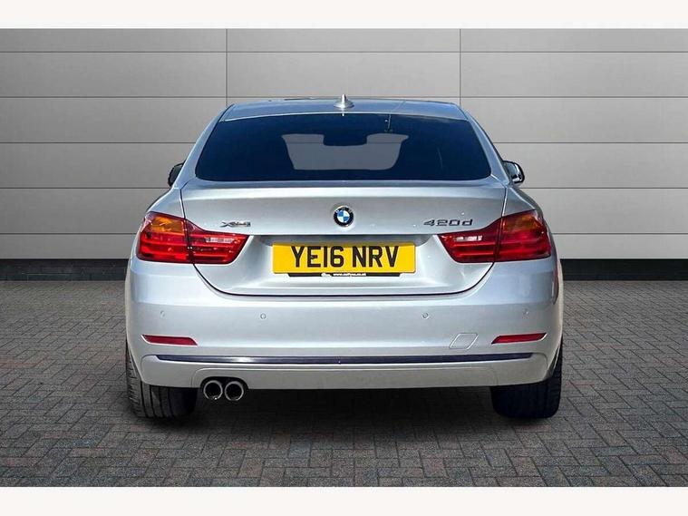 Automatic tailgate opening, BMW Online services, BMW Teleservices, Brake pad wear indicator warning light, Check control system, Door/boot open warning, Front/rear Parking distance control, Lights on warning, Oil temperature gauge, On board computer, Outside temperature display, Run flat indicator, Service interval indicator, Stop/start button, Diesel particulate filter, Drive Performance Control, Electronic differential lock, Sports function on gearbox with steering wheel mounted gearshift paddles, Auxiliary point for auxiliary devices, BMW professional radio/CD/MP3, DAB Digital radio, 2 speed adjustable intermittent wipers with wash/wipe function, Auto dimming rear view mirror, Body colour bumpers, Body colour door handles, Body colour roof mouldings, Chrome exhaust tailpipe, Chrome kidney grille with black vertical slats, Daytime running lights, Electric adjustable heated door mirrors, Electric front and rear windows with fingertip open/close + anti-trap all round, Follow me home headlights, Front fog lights, Headlight range control, Headlight washers, Heat insulating tinted glass, Heated windscreen washer jets, High gloss black finish B pillar, LED tail lights, Rain sensor including auto headlights activation, Welcome lighting, Windscreen with grey shadeband, 12V sockets in front centre console and passenger footwell, 4 grab handles, Dual zone climate control, Folding storage compartment with glasses holder + coin tray, Front centre armrest with storage compartment, Front cupholders x 2, Front head restraints, Front sports seats with electric side bolster adjustment, Front/rear armrests within door panels, Glovebox with lid, Heated front seats, Integrated rear head restraints, ISOFIX child seat preparation+airbag deactivation, Lashing eyelets in boot, Leather gearknob, Leather handbrake, Reach + rake adjustable steering column, Rear centre armrest with 2 cupholders, Storage compartment in rear centre console, Sunvisors, Sunvisors with vanity mirrors, Toolkit located in luggage compartment, Velour floormats, Extended lights package - 4 Series, 3 point seatbelts on all seats, ABS/EBD, Automatic Stability Control (ASC), BMW emergency call, Brake assist function, Cornering brake control (CBC), Crash Sensor - activates hazard/interior lighting + unlocks doors, Driver seatbelt warning indicator, Driver/Front Passenger airbags, DSC+, Dynamic brake control, Dynamic Traction Control - DTC, Front passenger airbag deactivation, Front seatbelt force limiters, Front seatbelt pretensioner, Front side airbags, Hill start assist, ITS head airbags for front/rear, Side impact protection, Tyre pressure monitor, Warning triangle and first aid kit, Drive away door locking, Electronic immobiliser, Remote central locking, Remote control Thatcham category 1 alarm, Run flat tyres,
