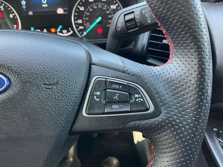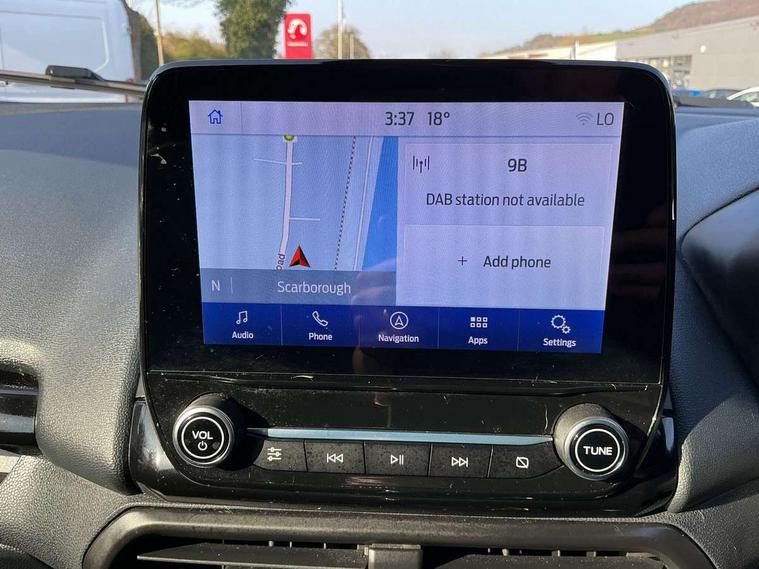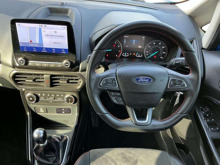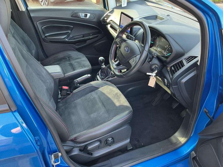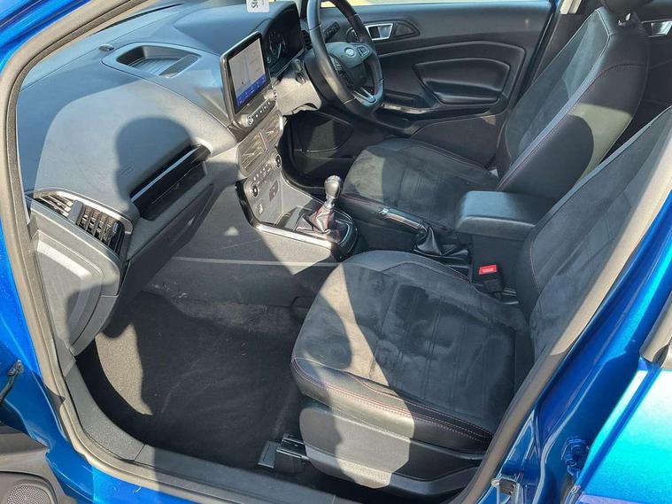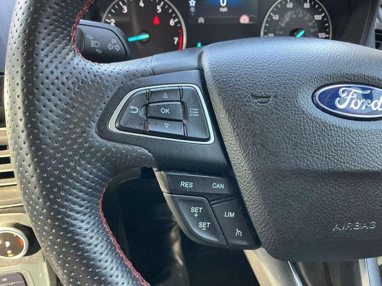 Cruise control, e-Call (emergency call), Easy fuel capless refuelling system, Ford SYNC 3 nav system with DAB radio, 8" screen, emergency assistance, Apple car play/Android auto, 2x USB, 6 speakers, Ford pass connect, Intelligent speed limiter, PAS, Rear parking sensors, Rear view camera, Traffic sign recognition, Trip computer, Sports suspension, Steering wheel mounted audio controls, Auto dimming rear view mirror, Automatic front wipers, Automatic headlights, Black roof rails, Body colour door handles, Body coloured bumpers, Chrome lower window surround, Electrically adjustable and heated door mirrors, Front fog lights, Front grille bars and surround in black, Headlight levelling control, Large rear roof spoiler, LED day running lights, LED third brake light, Power front and rear windows, Puddle lights, Quick-clear heated windscreen, Rear side wing doors, Rear wiper, ST Line body styling kit - Black headlamp bezel, front and rear sport bumpers, body colour lower door claddings, 12V socket in front and rear, 3 seat bench in 2nd row, 60/40 split rear seats, Ambient lighting, Centre console with sliding front armrest, Cooled glovebox, Courtesy lights with map reading light, Driver seat height/lumbar adjust, Driver's side glovebox, Driver/passenger sunvisors and lidded vanity mirrors, EATC - Electronic Auto Temperature control, Folding grab handles, Front head restraints, Front seat back map pockets, Illuminated glovebox, Illuminated luggage compartment, Isofix system on outer rear seats, Luggage compartment carpet, Neosuede/Partial sensico leather upholstery, Overhead console with sunglasses holder, Rake adjustable rear seats, Reach + rake adjustable steering column, Rear headrests, Sensico trimmed steering wheel, handbrake and gearshift gaiter with red stitching, Single front passenger seat, ST-Line Front floor mats with red stitching, Stainless steel sports pedals, Storage drawers under front seats, Tie down hooks, Variable boot floor, 3x3 point rear seatbelts, ABS, Autonomous emergency braking, Child locks on rear doors, Curtain airbags, Driver airbag, Drivers knee airbag, Electronic Stability Programme with hill launch assist, Front passenger airbag deactivation, Front side airbags, Passenger airbag, Pre collision assist system with AEB, Seatbelt reminder for driver and front passenger, Traction control, Tyre pressure monitoring system, Immobiliser, MyKey system, Remote central locking, Thatcham 1 volume sensing alarm, Low rolling resistance tyres, Tyre inflation kit,