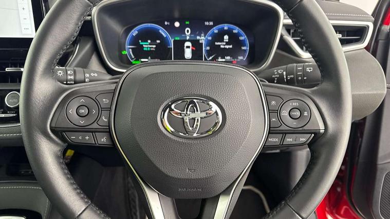 10.5" Multimedia display screen, 12.3" multi information screen, Adjustable speed limiter, Blind spot monitor and safe exit assist, Bluetooth telephone connectivity, Clock audio and meter, Colour multi information display with 3D, Connected car functionality upgrade, tracker, remote status and e-care, Drive mode select (Eco, Normal), Driver attention assist, E-call, Electrically assisted power steering, EV drive indicator, Front and rear parking sensors, Gear position indicator with meter, Head up Display, Hybrid system indicator, Intelligent adaptive cruise control, Intelligent parking assist, Key reminder warning, Lane Departure Alert (LDA) switch on steering wheel, Lane departure alert - LDA, Lane trace assist, Memory on adjustable speed limiter, MyT connected services, Pre collision system with Acceleration Suppression, Emergency Steering Assist, pedestrian , Oncoming vehicle and Intersection detection, Proactive driving assist (PDA), Rear cross traffic alert, Rear view camera with guidelines, Road sign assist - RSA, Smart entry and push button start, Smartphone integration with Apple CarPlay and wired android auto, Speedometer, Toyota remote services, Toyota smart connect multimedia system, Wireless charger, Catalytic converter, Double wishbone rear suspension, Electric accelerator pedal, Front and rear stabilizers, Front differential 3.193, Gasoline particulate filter, MacPherson front suspension, Vehicle Stability Control (VSC), DAB Digital radio, JBL Premium sound system with 8 speakers, Smart voice assist/ Voice recognition, Toyota touch 2 with go navigation, USB connector, 20% privacy rear side and quarter glass, A - Pillar garnish, Adaptive automatic high beam system (AHS), Aluminium roof rails, Anti-jam protection on power windows, Auto dimming rear view mirror, Auto headlight levelling system, Auto headlights, Auto up and down function on all power windows, Automatic folding mirrors, B - Pillar in Black, Black door moulding, Black metallic meshed front grille, Black side air vents, Black toyota logo in front, Body colour rear roof spoiler, Body coloured door mirrors, Body coloured front spoiler, Body coloured outside door handles, Body coloured rear bumpers, Ethanol washer fluid, Follow me home headlights, Front and rear fender high liner, Front bumper, Fuel caution label, Gloss black diffuser, Gloss black upper front grille, Height memory opening on power tailgate, LED daytime running lights, LED front fog lights, LED High mounted stop light, LED multi beam headlights, LED rear combi lights with LED lightguide, Light remind warning with auto cut off, Lower back and back door plated garnish, Noise reduction layer on front windows, Noise reduction layer on windscreen, Paint protective wrap guard, Power adjustable heated door mirrors, Power front windows, Power rear windows, Power tailgate with kick sensor, Rain sensing wipers, Rear bumper decoration with chrome plated inserts, Rear privacy windows, Rear side wing doors, Rear under guard with chrome ornament, Rear window defogger, Rear window wiper, Remote tailgate release on key, Reverse tilting door mirrors, RHD aimed headlight levelling system, Satin chrome insert on front door assist grips, Satin chrome inserts on rear passenger air vents, Satin chrome surround on lower front grille, Shark fin antenna, Single exhaust tailpipe, Tailgate release with push button, Tailgate remote release in cabin, Time adjustment on intermittent wiper, Turning signal integrated indicators in door mirrors, Unique grille pattern, Unique lower skirt, UV-filter on driver and passenger windows, 12v power outlet - front, 12v power outlet - luggage side, 2 Shopping bag hooks in luggage compartment, 3 rear height adjustable headrests, 3 seat bench in 2nd row, 3 spoke leather steering wheel with satin insert/black stitching + gear knob, 4 tie down hooks in luggage compartment, 60/40 split folding rear seat, Adaptive cruise control (ACC) switch on steering wheel, Adjustable speed limiter switch on steering wheel, Aluminium door scuff plates with corolla batch, Audio, multi-info and telephone switches on steering wheel, Automatic light control system, Black armrest on centre console box, Black front door assist grips, Black out with door sash and wheel house, Boot underfloor storage, Center console cover, Clean air filter, Driver and front passenger personal light, Driver and passenger seatback pockets, Driver and passenger sun visor with mirror and light, Dual level deckboard, Dual mike in roof, Dual sided boot floor, Dual zone automatic air conditioning with ECO mode switch, Forward tilting 2nd row seats, Front and rear bottle holders, Front and rear door pockets, Front console box with stitching, Front floor mats, Front head restraints, Front overhead assist grips, Front passenger seat, Front sliding synthetic leather armrest, Front sports seats, Gloss black gear shift console, Heated front seats, Heated rear duct, Illuminated entry system in room lamp, ISOFIX child restraint system, Leather gear shift with satin chrome on gear shift console, LED boot light, Luggage utility boot rails, Manual height adjustable for driver and front passenger seat, Manual tilt and telescopic steering wheel, Manually sliding driver seat, Manually sliding front passenger seat, Nanoe-X air purifier, Paddle shifts, Perforated leather upholstery, Pollen filter, Power adjustable lumbar support on driver seat, Power window switches with satin chrome inserts, PVC door armrest, Rear air vents, Rear armrest with 2 cupholders, Rear fabric floor mats, Rear overhead assist grips, Rear passenger coat hooks (2), Rear passenger personal lights, Refrigerant correspondent hf01234f, Regulation compliancy wvta label +, Remote air conditioning, Remote controlled Toyota easy flat system, Retractable tonneau cover with luggage partition net, Satin chrome inserts on centre air vents, Satin chrome inside door handles, Satin chrome surround on heater control panel, Satin chrome surround on mult