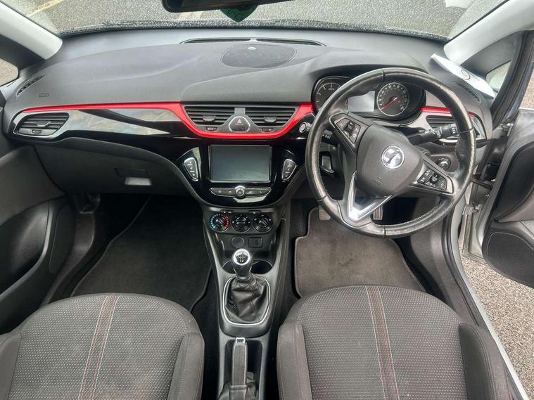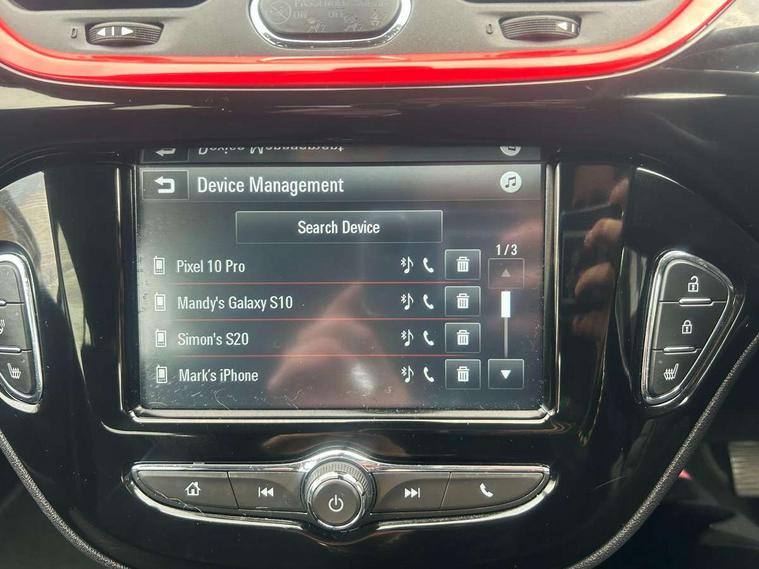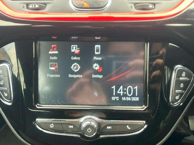 Apple car play/Android Auto, Bluetooth system, Central facia display, Cruise control + speed limiter, Digital fuel gauge with low fuel warning light, Digital water temperature gauge, Electric speed sensitive power steering, Exterior temperature gauge, Lights on audible warning, Navi 4.0 IntelliLink navigation with 7" touchscreen, traffic program, DAB , USB, Bluetooth audio streaming, Apple CarPlay/Android auto, and microphone, Rev counter, Service indicator, Speed warning indicator, Speedometer, Trip computer, White graphics on black background, Front anti roll bar, Sports suspension, Six speakers, Steering wheel mounted audio/cruise controls, Automatically dimming anti dazzle rear view mirror, Black door mirrors, Black foil on B-pillars, Black front grille logo bar, Black roof, Body colour bumpers, Body colour door handles, Chrome front grille, Dark tinted rear windows, Dipping rear view mirror, Door to door illumination, Electric adjustable/manual folding door mirrors (wide angle on driver's side), Electric headlight beam leveling, Electrically operated front windows with safety auto reverse/one touch facility, Front fog lights with black surround, Front fog lights with chrome surrounds, Griffin badges, Halogen headlights, Hazard warning lamps, Headlamp levelling, Heated rear window, Heated windscreen, High level LED centre brake light, Intermittent rear wash/wipe, Laminated windscreen, LED daytime running lights, Mineral black door mirror housings, Rain sensitive windscreen wipers, Rear fog lights, Rear wiper, Side window demist vents, Tinted windows, Two speed windscreen wipers with variable intermittent wipe, Welcome lighting, Windscreen demist vents, 12V electrical accessory socket in front, 3 spoke steering wheel, Air conditioning, Anti submarining ramps in all seats, Centre console with cupholders, Chrome gear knob, Chrome interior door handles, Comfort front seats, Driver's and front passenger's sunvisors, Driver's and front passenger's tiltable assist handles, Driver's and passenger's vanity mirrors with flip up cover, Driver's vanity mirror, Four adjustable facia vents, Front courtesy lights, Front door pockets, Front map reading lights, Front seat belt pre-tensioners with load limiters, Glovebox with lid, Grab handles, Griffin branded floor mats, Heated front seats, Height adjustable driver's seat, Height adjustable front headrests, Height adjustable rear head restraints with adjustable backrest, Illuminated luggage compartment, Instrument panel light dimmer, Interior tailgate handles, Isofix child seat mounting points on outer rear seats, Lace cloth trim, Load restraining lashing points, Luggage compartment cover, Multi function steering wheel, One piece folding rear seat, Pollen filter, Reach + rake adjustable steering column, Rear courtesy lights, Rear door pockets, Rear reading lights, Reclining front seats, Sports front seats, Storage box on driver's side lower facia, Stowage facility for luggage compartment cover behind rear seats, Twin gas assisted tailgate struts, Two rear tiltable passenger assist handles, Sight and light Pack - Corsa, Winter pack - Corsa, Anti-lock braking system (ABS), Brake assist function, Electronic brake force distribution, Electronic Stability Programme, Energy absorbing steering column, Front and rear seatbelt reminder, Front and rear seatbelt unfastened audible warning and warning light, Front seatbelt force limiters, Gas pressure dampers, Height adjustable front seatbelts, Hill start assist, Manual passenger airbag deactivation function, Pedal release system, Rear child proof door locks, Reinforced passenger safety cell, Side impact protection beams, Six airbags - Driver's dual stage airbag/front passenger's dual stage airbag/front seat side impact airbags/full size curtain airbags, Three 3 point rear seatbelts, Three inertia reel lap/diagonal seatbelts, Traction control, Tyre pressure monitoring system, Electronically protected audio, Engine Immobiliser & Deadlocks, Key left in ignition audible warning, Locking wheel bolts, Remote control central locking, Visible vehicle identification number, Rhutenium facia with chrome effect inserts, 16" 4 twin spoke black alloy wheels, Tyre inflation kit,