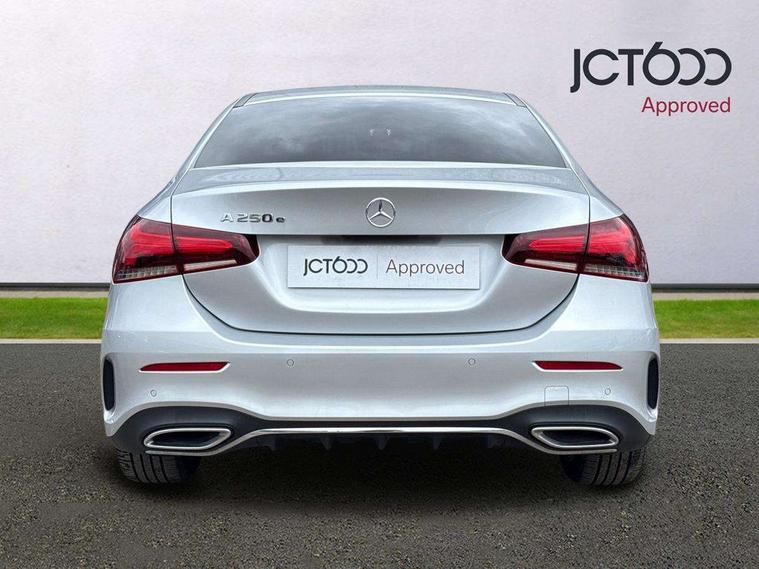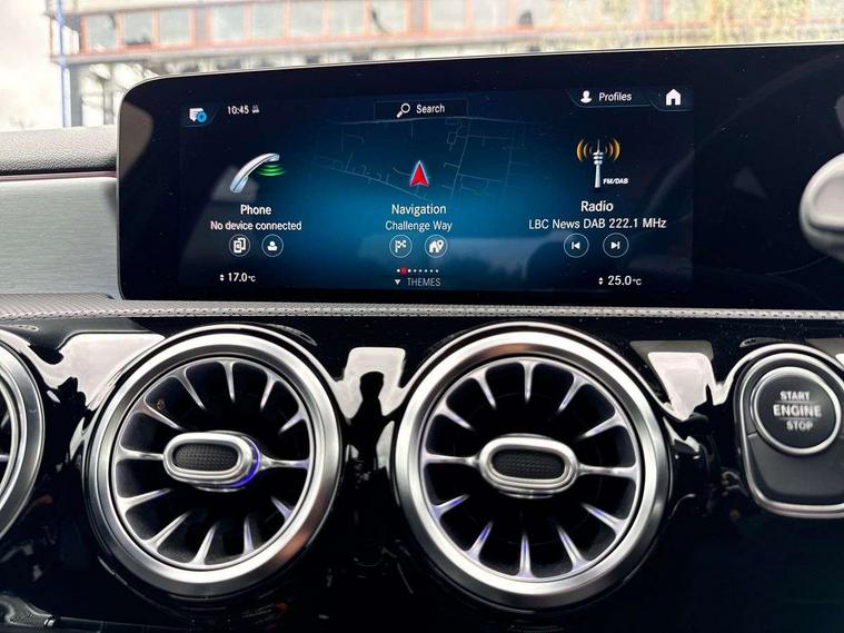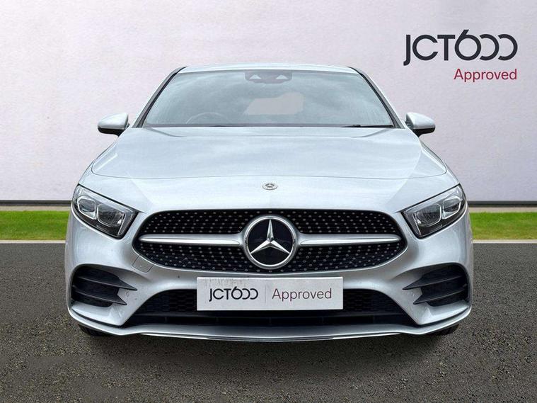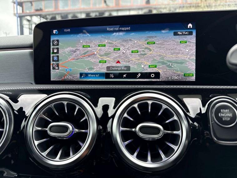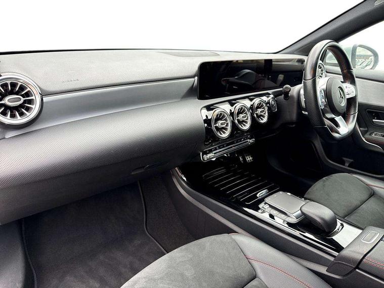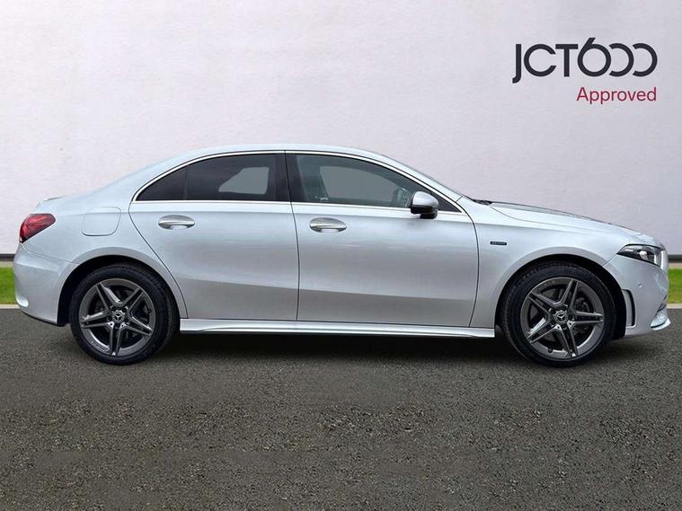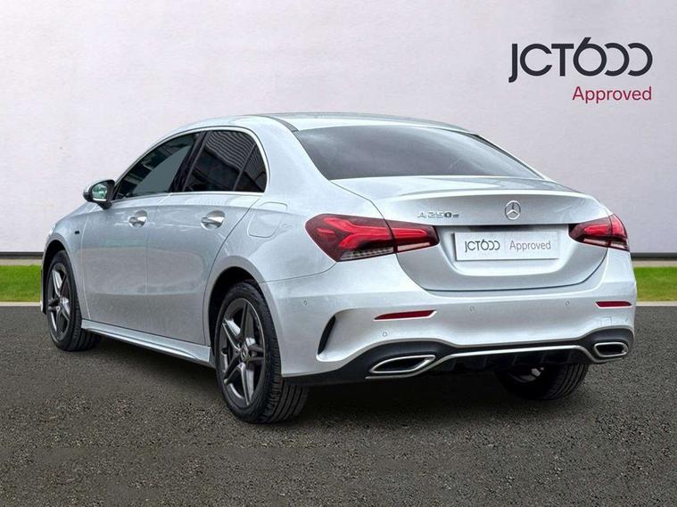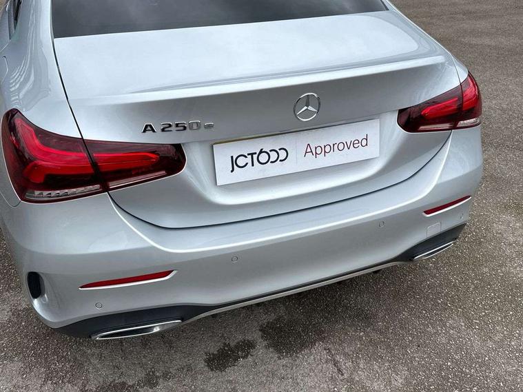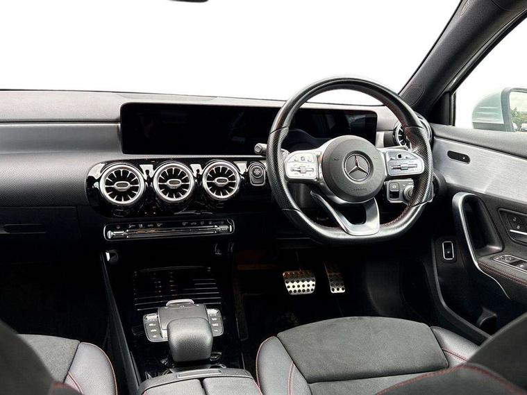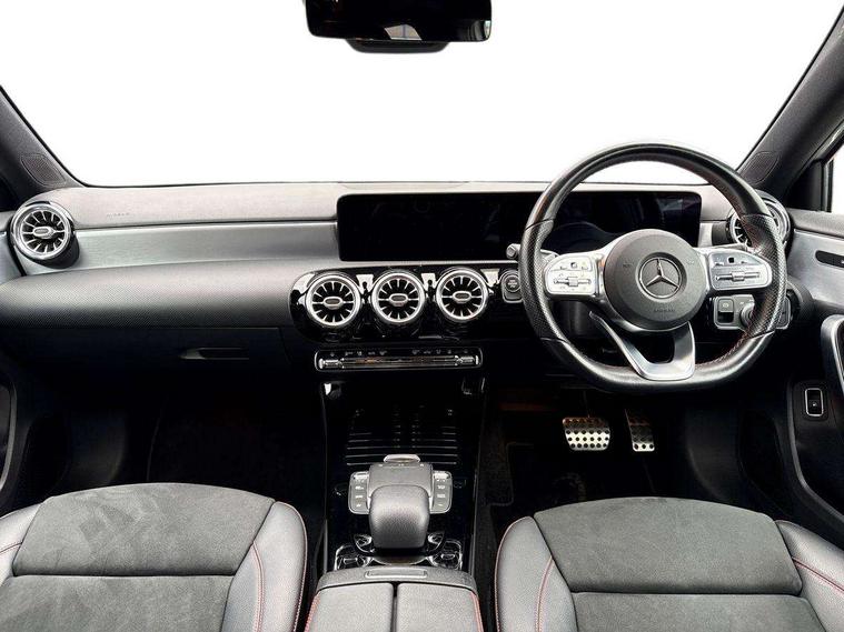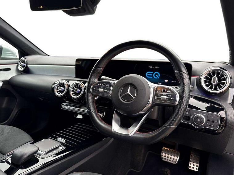 10.25" Digital instrument cluster display screen, 10.25" media display, 180 degree rear view camera with parking guidelines, Acoustic ambient protection, Active lane keep assist, Active park assist with parktronic system including front and rear parking sensors, Attention assist, Brake pad wear indicator warning light, Car wash mode, Cruise control + speed limiter, Direct steering, Dual bluetooth interfaces, DYNAMIC SELECT with a choice of driving modes (ECO, Comfort, Sport and Individual), ECO start/stop function, Fluid level warning indicator for fuel, oil, coolant and washer fluid, Hard-disk navigation, Hey Mercedes Voice activation, Lamp failure indicator, MBUX augmented reality for navigation, Mercedes me connect including emergency call system, accident recovery, breakdown and maintenance management, Outside temperature gauge, Owners manual in English, Pre-installation for private car sharing, Pre-installation for Vehicle Monitoring, Pre-installation for Vehicle Setup, Preinstallation for Mercedes Benz link, Service indicator (ASSYST), Smartphone integration with Apple CarPlay and Android auto, Speed sensitive power steering, Trip computer, Wireless charging, 7.4 kW monophase on board charger, Comfort suspension, Mode 3 charging cable 11 kW, Rear axle multi-link, 10 speakers, 2 USB ports (type C) in rear stowage compartment and one in front of center console, DAB Digital radio, MBUX multimedia system with DAB digital radio and touchpad including satellite navigation, Mercedes-Benz advanced sound system - 225W, 4 Electric Front and Rear windows, Adaptive brake lights, AMG bodystyling - Front apron with splitter in chrome, rear apron with chrome trim and chrome visible trim elements in tailpipe, Black weather strip, Body colour bumpers, Body colour door handles, Body colour side skirt, Body coloured door mirrors, Chrome beltline trim, Diamond radiator grille with chrome pins and silver louvre + chrome insert, Electric adjustable and heated door mirrors with integrated LED side indicators, EQ badging, Exhaust system - Twin visible tailpipes in polished stainless steel, Headlamp assist automatic headlamp activation, Heated glass rear windscreen + timer control, Illuminated front door sill panels with Mercedes-Benz lettering, LED high performance headlamps with integrated LED daytime running lights, LED tail lamp, LED third brake light, Privacy glass, Radio aerial, Rain sensing windscreen wipers with two sensitivity settings, Rear fog lights, Window line trim strip in chrome, 3 Spoke flat bottom leather multi function steering wheel with perforated leather in grip area, 40:20:40 split folding rear seats, Artico man-made leather/Microfibre Dinamica upholstery with red contrast stitching, Auto Mercedes-Benz child seat recognition sensor, Black air vents with surround in silver chrome, Black roof lining, Brushed stainless steel sports pedals with rubber studs, Charging socket, Controller on centre console with chrome surround, Floor mats with stitched edging and AMG lettering, Front centre armrest with storage compartment, Front seat backs luggage nets, Front seat cushion length adjustment, Front sports seats with adjustable head restraints, Galvanished gear shift paddles on steering wheel, Heated front seats, Height/reach adjustable steering column, Interior lighting - 64 colour Ambient lighting, Interior mirror with reading lamps in black and frameless, Manual height adjustable front seats, Pre-entry climate control, Rear armrest with 2 cupholders, Rear head restraints, Seat occupancy sensor for front passenger seat, Stowage compartment in centre console with retractable cover, Sunvisors with illuminated vanity mirrors, Touchpad on center console, Twin front cupholders, Two zone thermotronic luxury automatic climate control, Light and sight pack - A Class, Mirror package - A Class, Seat comfort pack - A Class, 3 rear 3 point seatbelts, ABS with Brake Assist, Active bonnet, Active brake assist includes forward collision warning system with autonomous braking, Adaptive brake assist with hold function and hill start assist, Black seatbelts, Childproof locks manually operated for rear doors and electrically operated for rear power windows, Crash responsive emergency lighting, Driver and passenger head and side airbags, Drivers knee airbag, Dual stage driver/passenger airbags, Electronic parking brake, ESP curve dynamic assist, ESP with ASR, Front and rear seatbelt reminder, Front brake callipers with Mercedes Benz lettering, ISOFIX and top tether child seat fixing points in two outer rear seats, Perforated front brake discs, Radar based regeneration, Tyre pressure monitoring system, Warning triangle and first aid kit, Window airbags, Alarm system/interior protection/immobiliser, Keyless entry lock/unlock, Keyless Go, Remote central locking and crash sensor with emergency opening function, Urban guard vehicle protection system with immobiliser and interior protection, Light aluminium with longitudinal grain interior trim, 18" AMG 5 twin spoke light alloy wheels in titanium grey with highsheen finish, Summer tyres, Tirefit sealant kit,