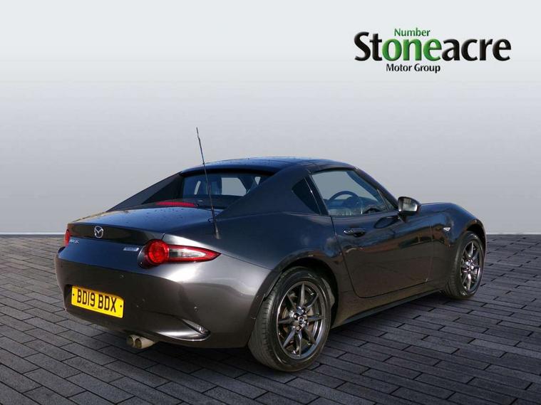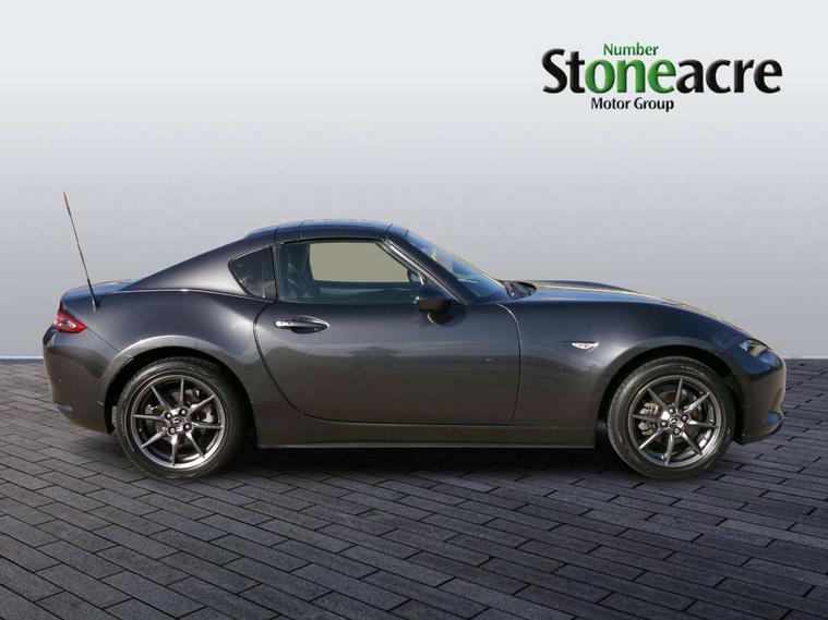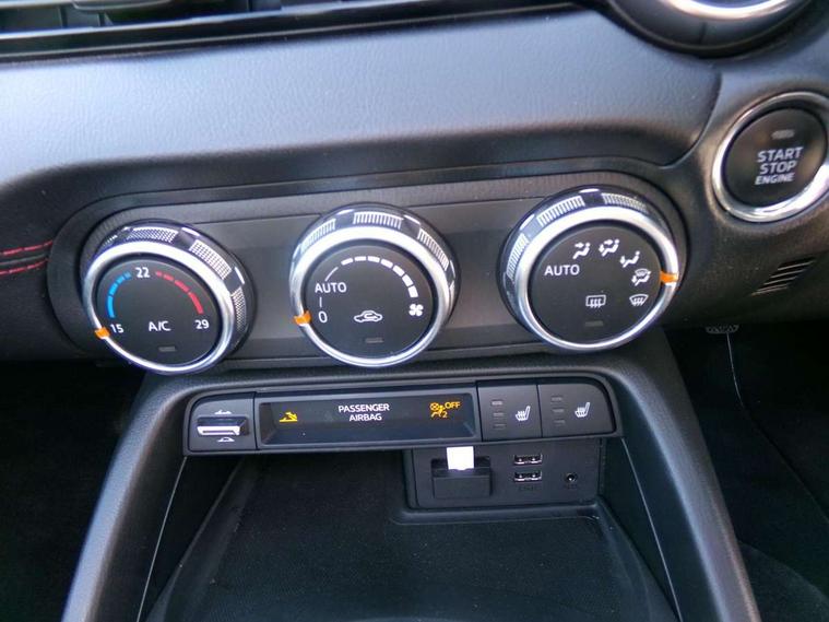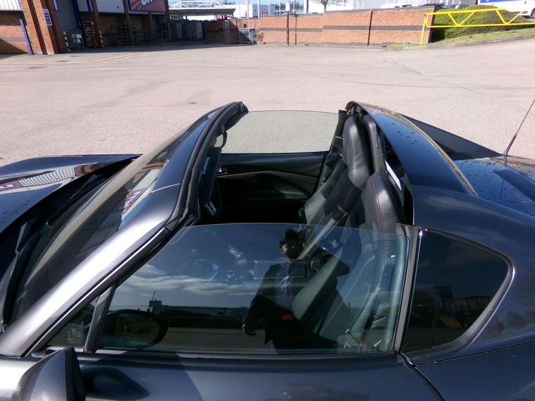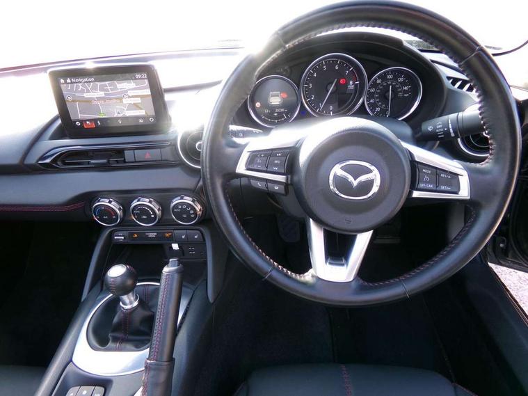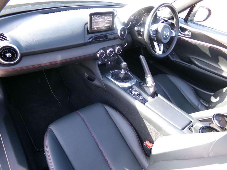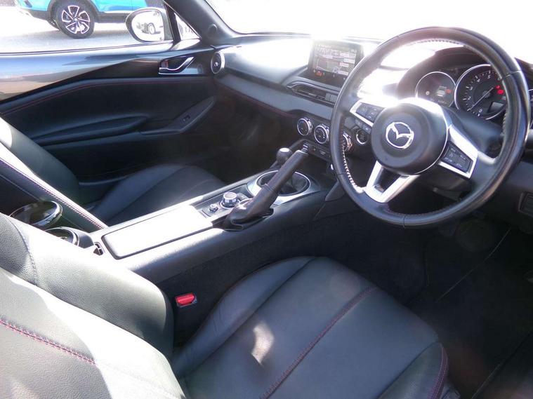 7" touchscreen with multimedia commander, Aha and stitcher app, Analogue speedometer, Cruise control + speed limiter, Driver alert system, Electronic odometer, Engine start/stop button, Hands free phone preparation, Lane departure warning system, PAS, Rear parking sensor, Remote boot release, Satellite navigation system, Tachometer, Traffic sign recognition, Trip computer, Water temperature gauge, I-ELOOP, i-stop, 2 USB/aux input socket, Premium Bose sound system with 9 speakers with 2 in each front headrest, AM/FM/DAB radio and single CD/MP3, Steering wheel audio and Bluetooth controls, Adaptive front lighting system, Auto dimming rear view mirror, Automatic headlamp levelling, Body colour bumpers, Body coloured electric/heated door mirrors, Coming/leaving home lighting function, Dual exhaust pipes, Dusk sensitive headlamps, Electric front windows/one touch facility, Electrically operated body colour retractable hard top with heated rear glass window, High mounted rear brake light with Black coloured cover, LED daytime running lights, LED Headlights, Piano Black fashion bars, Rain sensing front wipers, 12V socket, Body coloured inner door trims, Centre console storage box, Chrome Air conditioning dials, Climate control air conditioning, Coin Box, Cupholders, Driver/ passenger seat manual slide, recline and tilt adjustment, Driver/passenger sunvisors with ticket holders + vanity mirrors, Front centre armrest, Front head restraints, Gear shift indicator, Heated front seats, in 3 heat levels, ISOFIX front passenger seat child seat compliance, Leather gear knob, Leather handbrake lever, Leather steering wheel, Lockable rear storage box, Sports seats, Tilt/telescopic steering column, Windblocker, 3 point ELR front seatbelts with pretensioners, ABS+Electronic Brake force Distribution, Deployable Hood System (DHS), DSTC-Dynamic Stability and Traction Control, Dual front airbags, Fasten seatbelt reminder, Hill hold assist, Manual passenger airbag deactivation function, Passenger airbag deactivate switch, Rear smart city brake support, Side airbags, Smart City Brake Support - SCBS, Tyre pressure monitor, Deadlock, Remote central door locking, Smart keyless entry, Thatcham category 1 alarm + immobiliser, Black vinyl leather dashboard panel, Chrome air vent surrounds, Chrome meter rings, 16" Bright finish alloy wheels, Tyre puncture repair kit,