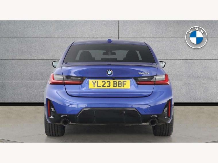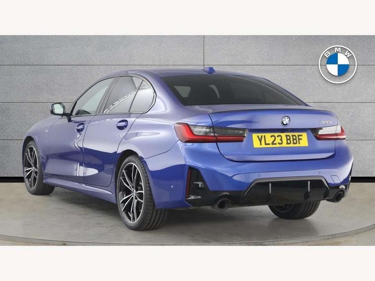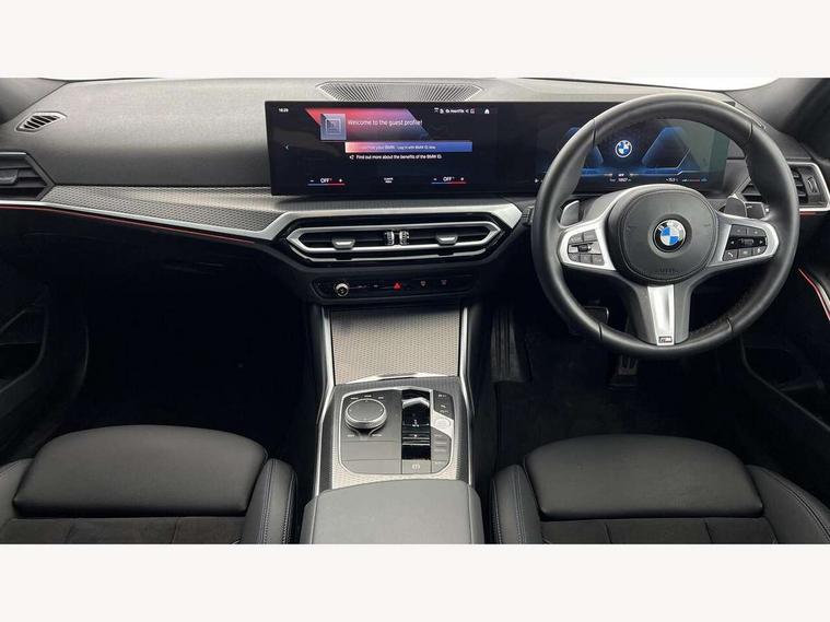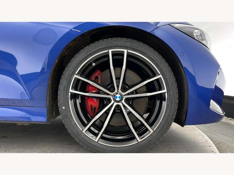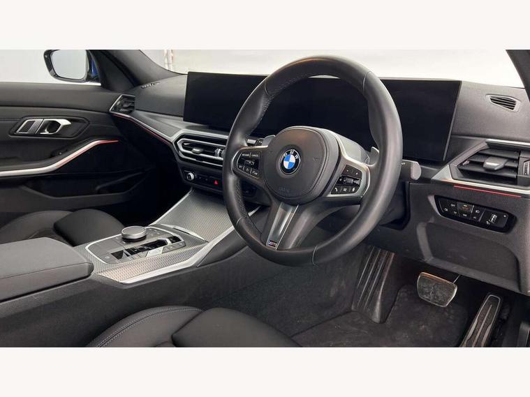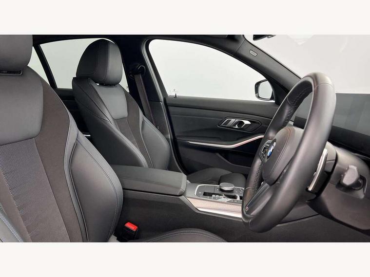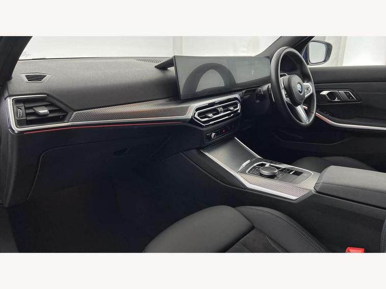 Active guard plus, Attentiveness assist, Automatic Start/stop button, BMW iDrive, BMW Teleservices, Condition based service, ConnectedDrive Services, Driving experience switch, Live cockpit plus with Navigation + 12.3" instrument display + 14.9" display, Intelligent voice assist, 2 USB, 4G LTE connect, Oil sensor for level and grade, Preparation for driver assistance, Shifting point display, Variable sport steering, Double joint spring strut front axle, Electronic differential lock control (EDLC), Fuel tank breather system, M sport suspension, Sport automatic transmission with steering-wheel mounted gearshift paddles and launch control, DAB tuner, 3rd brake light, Acoustic glazing, Automatic headlight beam throw control with load dependent regulating reaction, dynamic compensation of braking dive and acceleration squat, BMW emblem, engine compartment lid and tailgate, Body colour roof fin, Door sill strips, Electric windows - front and rear, with open/close fingertip control, anti-trap facility and comfort closing, Follow me home headlight function, Front and rear bumper system with replaceable deformation elements, Front apron plastic in body colour, Fuel filler flap - right rear in body colour, Heated washer jets, High gloss shadow line exterior trim, Illuminated bow type door handles in body colour drivers side with door lock, Interior rear view electrochromatic mirror with automatic anti dazzle function, LED headlights with LED daytime running lights and LED turn indicator, LED rear lights, Licence plate panel integrated into front bumper and tailgate, Matt black B-pillar finsher, Matt black window recess cover, Model designation on right side of tailgate, One piece front bumper cover including towing eye cover in body colour, Rain sensor with automatic headlight activation, Rear boot, Rear side wing doors, Reversing lights, Side frame decorative moulding black matt, Visible exhaust tailpipe finisher, Welcome lights in interior and door handle area, 12V power socket in front storage compartment, 2 front cupholder in centre console with clamping elements and matt black inlay, 3 seat bench in 2nd row, 3 zone automatic air conditioning, 40:20:40 split folding rear seat with loading system, Ambient inside door handle light, Ambient light design projected onto the left and right entering and exiting area, Ambient lighting front and rear with 9 selectable colours, Ambient storage compartment lighting in the centre console, Anthracite headlining, Armrest integrated in front and rear door trim + front centre console armrest, BMW ID, Contour lighting in instrument panel and door trim panel, Cruise control operation in steering wheel, Driver backrest width adjustment, Folding rear centre armrest with 2 cupholders, Front and rear ambient footwell lighting, Front and rear door exit lighting (left / right), Front and rear headrests, Front and rear reading lights, Front and rear velour floor mats, Front sport seats, Heated front seats, Height adjustable mechanically and infinitely variable steering column, Illuminated armrest storage compartment, Illuminated glove compartment, Illuminated luggage compartment, Lashing eyelets in luggage compartment, M Sport multifunction leather steering wheel, Make-up mirror lights, Single front passenger seat, Standard seat for driver and passenger with manual adjustment, Sunvisors with vanity mirrors and ticket pocket, Toolkit located in luggage compartment, Connected pack professional - 3 Series Saloon/Touring, Interior and exterior mirror pack - 3 Series Touring/Saloon, M Aerodynamics package - 3 Series Saloon/Touring, M sport exterior styling pack - 3 Series Saloon/Touring, Storage compartment pack - 3 Series Saloon/Touring, 3x3 point rear seatbelts, BMW emergency call, Child locks on rear doors, Crash sensor activating of airbags, Unlocking doors, hazard warning lights, interior light, safety battery terminal, Driver and front passenger with seat occupancy detection for driver's and passenger side, Driver and passenger side airbags, body protection at side and airbags deploy from seat backrests, Dynamic brake control, Dynamic stability control + (DSC+) - Anti-lock Braking System (ABS) with brake assist and cornering brake control + Automatic Stability Control (ASC), Dynamic Traction Control - DTC, Electric parking brake including automatic hold function and automatic release of the parking brake when driving off, Head airbags in 1st and 2nd row, head protection at side, curtain airbags open from headliner above 1st and 2nd row, Plastic fuel tank, Side impact protection, Tyre pressure monitoring with three level warning strategy, Ventilated front and rear disc brakes, Warning triangle and first aid kit, Alarm system, Centre lock switch, Closing system with central locking, Electronic vehicle immobiliser,