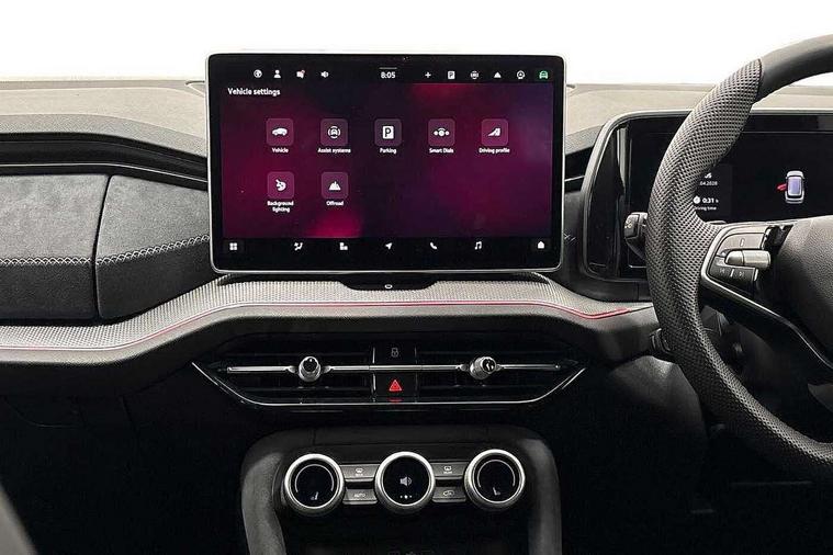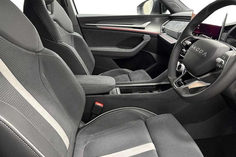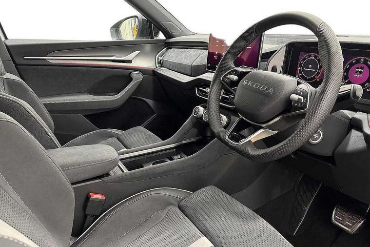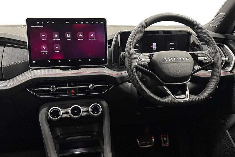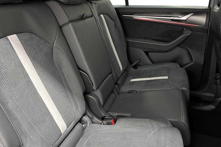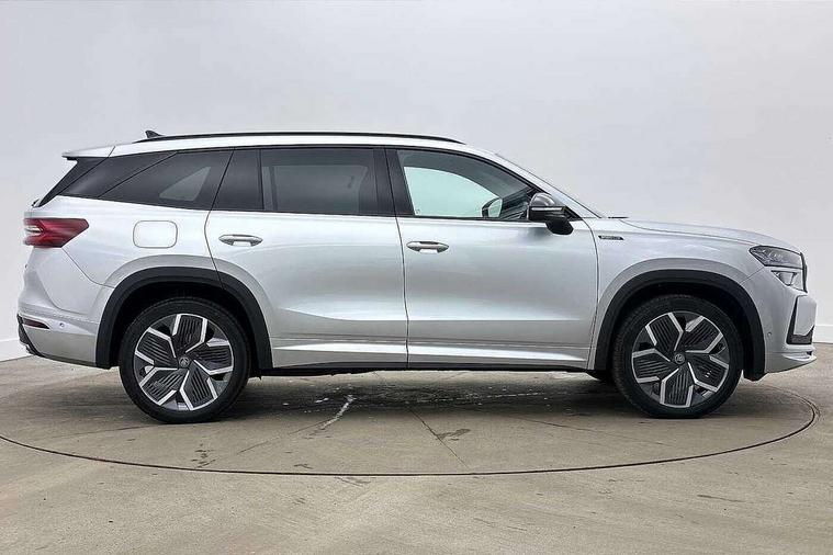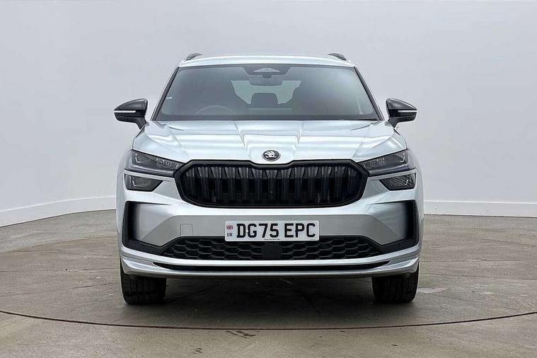 13" satellite navigation touchscreen display, Blind spot detection with door exit warning, Bluetooth system, ChatGPT functionality, Driver alert - Fatigue and drowsiness monitor, Dry display cleaner, Emergency call, Front and rear parking sensors, Front cross traffic assist, Lane assist, Off road modes, PAS, Rear traffic assist, Tailgate unlocking from outside, Traffic sign recognition, USB C Port x 2 in front centre console, Virtual Cockpit - 10.25" digital display, Voice control system, Wireless charging for two smartphones (15W) with cooling function, Wireless SmartLink for Apple CarPlay and Android Auto, Stop/start function, 2x USB-C in the rear, DAB Digital radio, Aero front windscreen wipers with intermittent function, Auto dimming rear view mirror, AWL (all weather lighting) and all weather light with cornering function, Black diffuser and decorative tailpipe with a unique dark chrome finish, Black roof rails, Black sports styling including front grille and window surrounds, Black wheel arch surrounds, Body colour door handles, Cornering light and poor weather light, Electric folding /adjustable/separted heated/folding door mirrors, auto dimming with boarding sports and memory function, Electric front and rear windows, Exterior black decorative trims, Front and rear sports bumpers including lower rear chrome strip, Front grille with horizontal light strip, Gloss black door mirrors, Gloss black window frame and D pillar, Heat insulating glass in windshield, Heated rear window, Ice scraper in fuel tank cap, LED daytime running lights, LED matrix headlights with AFS and LED fog lights, LED rear light with welcome effect and dynamic turn signals, LED third brake light in rear spoiler, Light assistant with automatic headlight control and coming home feature, Logo projection in door mirrors, Multiple matrix beam, Privacy glass, Rear roof spoiler, Rear side wing doors, Rear window wiper, Red decorative strip between rear LED lights, Safety reflectors on front and rear doors, Sportline badge on front fenders, Tailgate lettering in Black, Unique dark chrome design logo on alloy wheels, Window control switches with black trim, Windscreen wipers with rain sensor, Without engine designation, 1.5l bottle holder points in all door, 1x centre rear reading light, 2 seat bench in 3rd row, 3 configurable smart dials with 32mm coloured display, 3 seat bench in 2nd row, 3 spoke multi-function heated leather sports steering wheel with paddle shift, 4 foldable roof handles with rear coat hooks, Aluminium pedals, Ambient interior lighting - Dashboard, front-door stowage compartments, front and rear door panels and footwell lighting, Automatic gear selector on steering column, Chrome interior door handles, Driver/front passenger reading lights, Fabric headlining, Fixed bench 40:60:40 split folding backrests, Front and rear floor mats, Front centre armrest with jumbo box storage compartment, cup holder and 12V socket, Front sport seats, Height adjustable front headrests, Interior black decorative trims, Isofix child seat fittings in outer middle row rear seats and front passenger with top tether, Manually adjustable steering column, Pollen filter, Rear centre armrest with cupholders, Rear seat boot backrest release, Single front passenger seat, Skoda lettering on steering wheel, Storage pocket including mobile phone pockets on the backs of the front seats, Sunvisors with illuminated vanity mirrors, Three rear height adjustable headrests, Ticket holder on A Pillar, Tri zone climate control, Umbrella in door panel x1 made from sustainable materials, Upper and lower glovebox with card holder and coin compartment, USB C port by rear view mirror for charging only (15W), Acoustic package - Kodiaq, Performance package - Kodiaq, Sportline design selection pack - Kodiaq, Auto door release and activation of warning lights in the event of an accident, Driver and front passenger airbag with knee airbag and front passenger airbag deactivation, Electric child locks, Electronic parking brake, ESC (incl. ABS+EMD+MSR+ASR+EDL+HBA+DSR+RBS+ESBS+MCB+TSA+XDS), Front assist with braking reaction to vehicles, pedestrians and cyclists, Front disc brakes, Fuel cut off safety device, Height adjustable front 3 point seatbelts + pretensioners, Hill hold assist, Junction assist with automatic emergency braking, Rear disc brakes, Safety vest holder in door, Seat belt reminder for all seats, Three point rear seat belts, Two tone horn, Tyre pressure monitor, Alarm with interior monitoring and tilt sensor with safe function, Anti-theft wheel bolts, Immobiliser, Remote central locking with 2 keys, 20" Rila anthacite polished alloy wheel with black matte aero covers,