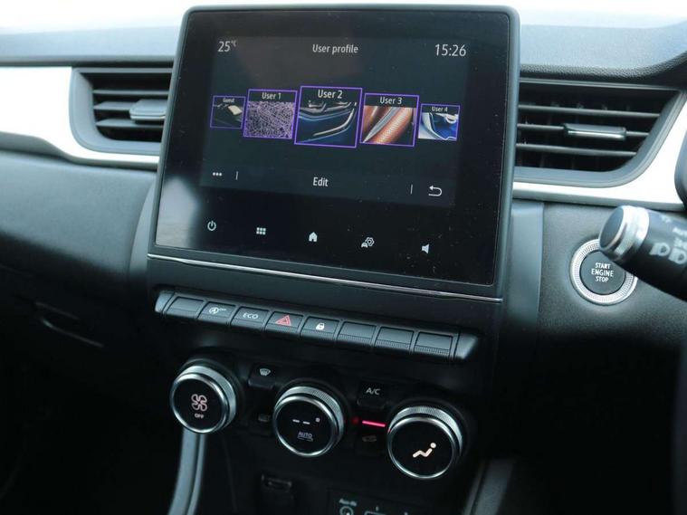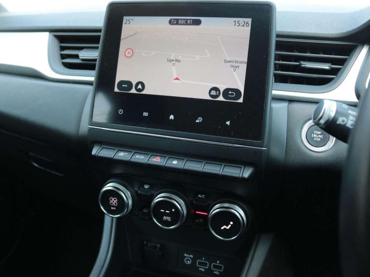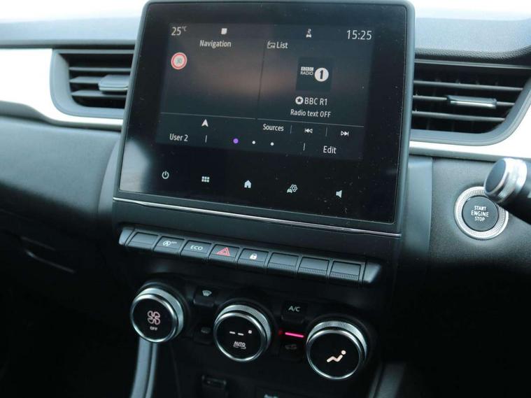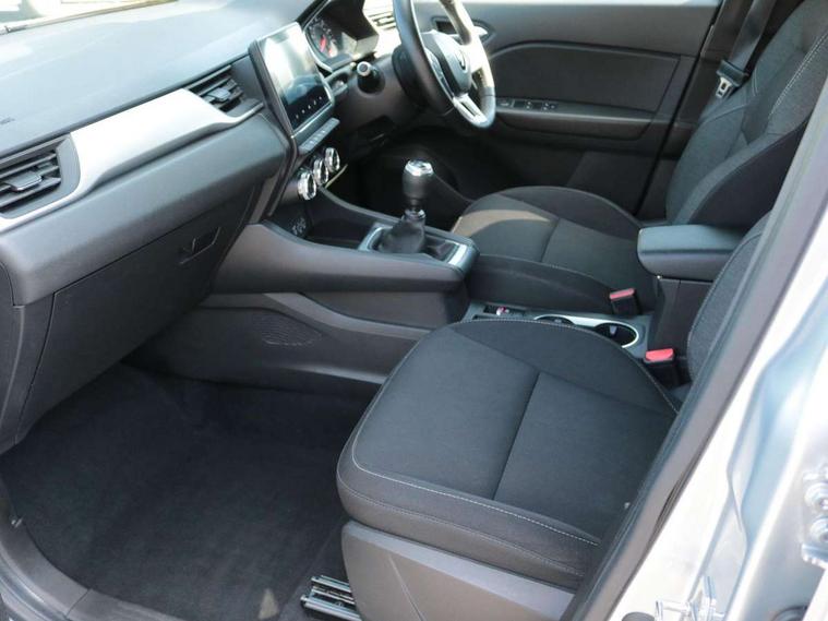 4.2" TFT Driver information display, Cruise control + speed limiter, eCall emergency call system, Eco mode, Gear change indicator, Lane departure warning system, Lane keep assist, Renault automatic emergency assist, Traffic sign recognition, Trip computer, Variable assistance power steering, EasyLink Nav 7" touchscreen, 4x20W amp, FM DAB, sound auditorium, 2xUSB, 1xJack, Bluetooth, smartphone integration plus, Apple carplay/Android auto, Automatic front wipers with rain sensors, Automatic headlights, Body colour door handles, Body coloured bumpers, Body coloured door mirrors, Electric adjustable/heated/folding door mirrors, Electric front windows + one touch + anti-pinch, Electric rear windows, Extra tinted glass in rear windows and tailgate, Full LED front and rear headlamps integrating daytime running lights at the front and rear, Gloss black side door protection with chrome effect, LED front fog lights, Rear fog lights, Rear wiper, Roof bars, Variable speed on front windscreen wipers, 12V Accessory socket, 3 rear headrests, 5.2L front glovebox, 60/40 split folding rear seat bench, Automatic climate control with one touch demist function, Centre console storage tray, Cloth upholstery, Front head restraints, Heating system with pollen filter, Height adjustable driver's seat, Height/reach adjust steering wheel, ISOFIX child seat fixing points on rear outermost seats, Middle console with armrest and storage, Rear air vents, Synthetic leather steering wheel, 3 rear seatbelts, ABS+EBA, AEBS, Distance warning alert, Driver and front passenger, side, head and curtain airbags, Driver height adjustable seat belt, Electric parking brake, Electronic stability control, Front and rear no seatbelt warning sound, Front dash warning indicator in case of heavy braking, Front driver and passenger side airbag deactivation, Hill start assist, Rear door and window child locking function for rear door, Tyre pressure warning light, Anti drill door locks and locking fuel cap, Deadlocking system, Hands free keycard with push button and start/stop function, RAID (Renault Anti-Intruder Device) automatic door locking, Remote central locking with thatcham approved immobiliser, Black soft touch dashboard with black gloss air vent surrounds,