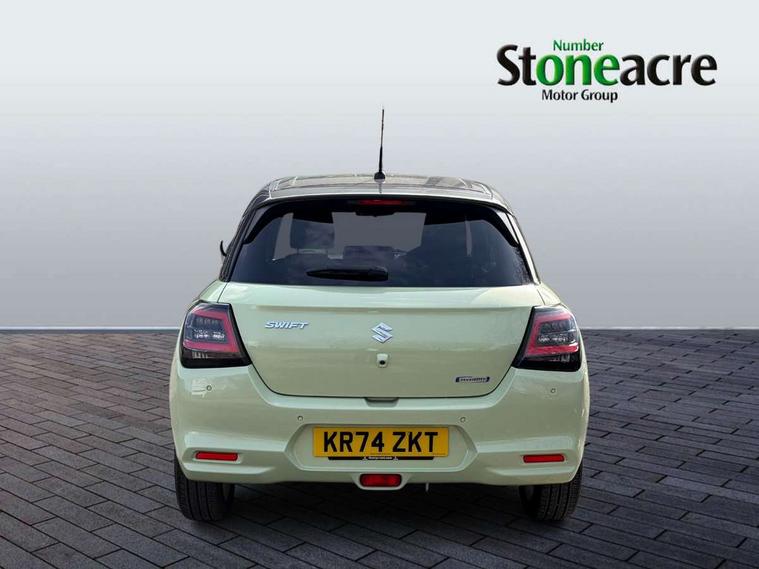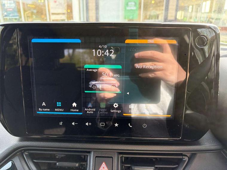 Adaptive cruise control with Stop and Go, Automatic start/stop system, Blind spot monitoring, Colour LCD information display, Digital clock, Driver monitoring system, eCall, Fuel consumption display (average/instantaneous) and range display, Intelligent speed control support, Lane departure prevention, Lane departure warning system, Lane keeping assist (LKA), Low fuel level warning light, Navigation system, Outside temperature display, PAS, Rear cross traffic alert, Rear parking camera, Rear parking sensors, Remote fuel cap release, Smartphone integration with Apple CarPlay and Android auto, Suzuki connect, Tailgate, Traffic sign recognition, Weaving alert, 4 speakers + 2 tweeters, 9-inch infotainment display, Auxiliary input socket, Bluetooth audio streaming, DAB Digital radio, Steering wheel audio controls, USB Type A and C, 'Guide me home' headlamps, 1 speed with intermittent rear wiper + washer, 2 speeds front wiper with intermittent + washer, Automatic headlights, Black coloured A & B pillars, Black Upper and lower front grille, Body colour door mirrors and handles, C pillar trim moulding, Electric door mirrors, Electric front windows, Electric rear windows, Green tinted glass, Heated door mirrors, High beam assist, LED daytime running lights, LED High mounted stop light, LED position lamps, LED projector headlamps, LED rear combination lamp, Manual headlamp level control, Rain sensor, Rear fog lights, Rear privacy glass, Rear side wing doors, Rear spoiler, Side spoiler, 1 cup holder in rear, 12V Accessory socket in front console, 2 cup holders in front, 2 Isofix seat anchors, 3 bench rear seats in 2nd row, 3 rear head restraints, 3 spoke leather covered steering wheel, 60/40 split rear seats, Accessory socket, Centre console storage, Centre lower box, Child seat tether anchorages x 2, Chrome handbrake release button, Chrome interior door handles, Cloth upholstery, Door pockets with bottle holder, Driver/passenger sunvisors with ticket holders + vanity mirrors, Front cabin lights, Front headrests, Front map light, Front passenger side assist grip, Glovebox, Heated front seats, Heater, Height adjustable driver's seat, Luggage area lamp, Manual air conditioning with digital control panel, Material door trim ornament, Parcel shelf, Passenger seat back pocket, Pollen filter, Single front passenger seat, Tilt adjustable steering wheel, Tilt/telescopic adjustable steering wheel, 3 point ELR seatbelts for centre seat, 3 point ELR seatbelts front and rear, ABS+EBD+Brake assist, Curtain airbags, Driver airbag, Dual sensor brake support, ESP + traction control, Front and rear seatbelt reminder, Front passenger airbag, Front passenger airbag deactivation, Front seatbelt pretensioners with force limiters, Hill hold control, Rear child proof door locks, Rear seatbelts with pre-tensioners and load limiters, Side airbags with incorporated into front seats, Tyre pressure indicator, Deadlocks, Freewheeling key cylinders, Immobiliser, Keyless entry and start, Light - on and Key in reminder, Locking wheel nuts, Remote central locking, Painted instrument panel ornament, 16" Painted alloy wheels,