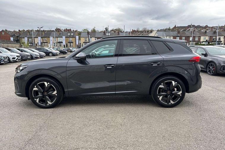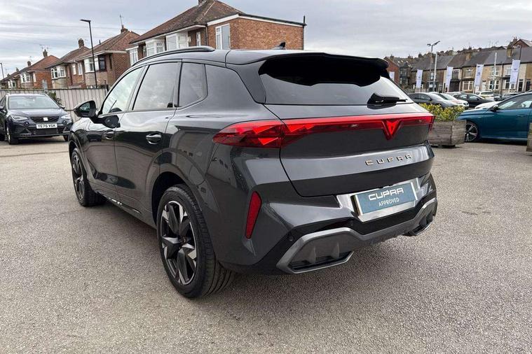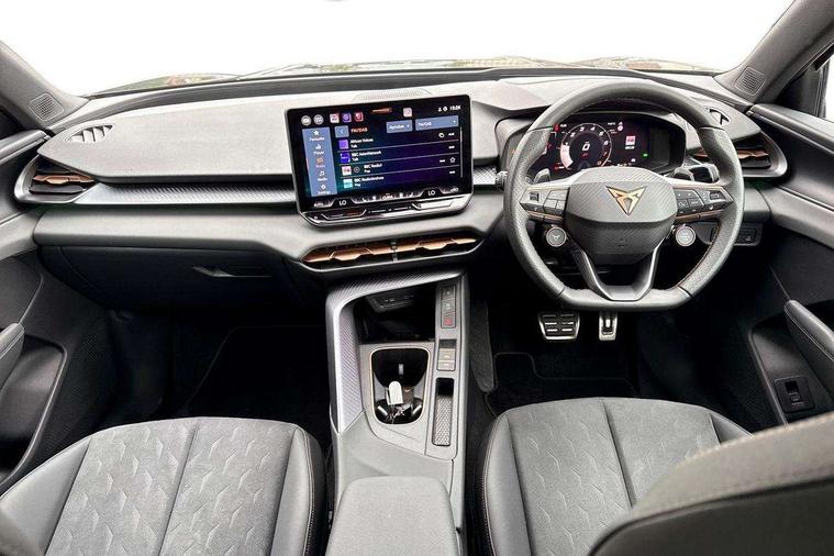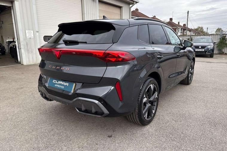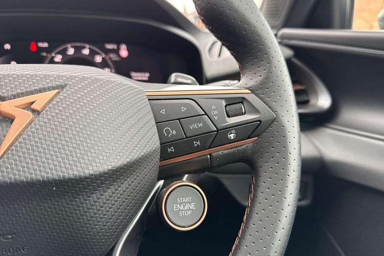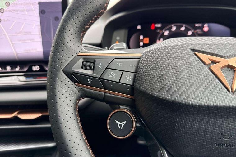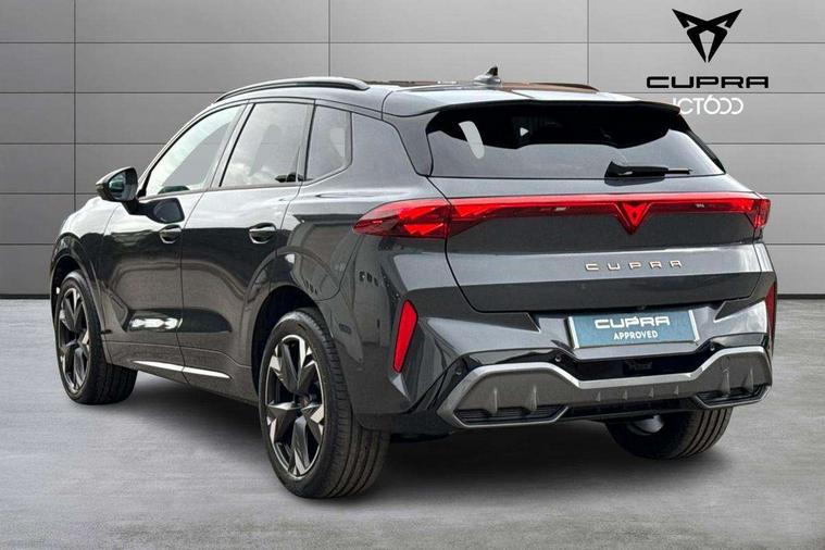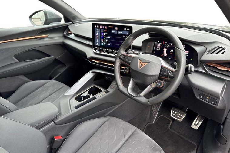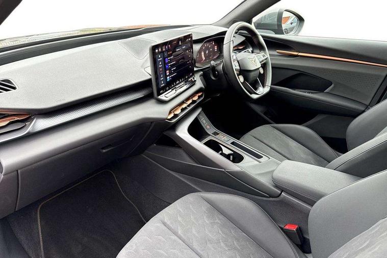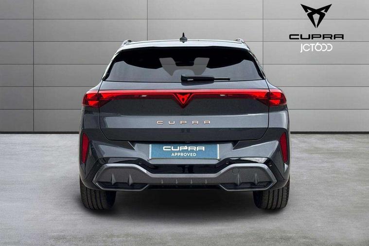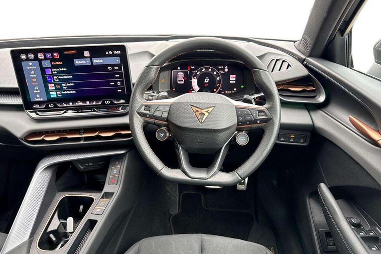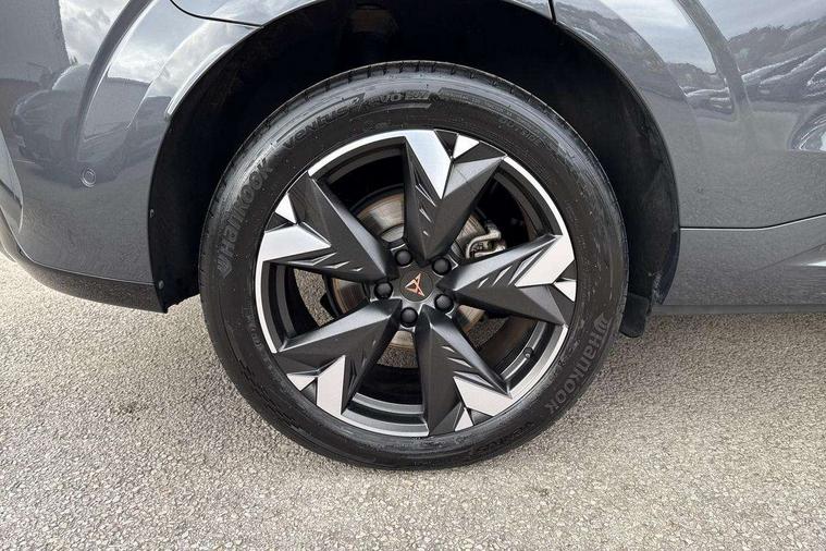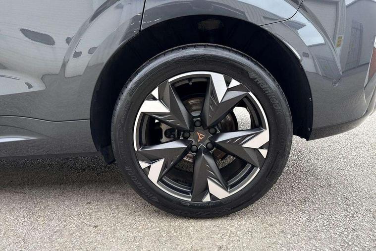 10.25" digital cockpit and configurable dashboard, Adaptive cruise control with follow-to-stop and speed limiter, Advanced driver alert system, Advanced lane assist with semi-automatic vehicle control in a medical emergency and traffic jam assist, Driving profile selection and conventional shock absorber, Dynamic road sign display, E-call, Electric tailgate with virtual pedal, Emergency steering support with turn assist, Front and rear parking sensors, Front assist (Forward collision warning with automatic braking) with multifunction camera and front cross traffic assist, Head up Display, Intelligent park assist, Media system with Nav - 12.9" touch display, voice control, full link phone (wired/wireless), DAB and Steering wheel mounted controls, Rear traffic assist, Side and exit assist, Speed sensitive power steering, Start/stop system with regenerative braking, Top view camera (front camera, rear camera, 2 side cameras), Wireless phone charger, Auto dimming rear view mirror, Black roof rails, CUPRA 3D rear lights with ceremony & swiping indicator and illuminated logo, Dark tinted rear windows, Daytime running lights with automatic headlight control and Coming and Leaving home function, Door mirrors with memory function and lowing function on passenger mirror, Dynamic headlight range control, Electric front/rear windows, Electrically adjustable, heated and folding door mirrors, Front fog lamps with cornering function, Heat reflecting windscreen, High beam assist, LED headlamps with signature "CUPRA LED", Rain sensing wipers, Rear fog light on one side, back up light on both sides, Rear side wing doors, Rear wash/wipe, Third brake light, Welcome lights (within exterior mirror housing), 3 seat bench in 2nd row, Black roof lining, Cupra sports pedals, Dinamica cloth upholstery, Driver seat memory function, Electrically adjustable front seats including lumbar support, Four x USB Type C ports (2 in front and 2 in rear), Front and rear head restraints, Front and rear reading lights X 4, Front centre armrest, Heated front seats, Heated leather wrapped multi function sports steering wheel with tiptronic, Illuminated interior front door sills, Isofix, Operating voltage 12V, Single front passenger seat, Smart wraparound interior lighting, Sunvisors with illuminated mirror, Three zone climate control with control panel in rear, Unsplit rear seat bench, split folding backrest, with centre armrest, Variable luggage/load compartment floor, 3 point seatbelts in front with pretensioner and electric height adjustment, 3 point seatbelts on all rear seats, Brake control system - ESC and brake booster, Child proof door locks, Driver and front passenger airbags, Electronic parking brake, Front and rear disc brakes, Front interaction airbag, Front passenger airbag deactivation switch, Front side airbags with curtain airbags, Pre-crash front and rear seat belt tensioner, window closure and hazard lights, Tyre pressure monitoring system, Visual and acoustic seat belt reminder, electric contact in front and rear, Anti theft alarm, Keyless locking and starting system with keyless access, Locking wheel bolts, Black decorative trims, Chrome interior detailing, 19" Spectrum exclusive machine alloy wheels, Tool kit,