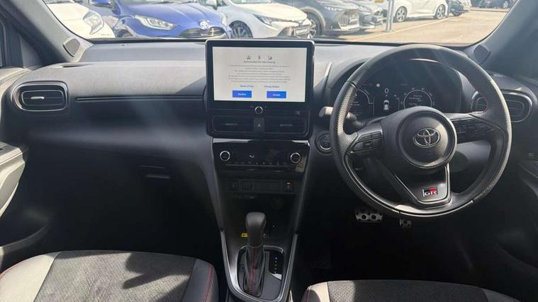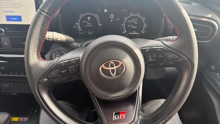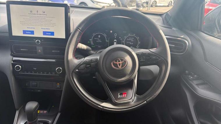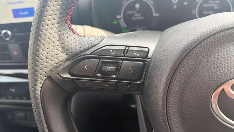 10.5" Multimedia display screen, 10.5" Toyota smart connect+ with navi multimedia system with wireless Smartphone integration incl Apple CarPlay, 12.3" Multi information display screen, Adaptive cruise control, multi info switches on steering wheel, Adjustable speed limiter, Bluetooth connectivity, Color multi-information display, Digital speedometer, Digital tachometer, Drive mode selector, Driver attention alert system, eCall emergency system, Electric power steering, Emergency driving stop system, Full range intelligent adaptive cruise control, Hybrid system indicator, Intersection turn assist, Key reminder warning, Lane trace assist, My T Connected services, Pre-collision system enhanced with emergency steering assist, Reversing camera, Road sign assist - RSA, Static guide lines on reversing camera, Tailgate, Telephone switch on steering wheel, Wireless Mobile Phone Charger, Steering assisted vehicle stability control, 6 speakers, DAB Digital radio, Front USB Type-C connector, Front USB-C device charger, Acoustic windscreen glass, Anti-jam protection on power windows, Auto dimming rear view mirror, Auto high beam [AHB] with on/off switch, Auto intermittent windscreen wipers, Automatic headlights, Automatic headlights cut-off, Automatically retractable door mirrors, Black door moulding, Black lower front grille, Black protection moulding on side doors, Black rear bumper with diffuser, Black rear under run, Black roof rails, Black wheel arch mouldings, Body colour door handles, Body colour front bumper, Electric adjustable heated door mirrors, Follow me home headlights, Front and rear electric windows with auto up/down function, Gloss black upper front grille, GR Sport meshed lower front grille, GR Sport meshed upper front grille, GR sport scuff plates, Headlight cut off reminder, Indicators integrated on door mirrors, Intermittent rear wiper, LED 3rd brake light, LED daytime running lights guide, LED front fog lights, LED front light guide, LED Indicators, LED projector headlights, LED rear lights with sequential indicators, Manual headlight levelling, Noise reduction layer on windscreen, Pre wiring for towing hook, Privacy glass, Rain sensor, Rear roof spoiler, Rear side wing doors, Rear window defogger, Shark fin antenna, 12v power outlet - front, 12V power point in boot, 2x Rear coat hooks, 3 seat bench in 2nd row, 3 Spoke GR Sport leather steering wheel, 40/60 split deckboard, 40:20:40 split folding rear bench seat, Adjustable rear headrests, Adjustable speed limiter switch on steering wheel, Black roof lining, Boot light, Driver and front passenger personal lights, Driver and front passenger Whiplash injury Lesseing seats, Driver and passenger seatback pockets, Dual zone automatic air conditioning, Fabric door trim, Front console box, Front cup holders, Front door pockets, Front head restraints, Front sport seats, Front/rear assist grips, Gear shift indicator, GR sport floor mats, Heated driver and passenger seats, Height adjustable driver's seat, Height adjustable front passenger seat, Hooks for luggage holding belts, ISOFIX child restraint system, Lane departure alert switch on steering control, Leather gearshift, LED centre room light, Light on driver and passenger sun visor, Manual telescopic and tilting steering wheel, Mirror on driver and passenger sun visor, Nanoe-X air purifier, Pollen air filter, Power adjustable lumbar support on driver seat, Rear cup holders, Rear door pockets, Rear head restraints, Remote air-conditioning system, Single compartment glovebox, Single front passenger seat, Soft tonneau cover, Storage box under boot floor, Ultra suede cloth upholstery, Voice recognition switch on steering wheel, White ambient lighting in centre console, White ambient lighting in footwell, White ambient lighting on front doors, 3x3 point rear seat belts, ABS+EBD+Brake assist, Driver and passenger central airbags, Driver and passenger front airbags, Driver and passenger side airbags, Electronic parking brake, Emergency brake light system (EBS), Front seat belt reminder, Hill start assist control (HAC), Passenger airbag on/off switch, Pre-collision system with pedestrian and cyclist detection, Rear door child safety locks, Rear passenger side airbags, Rear seat belt reminder, Traction control, Tyre pressure warning system, Immobiliser, Intrusion alarm, Keyless smart entry with push button start, Power door locks, Power passenger window lock, Remote door lock, Tyre repair kit,